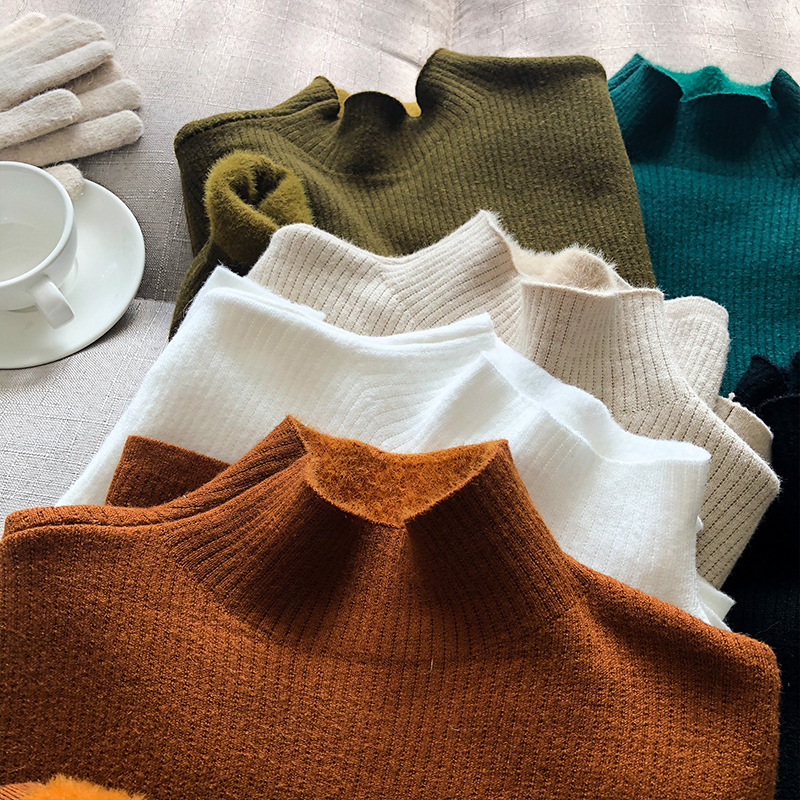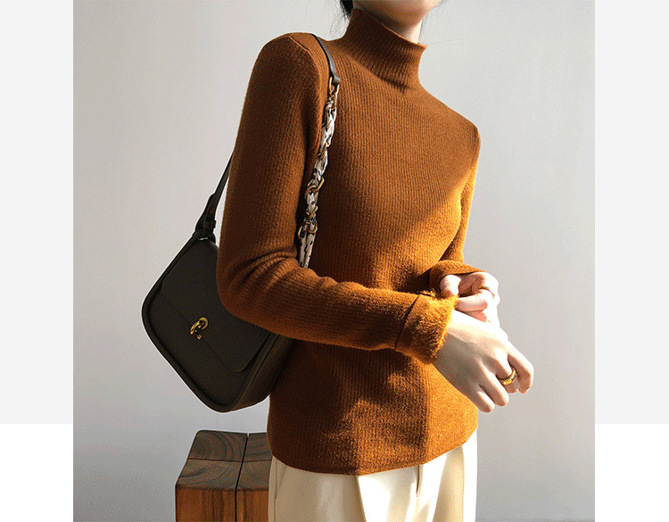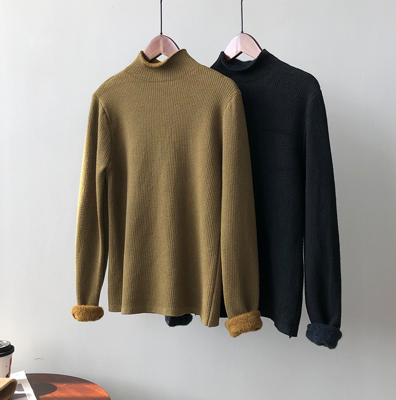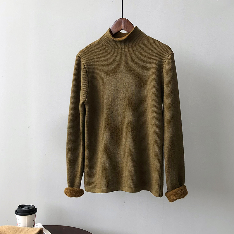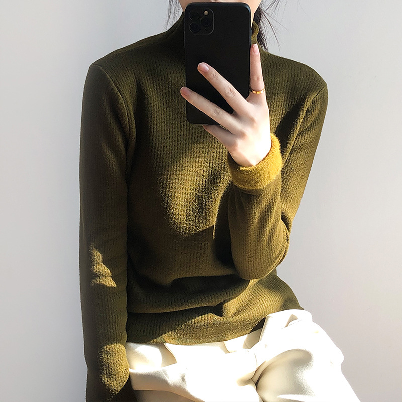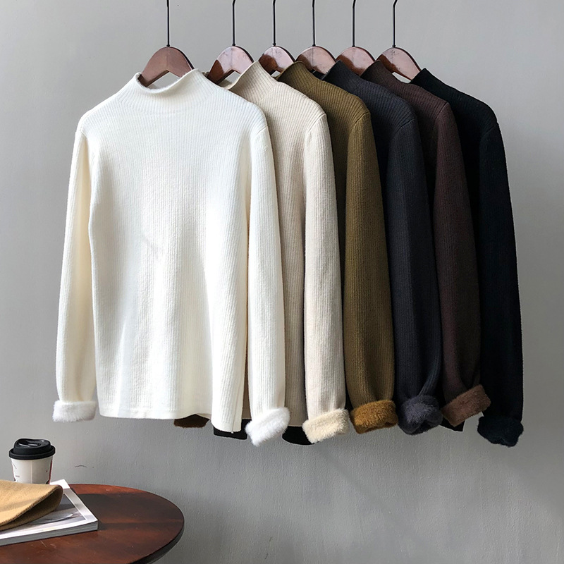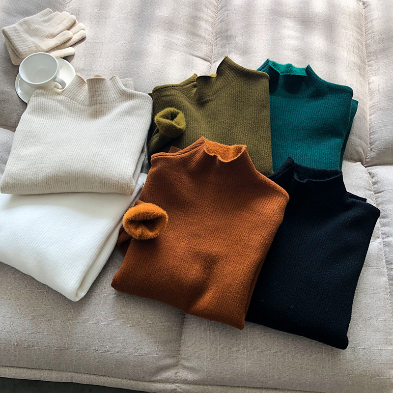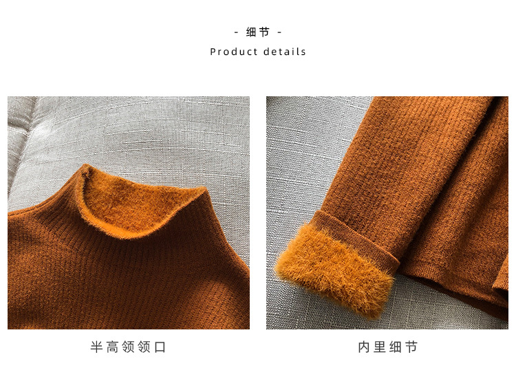 YS-P363半高领毛衣女2022冬季新款加绒加厚内搭打底衫针织上衣