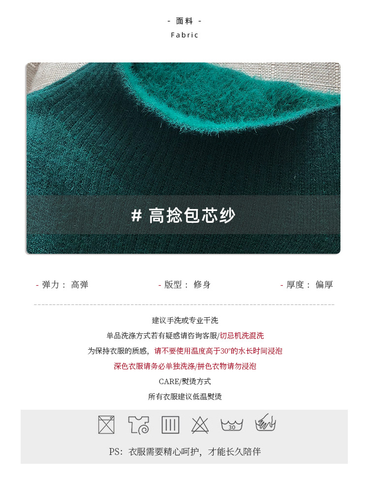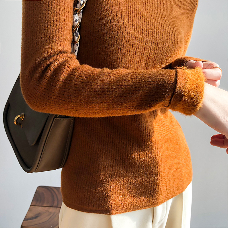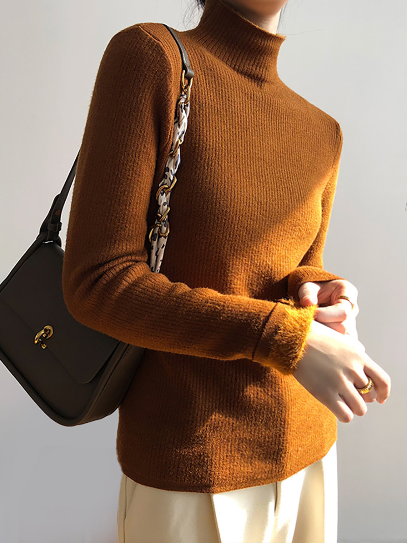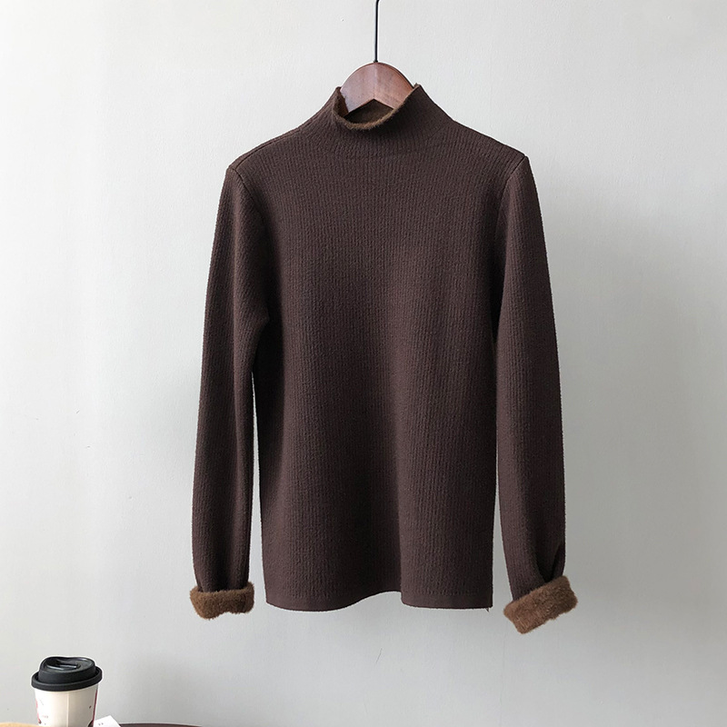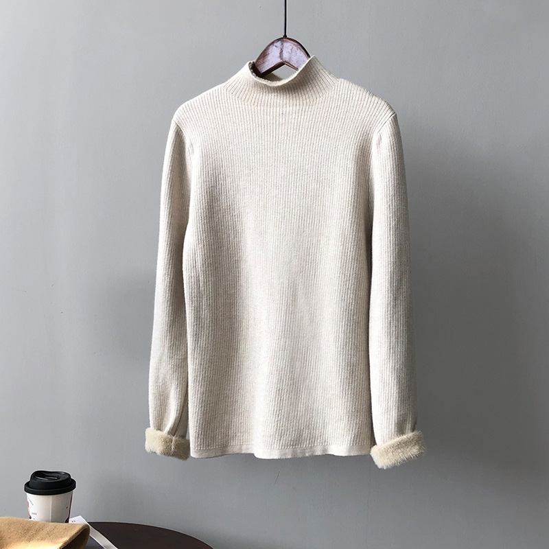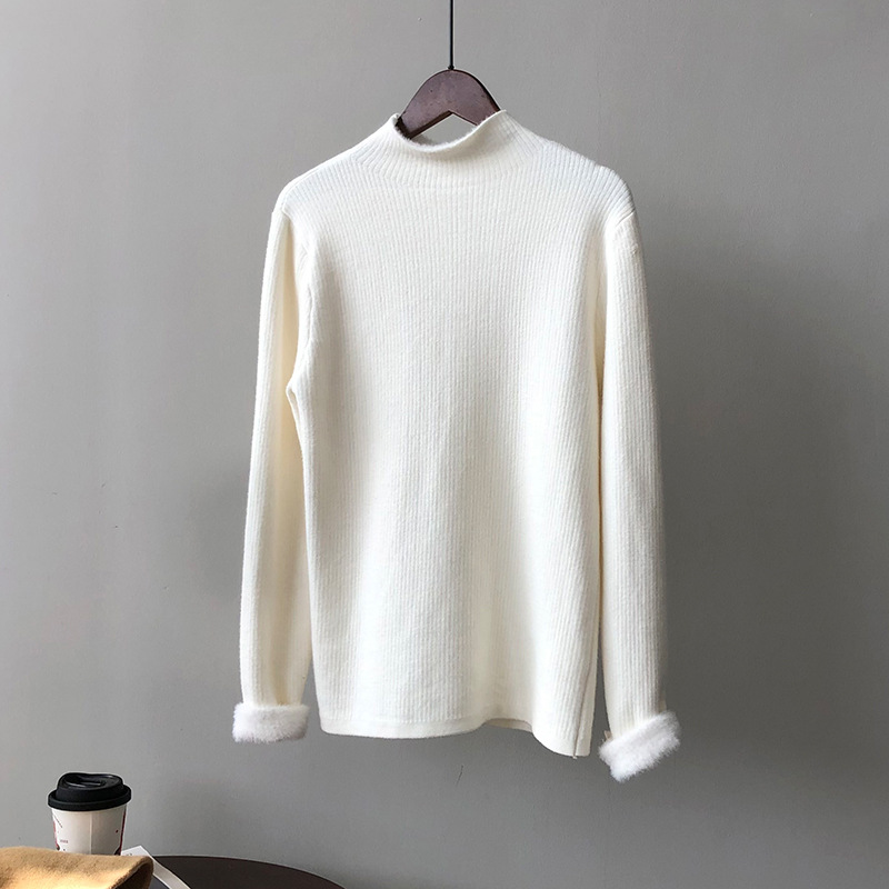 YS-P363半高领毛衣女2022冬季新款加绒加厚内搭打底衫针织上衣