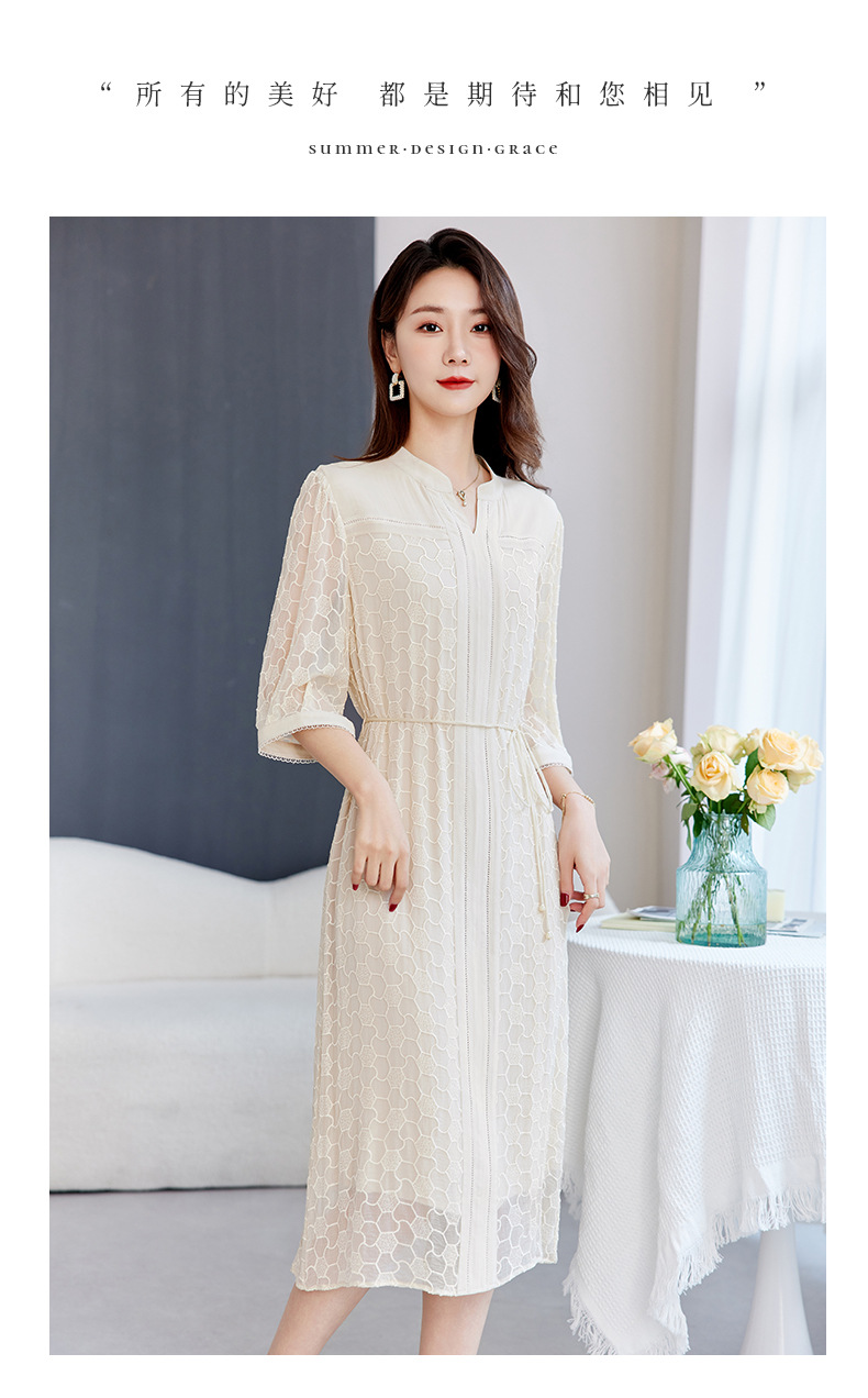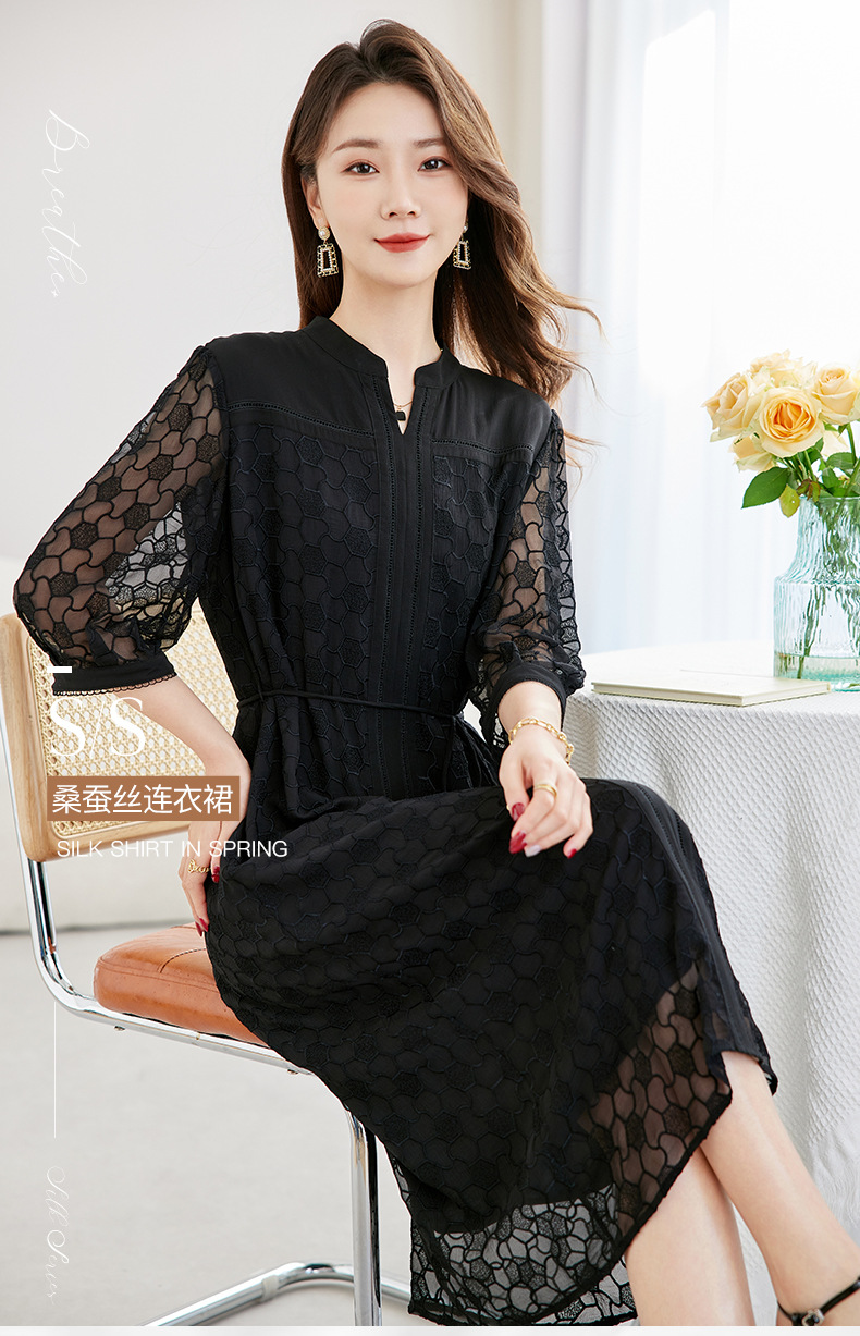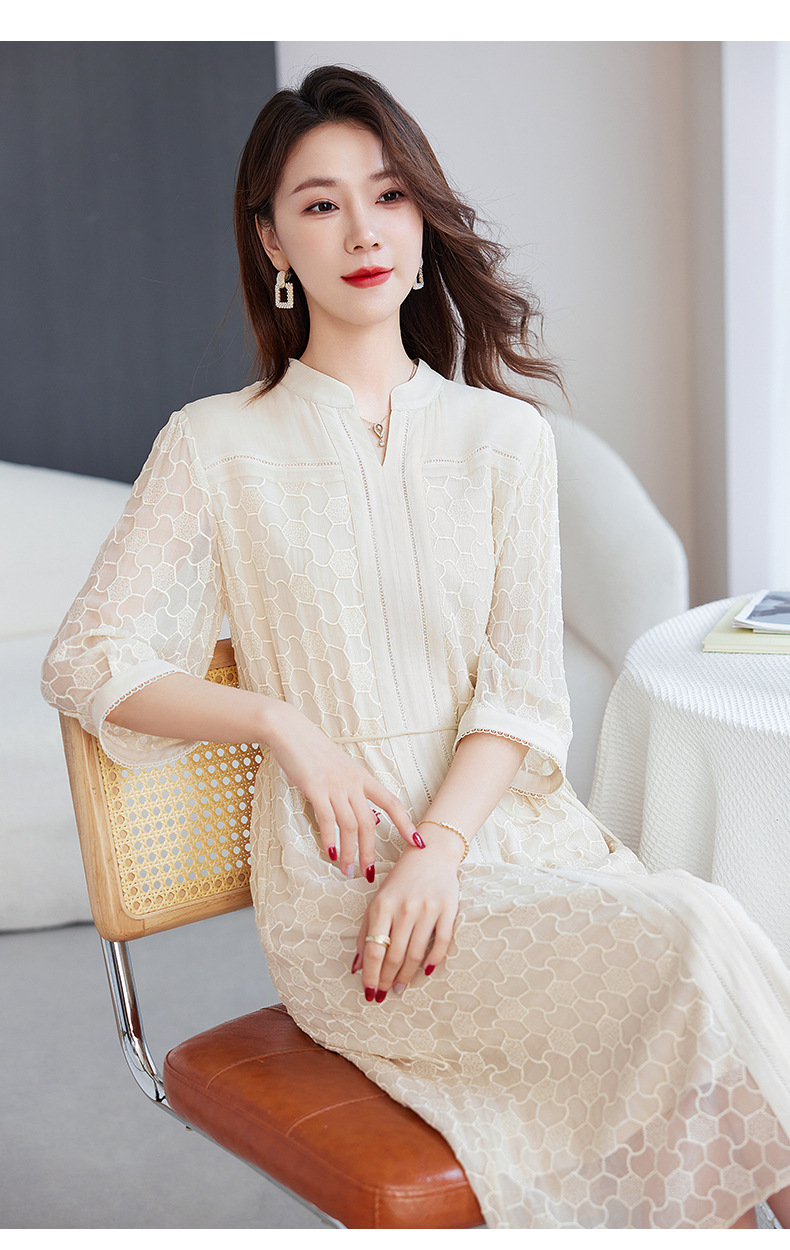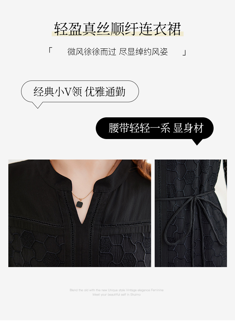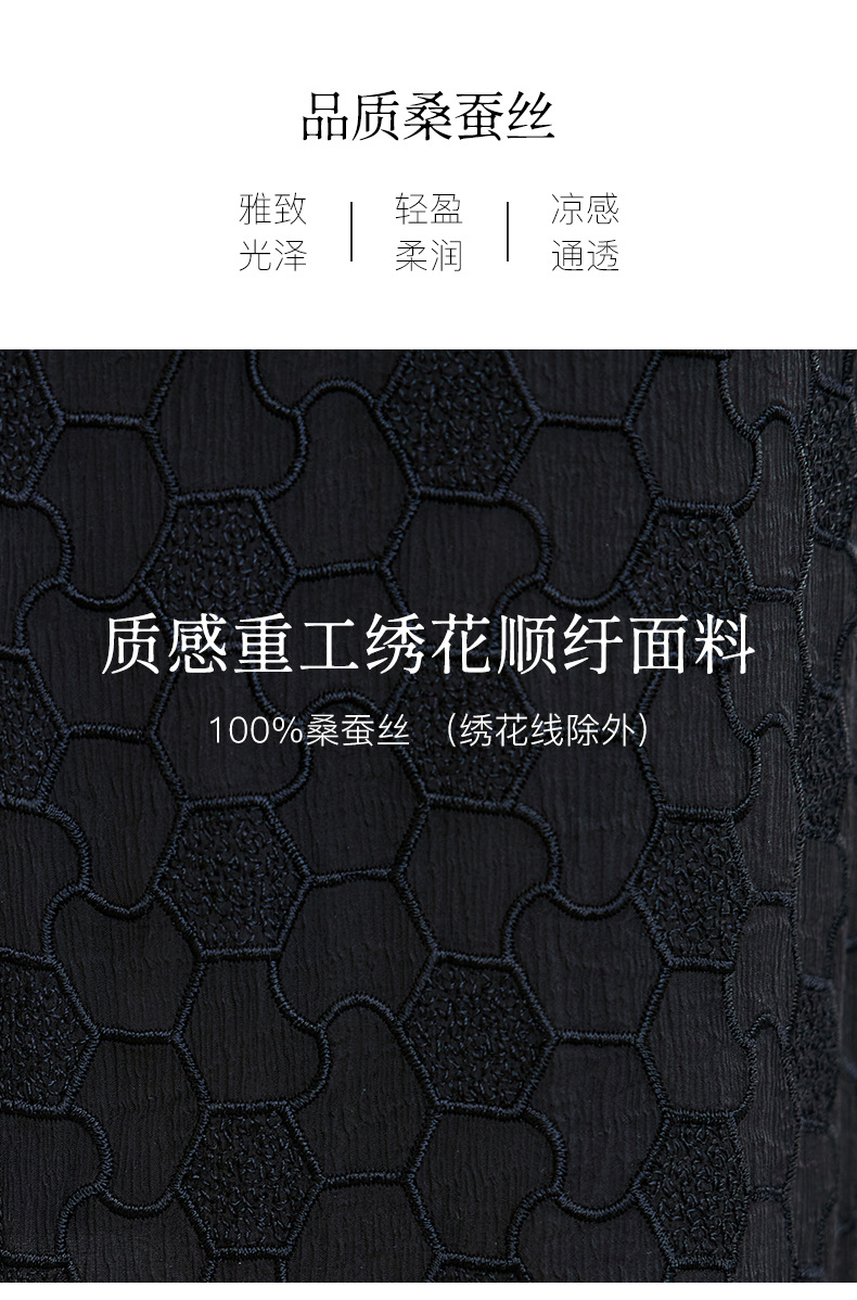 QS-82599578非遗100桑蚕丝绣花连衣裙女夏季7分袖显瘦气质中长裙9578