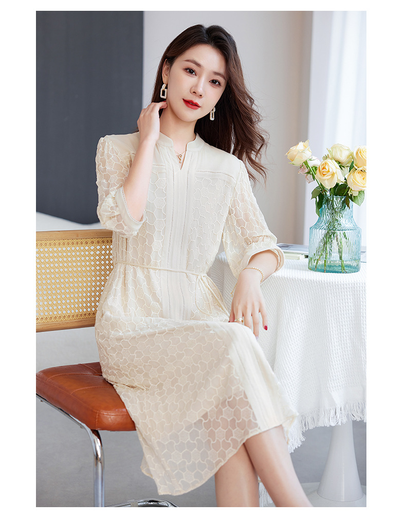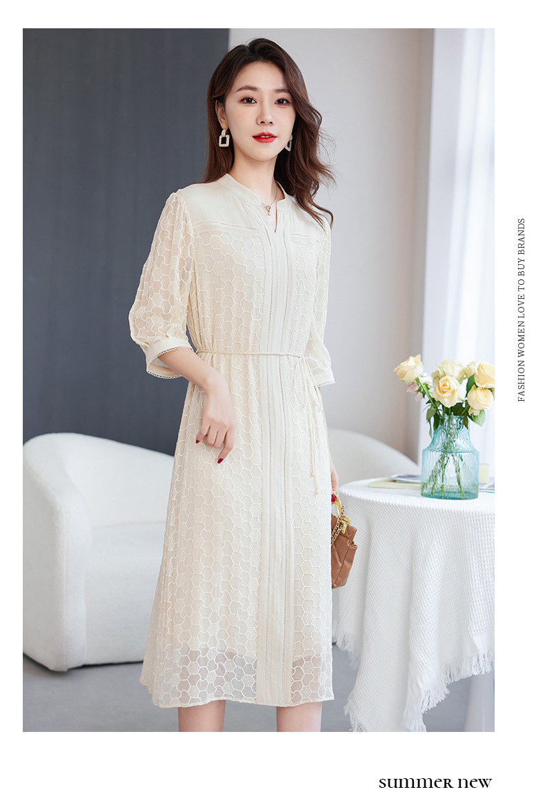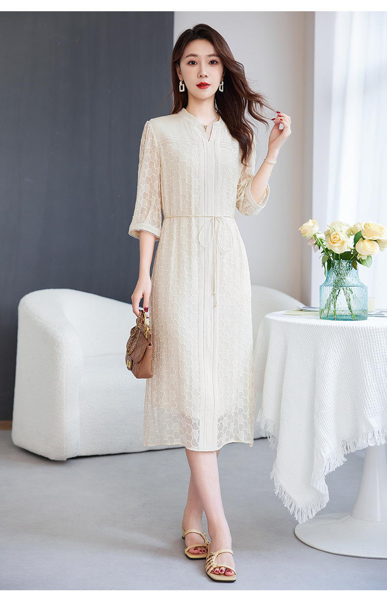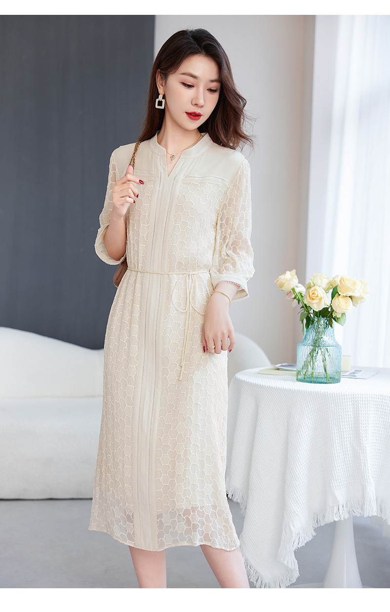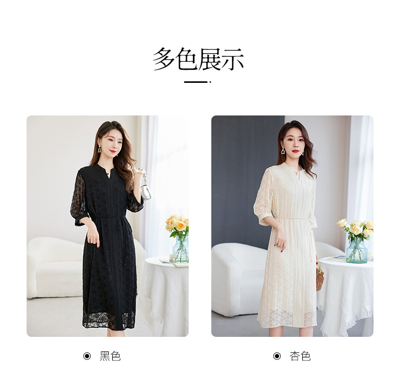 QS-82599578非遗100桑蚕丝绣花连衣裙女夏季7分袖显瘦气质中长裙9578