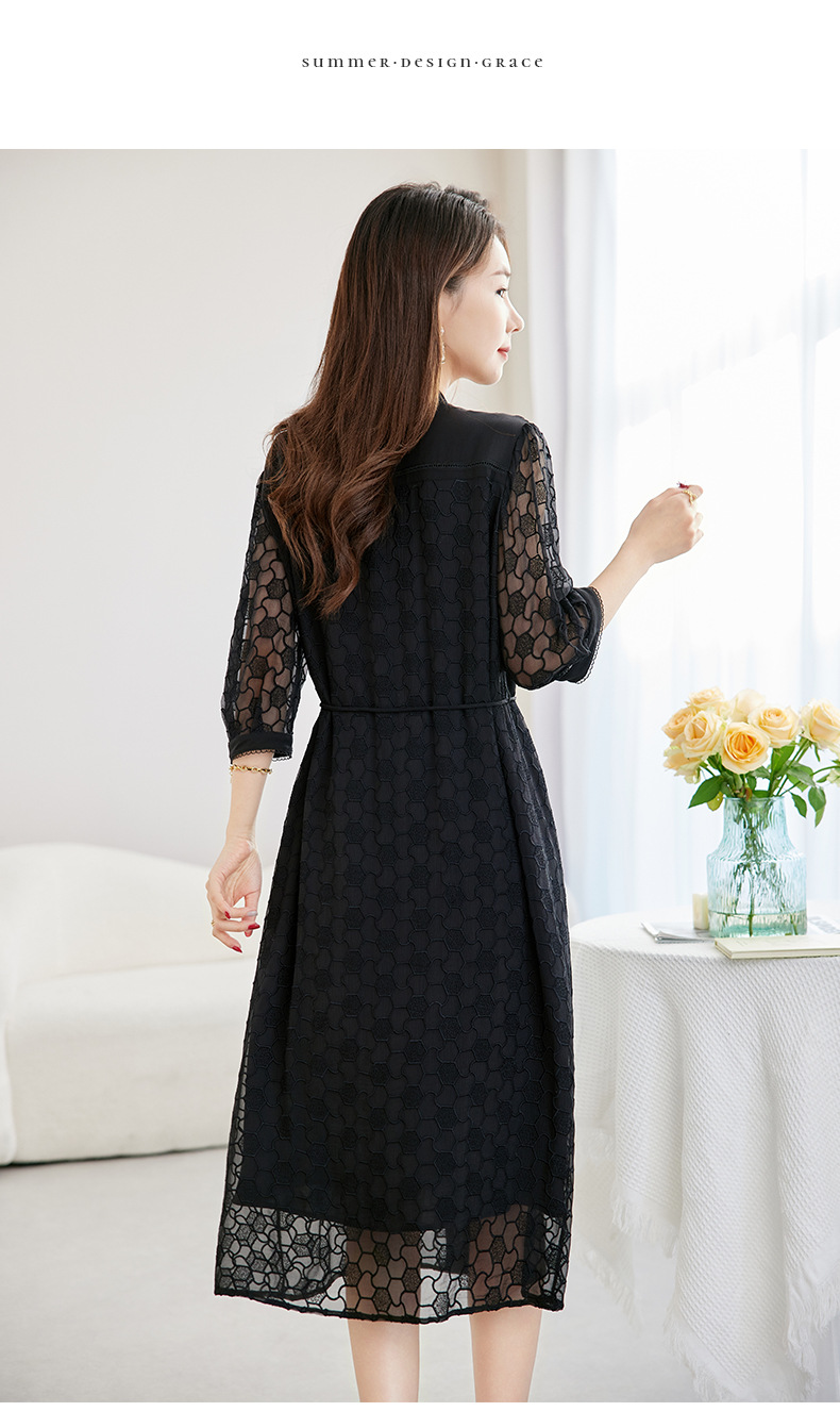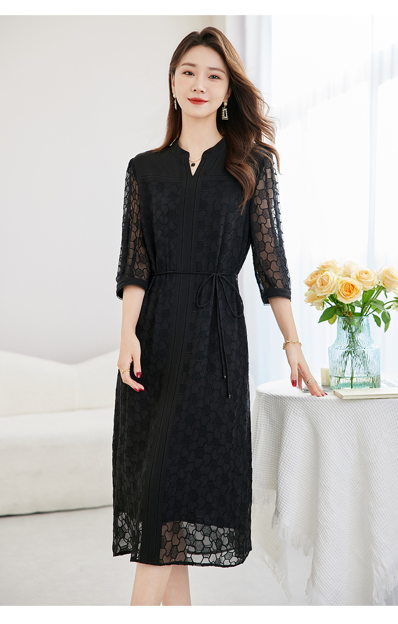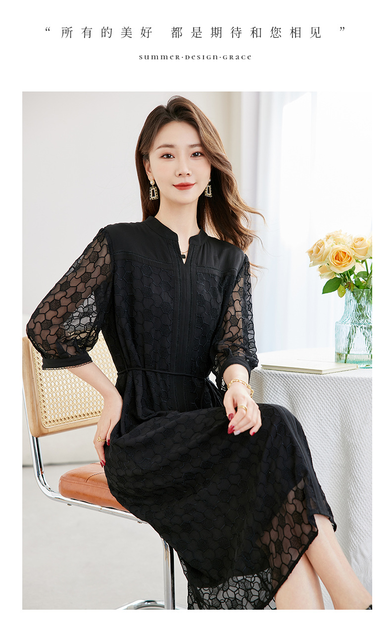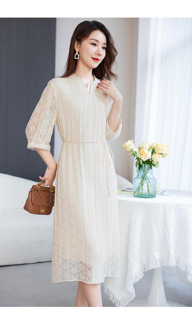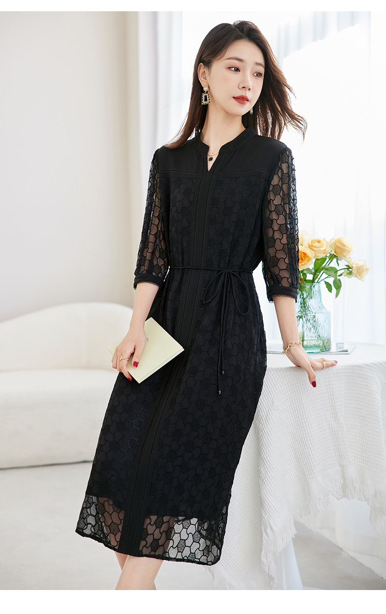 QS-82599578非遗100桑蚕丝绣花连衣裙女夏季7分袖显瘦气质中长裙9578