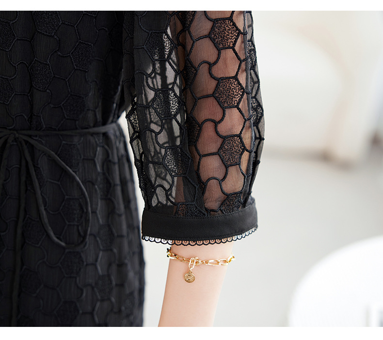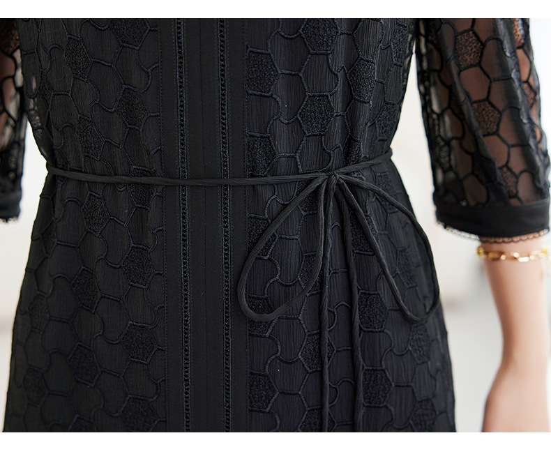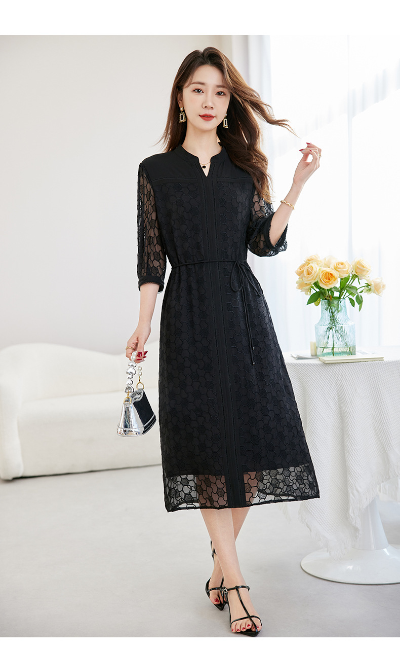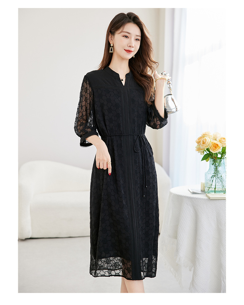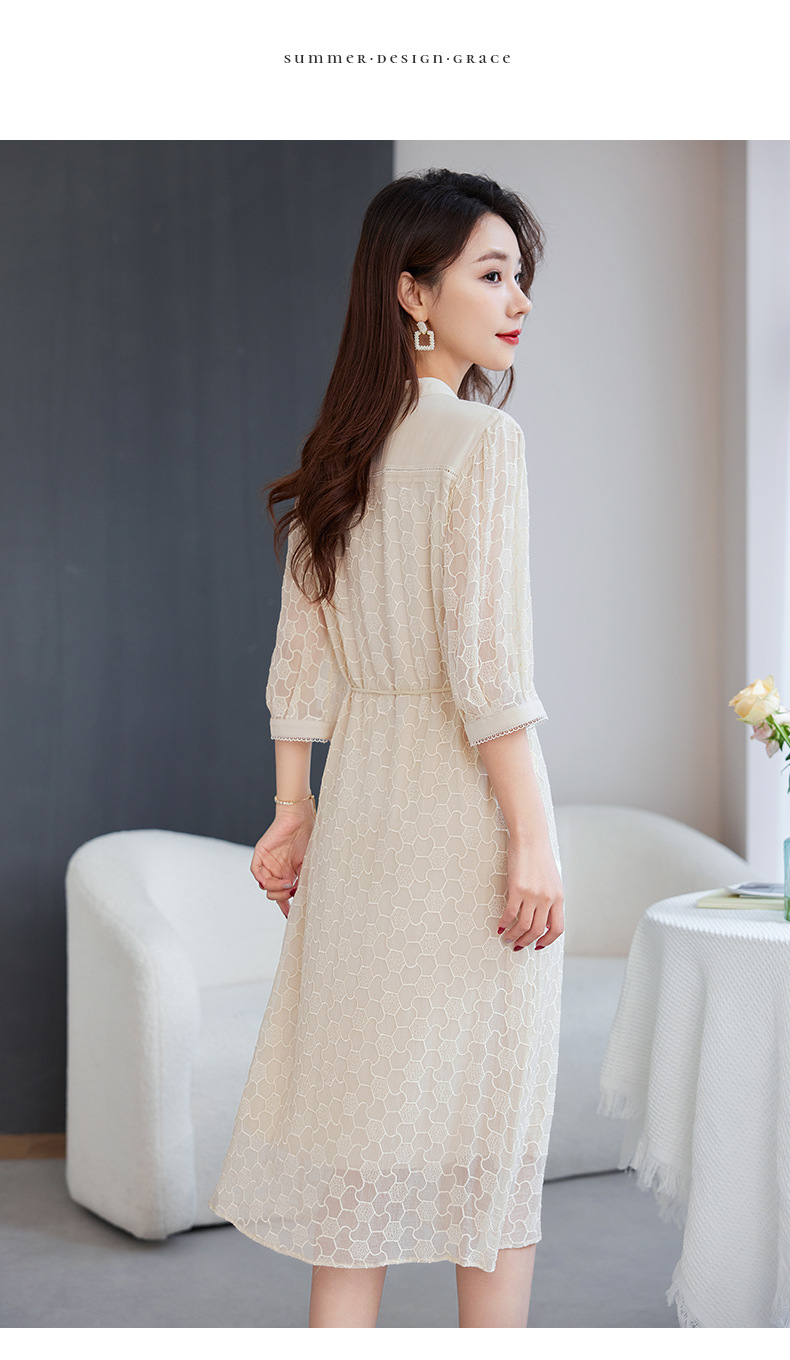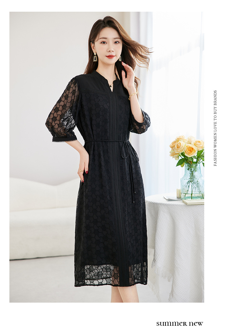 QS-82599578非遗100桑蚕丝绣花连衣裙女夏季7分袖显瘦气质中长裙9578