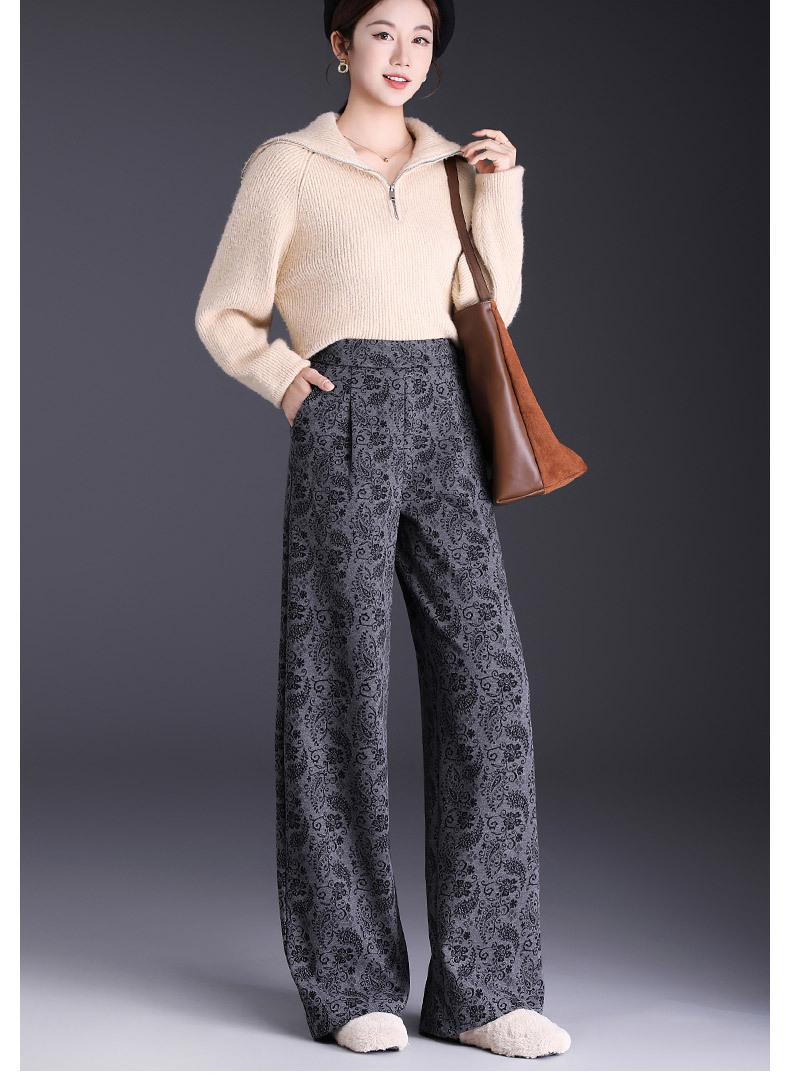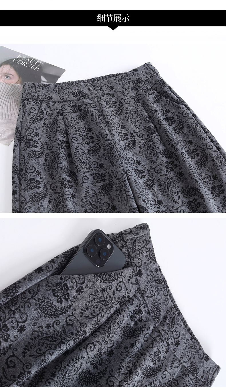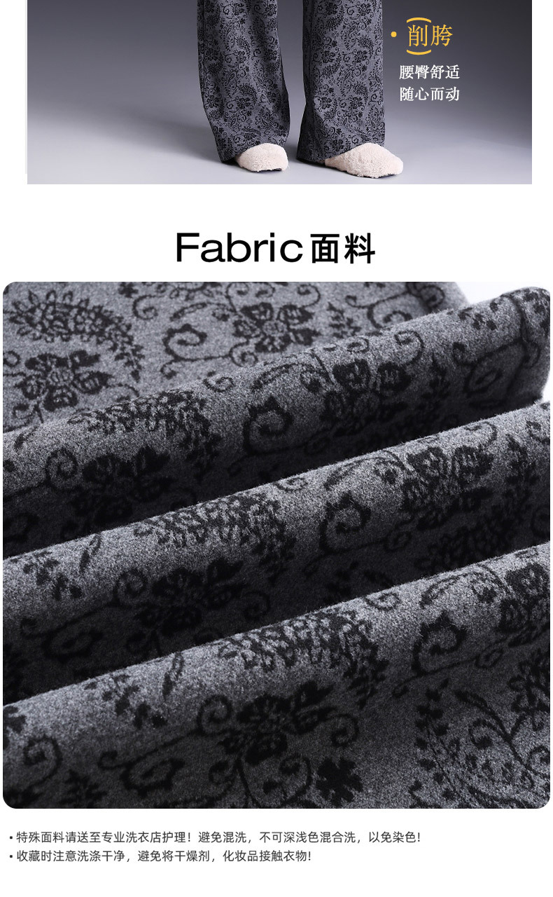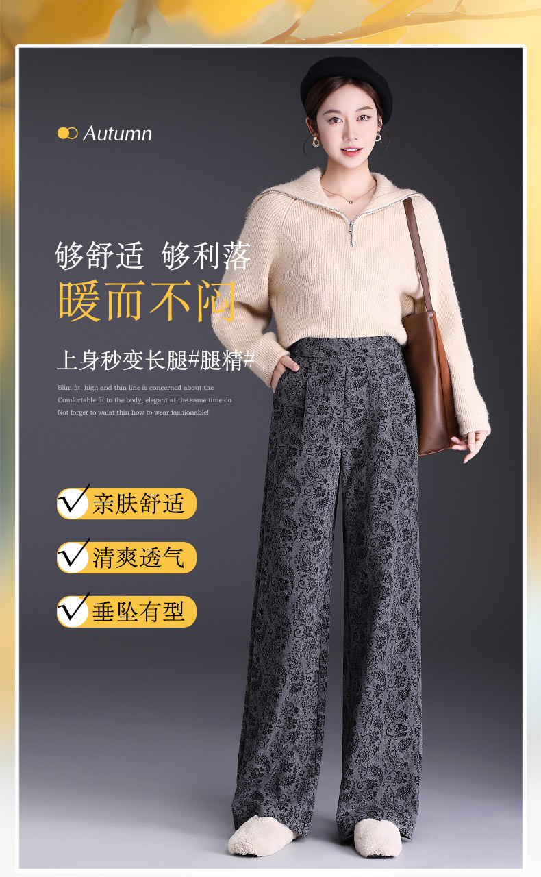 MYX垂坠感印花直筒裤窄版修身阔腿裤2025年秋季新款显瘦高腰休闲长裤