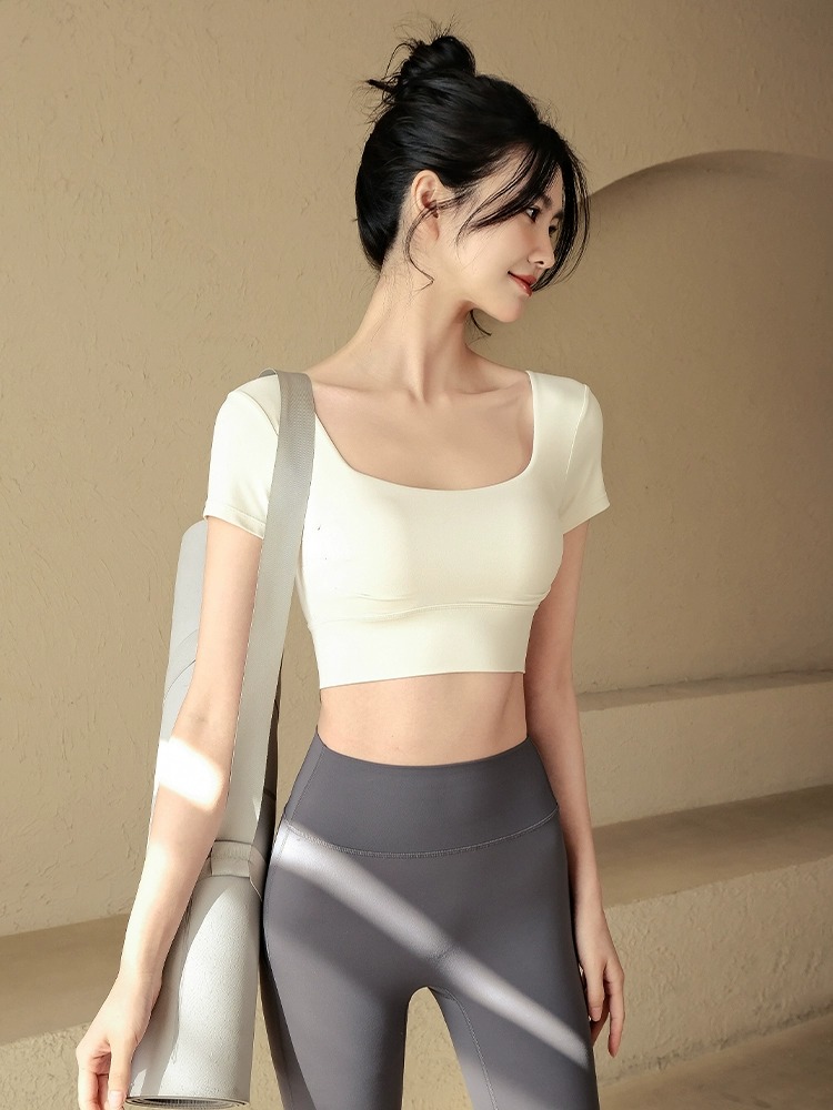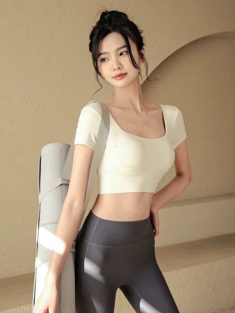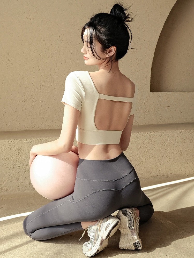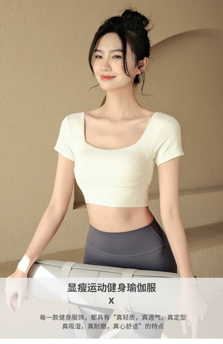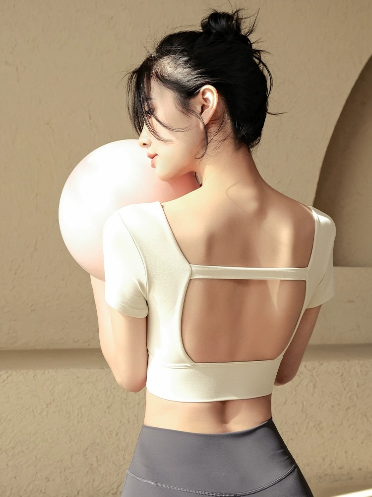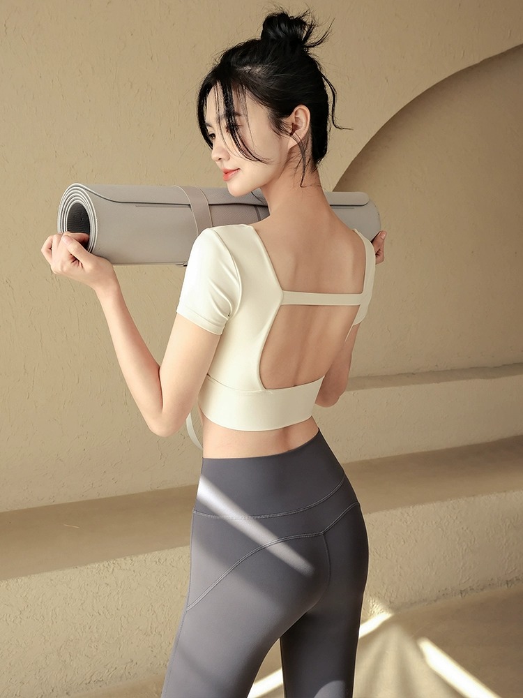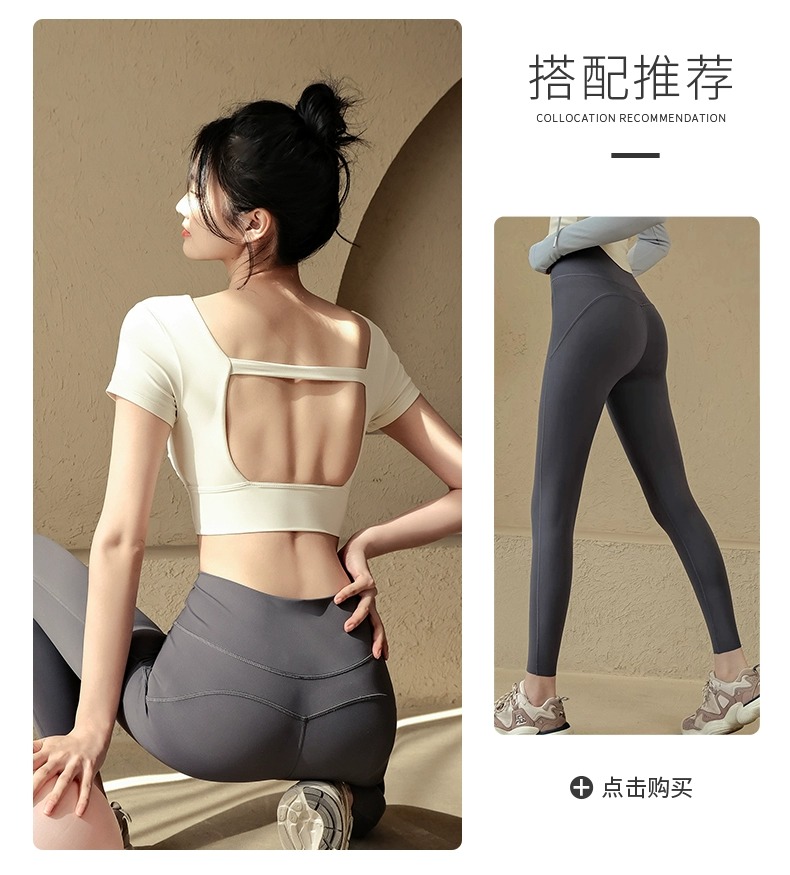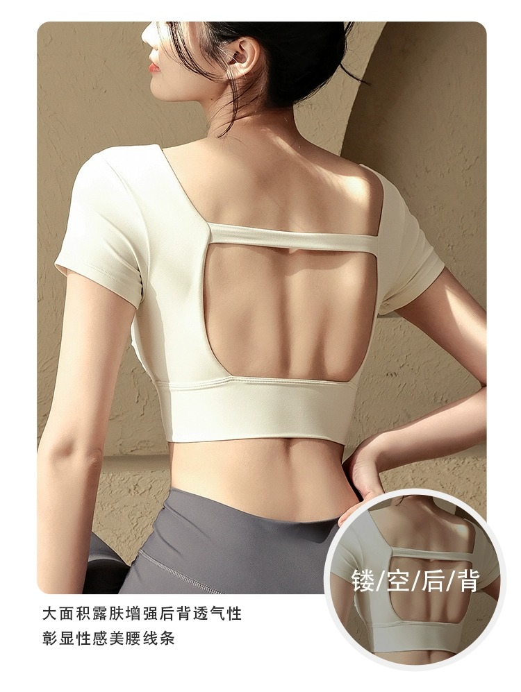 【限时秒】YOGACODE【火树银花系列】裸感镂空美背瑜伽t恤跑步外穿带胸垫健身上衣 YCDS498 (一体式胸垫)