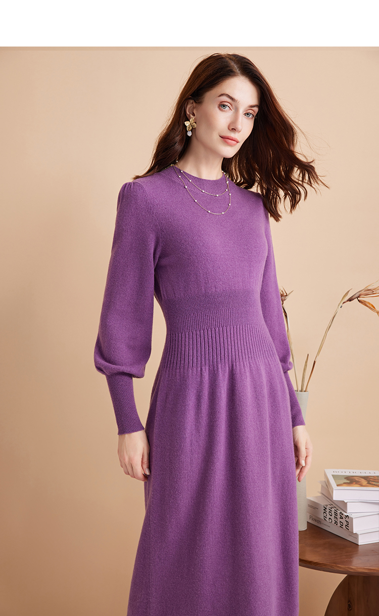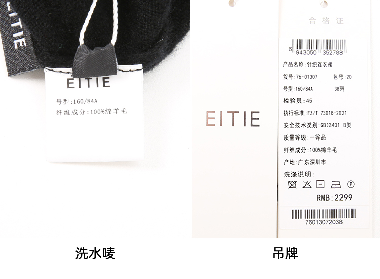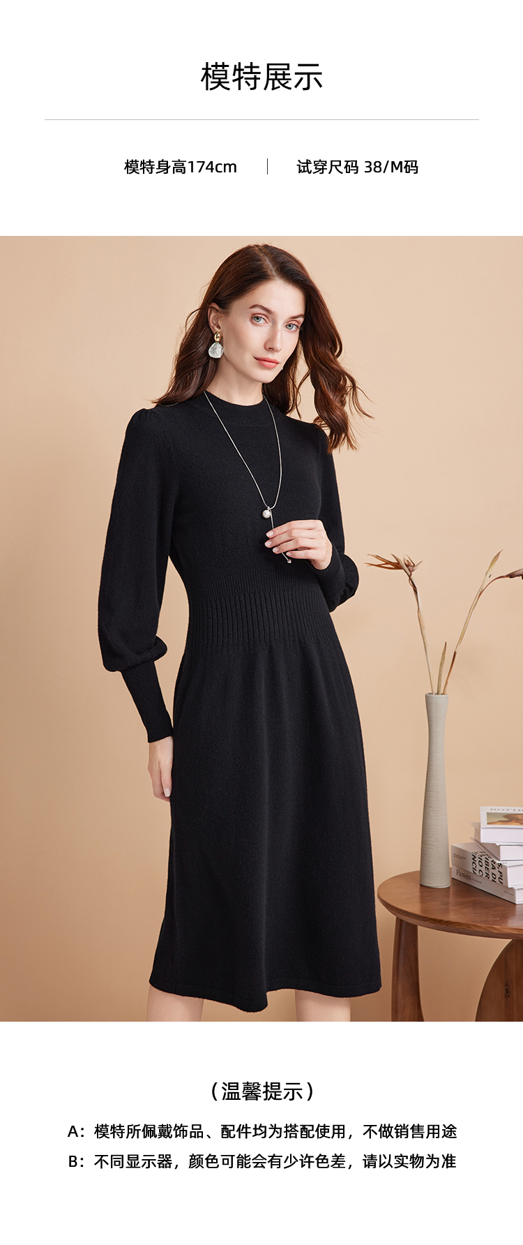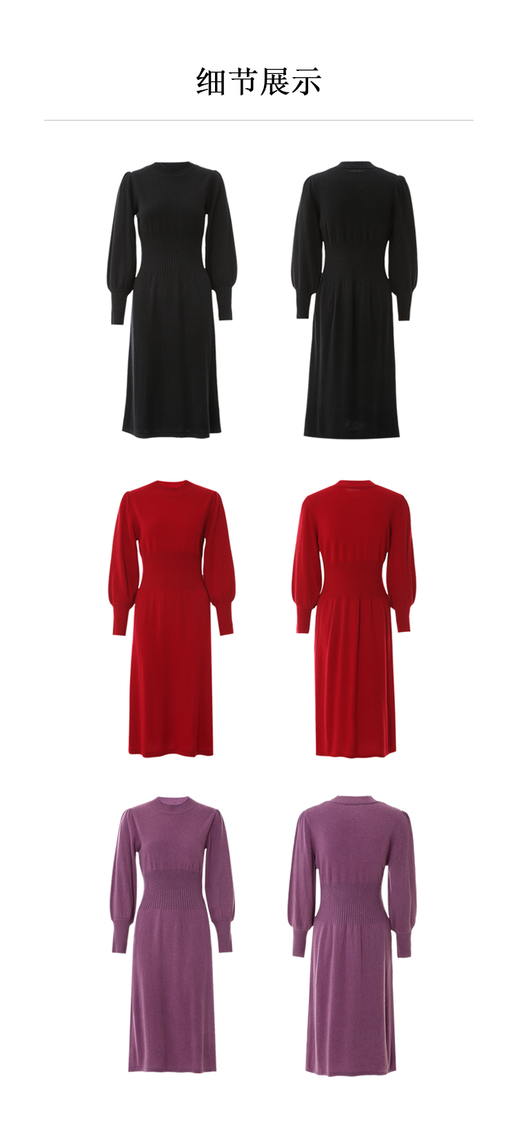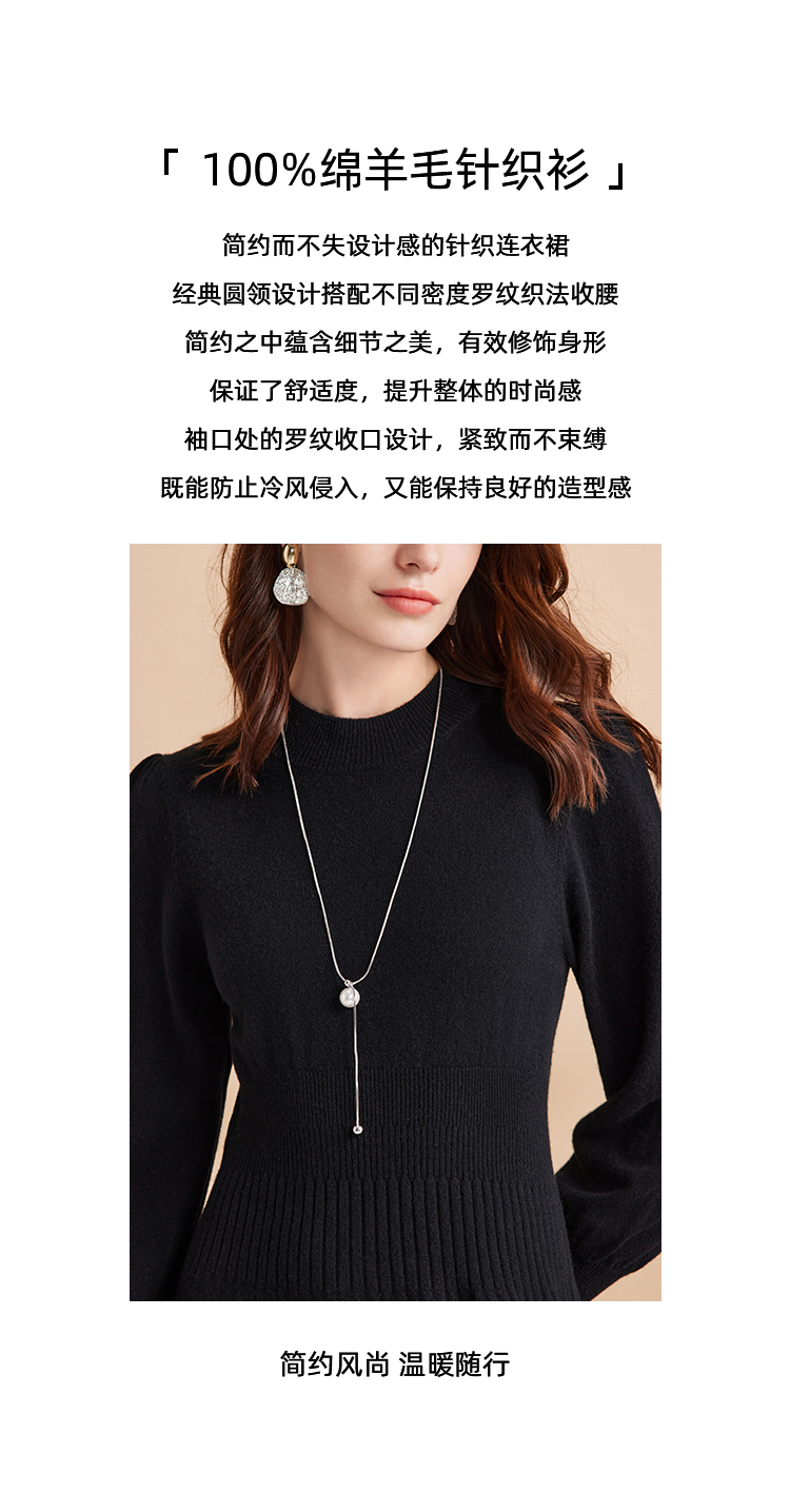 EITIE爱特爱冬季新款100%绵羊毛时尚气质收腰显瘦长袖针织连衣裙7601307