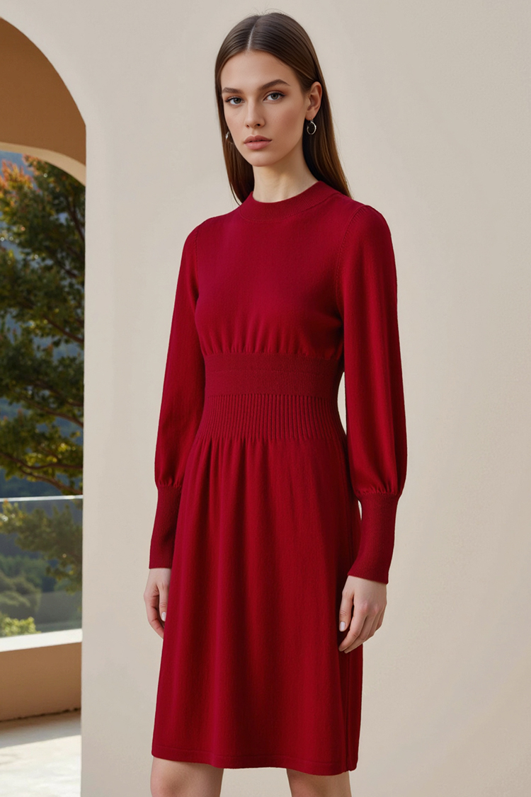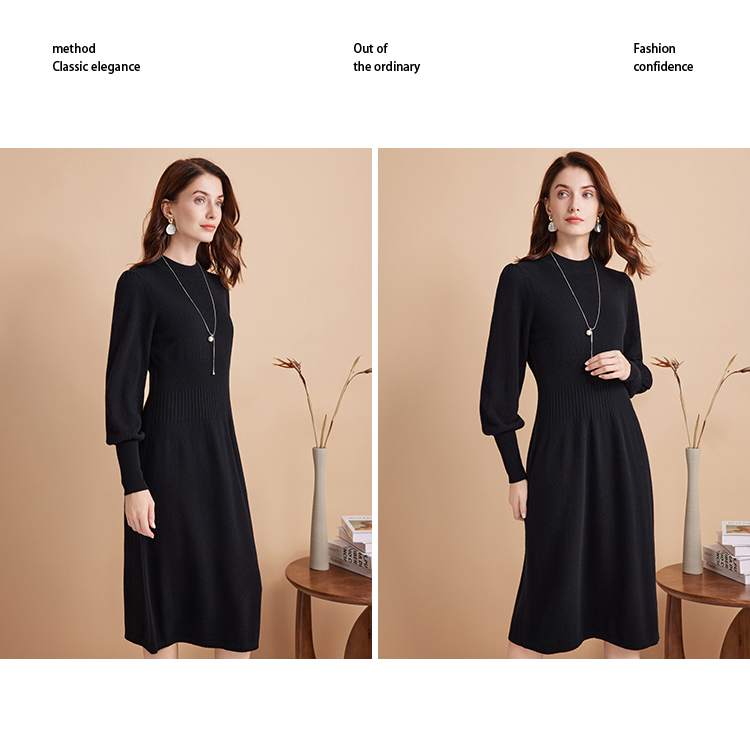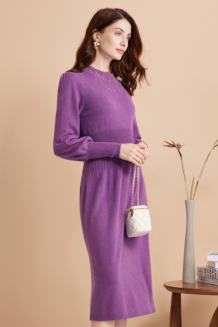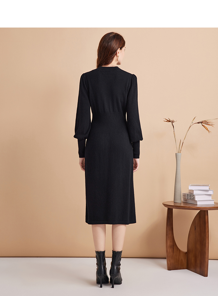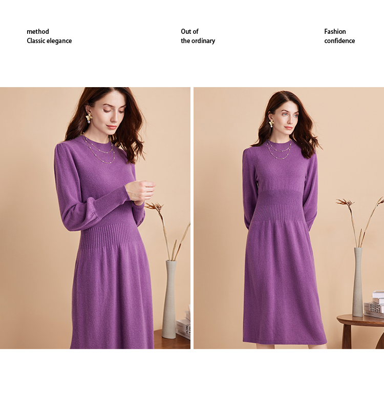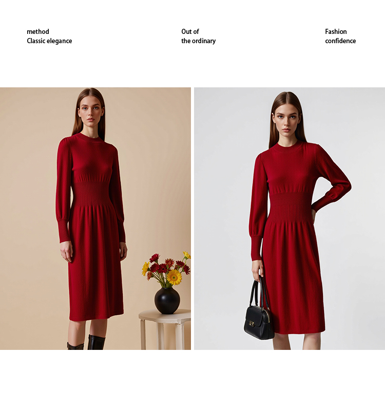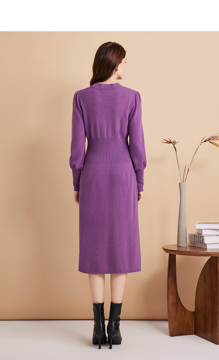 EITIE爱特爱冬季新款100%绵羊毛时尚气质收腰显瘦长袖针织连衣裙7601307