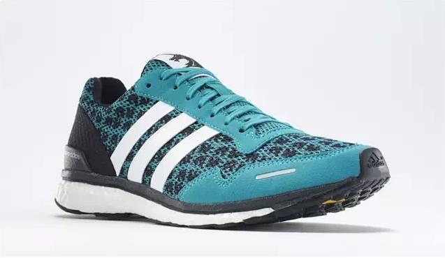 波士顿马拉松限量版跑鞋:阿迪达斯推出的特别版限量跑鞋Adizero Adios Boost 3。两个配色,一款是B.A.A.(Boston Athletic Association)标志性的黄蓝配色,另一款则以代表了波士顿的绿色作为主色。鞋舌上,都能“活捉”一只专属的独角兽。鞋面印制满的独角兽剪影图案,鞋垫上也印有“2016 BOSTON”。跑鞋尺码为阿迪达斯标准码,请大家依据阿迪达斯官网尺寸进行购买。