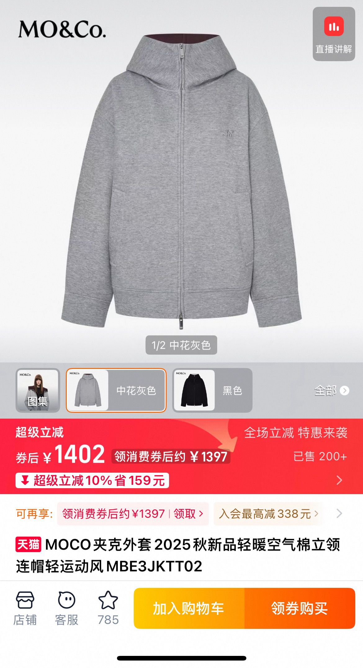 猫店折后售价1402软币💰全网热销🔥 谁能拒绝一件集保暖、时髦、实用于一身的连帽夹克外套啊!百搭又高级,慵懒宽松版型,连帽设计巨显脸小,拉链款穿脱方便还能解锁多种穿搭风格~