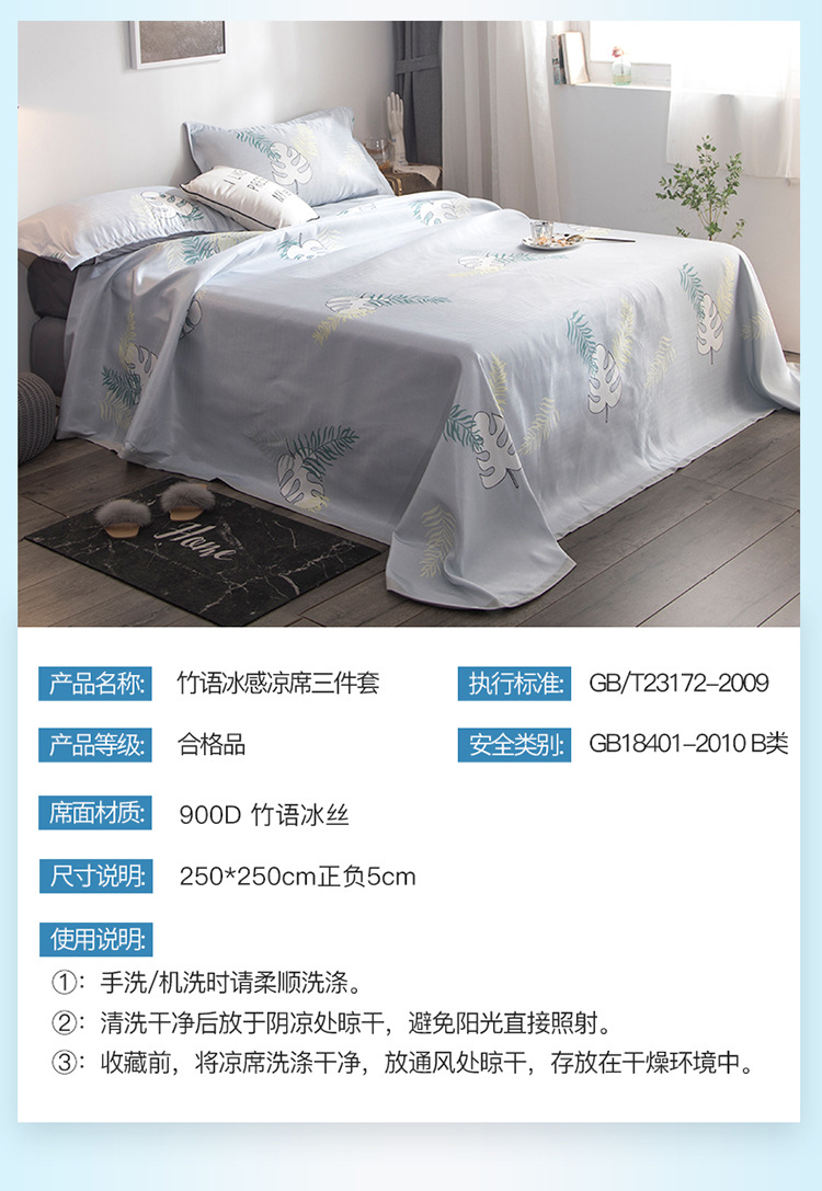 KM-新款冰丝凉席床单凉席可机洗可水洗空调席三件套