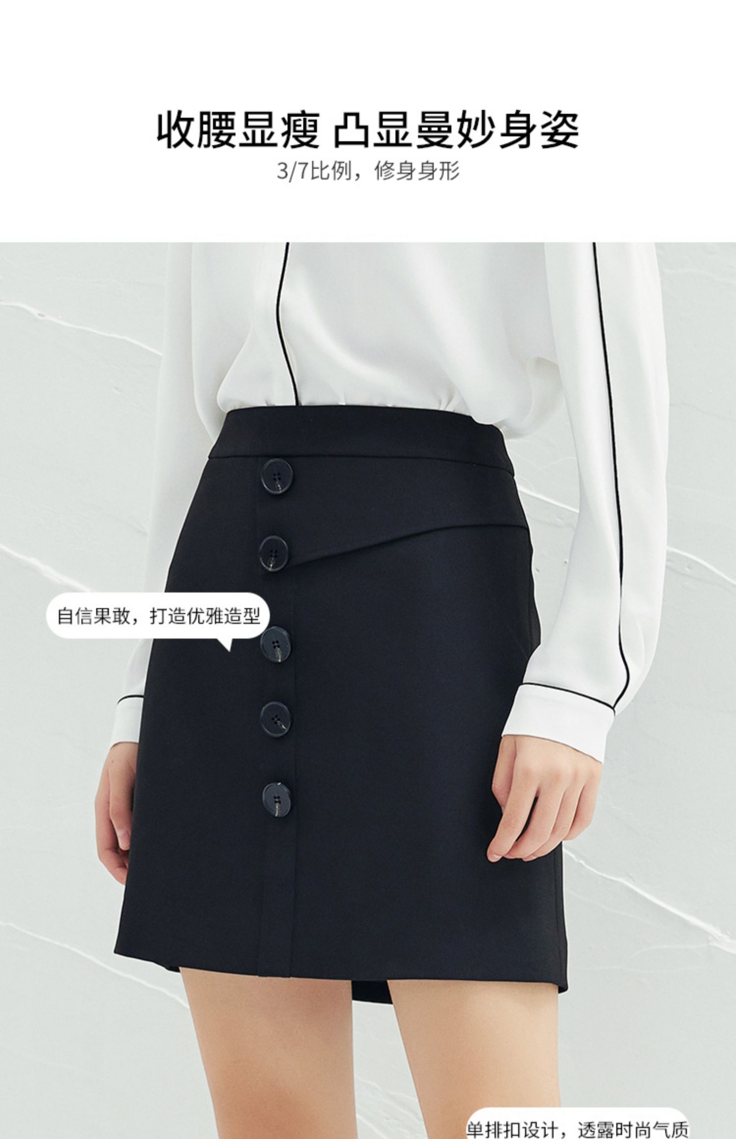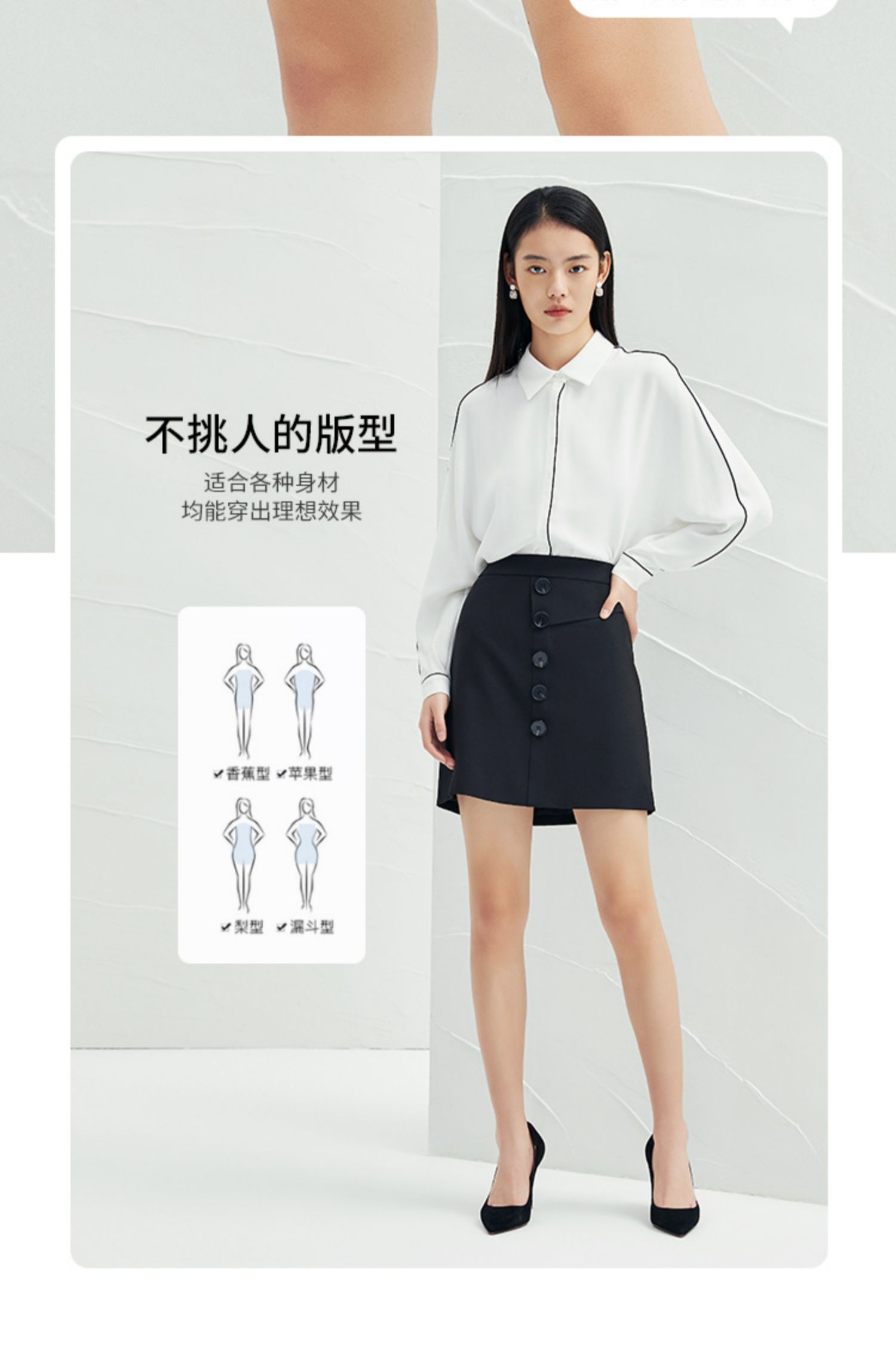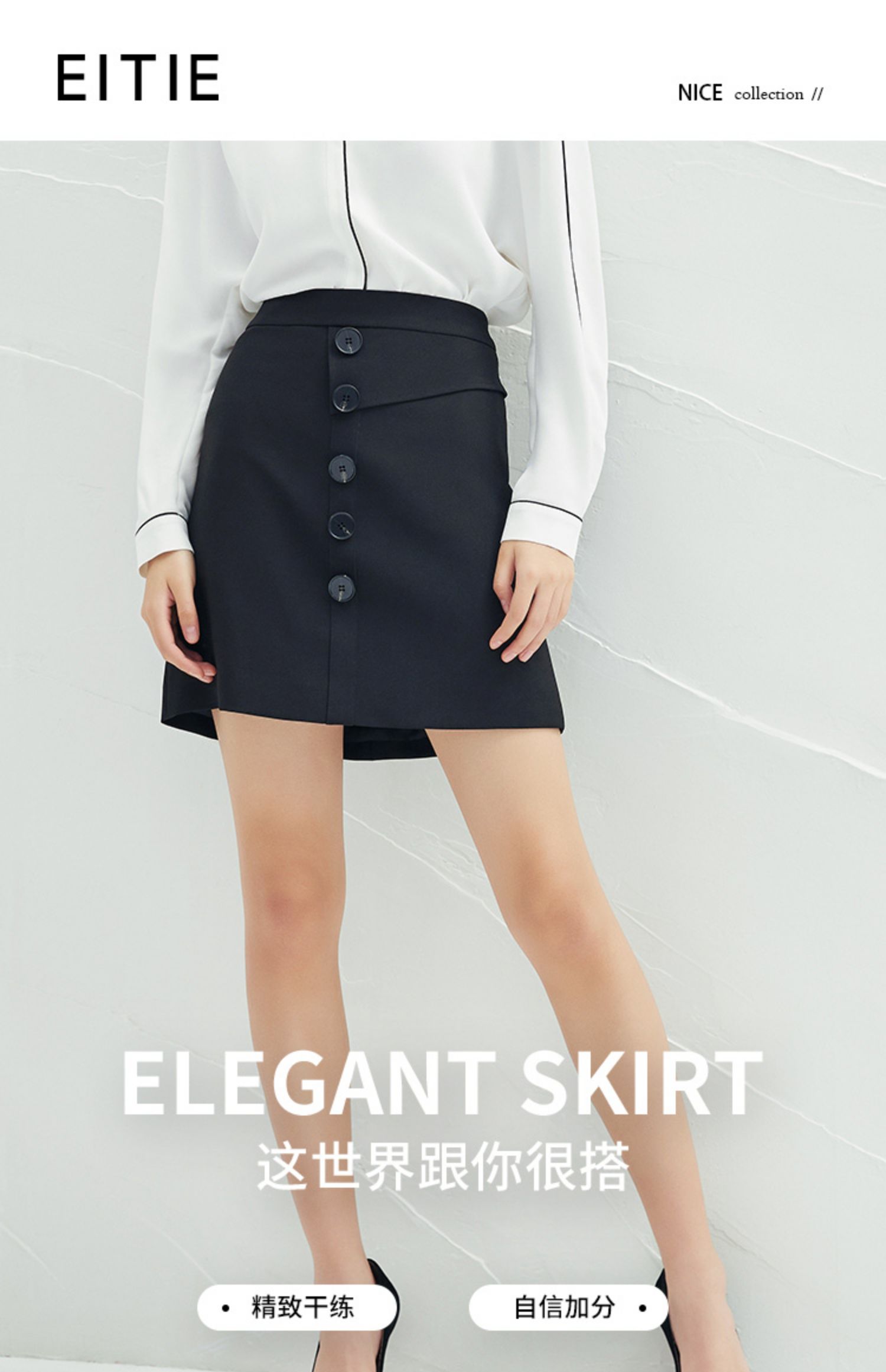 EITIE爱特爱春季新款时尚复古A字显瘦简约百搭高腰单排扣干练半身裙A2206909