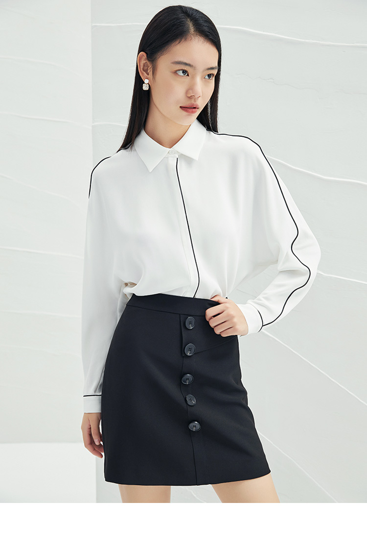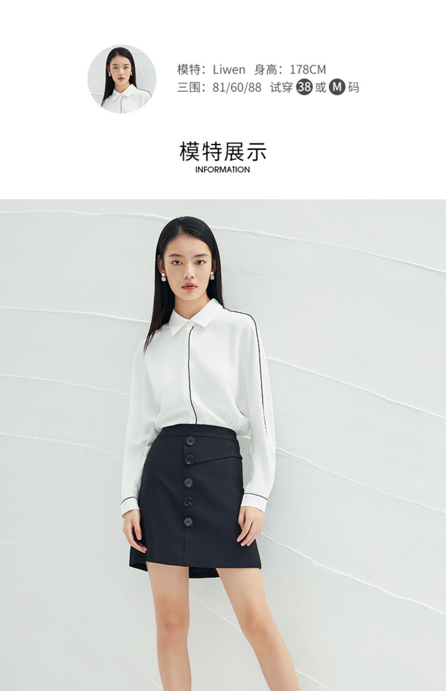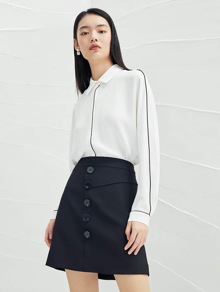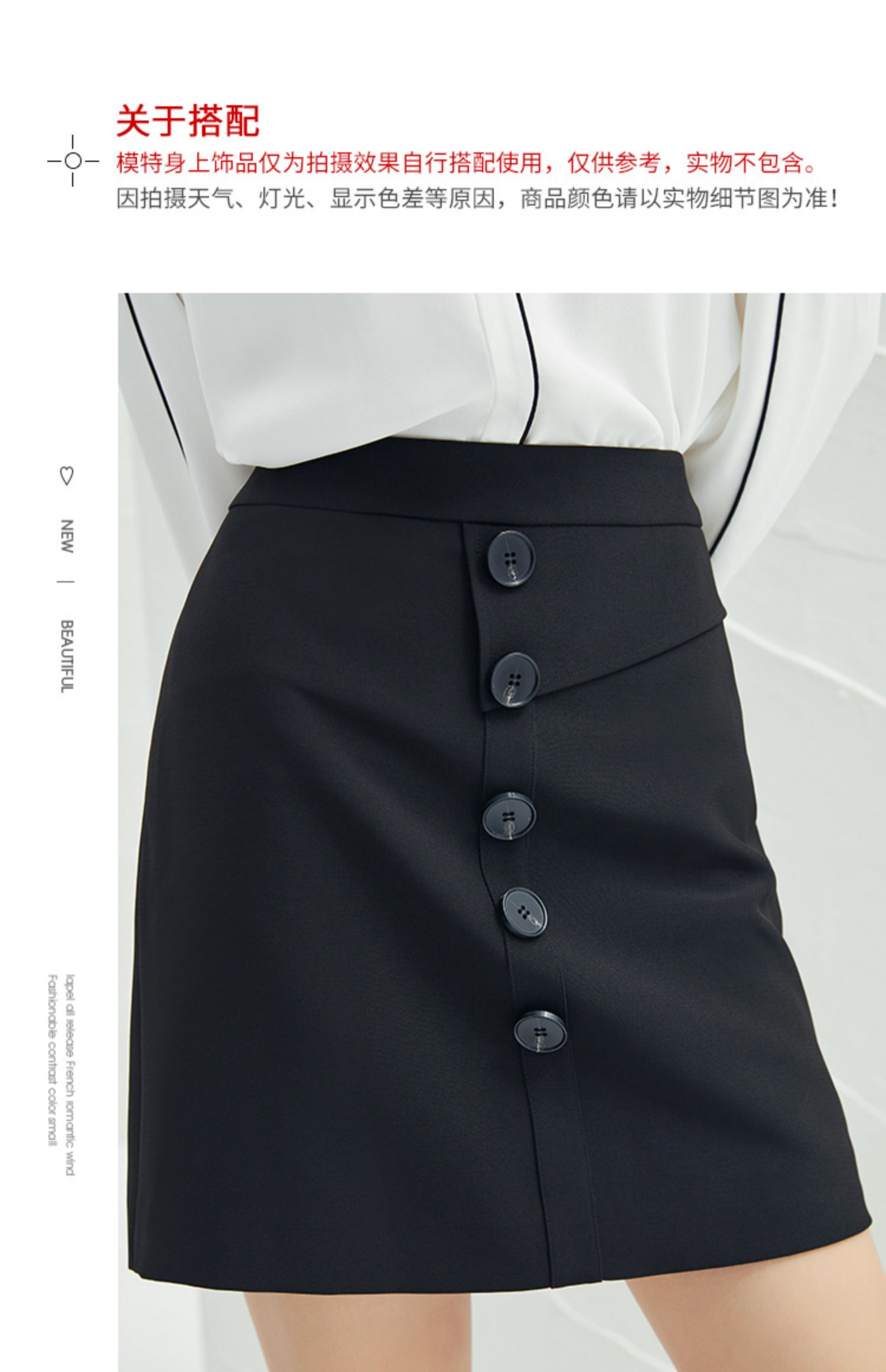 EITIE爱特爱春季新款时尚复古A字显瘦简约百搭高腰单排扣干练半身裙A2206909