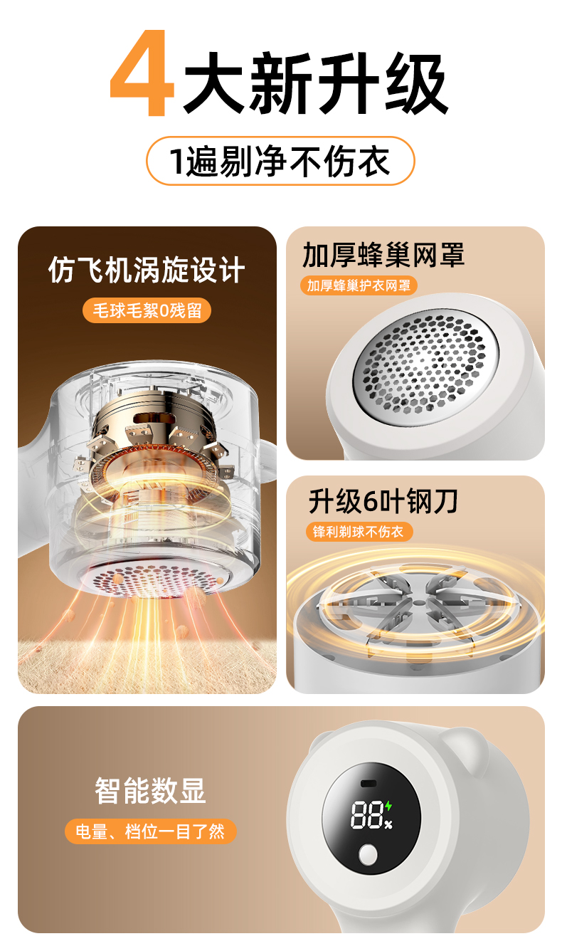 “毛球克星”【IQ熊智能护衣除毛器】家用/旅行用除毛器,旧衣物“焕新颜值”/旧衣物“焕新颜值”/升级6叶精钢刀头/led数显/3档可调,去毛球更快更细致/