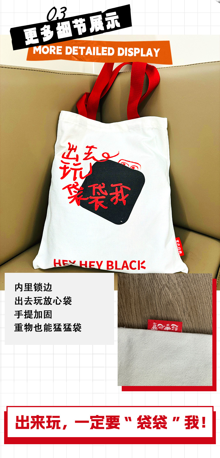【文创周边】黑色经典文创帆布包 出去玩“袋袋”我 拍照打卡出行通勤包