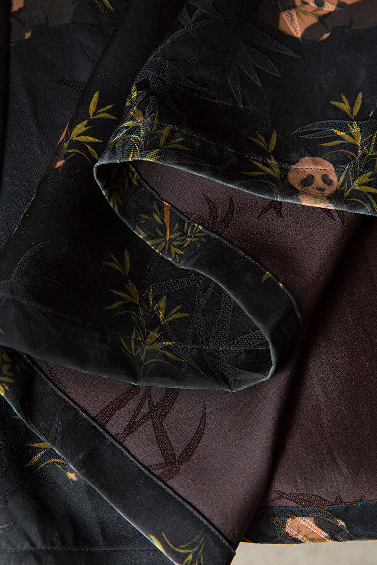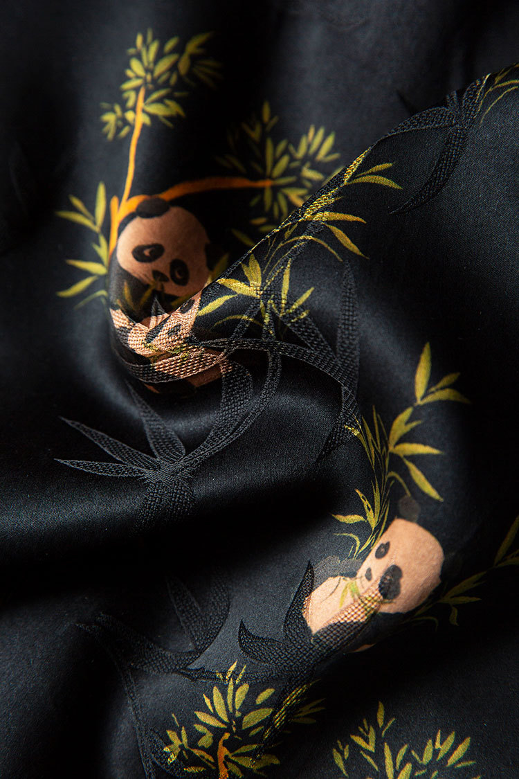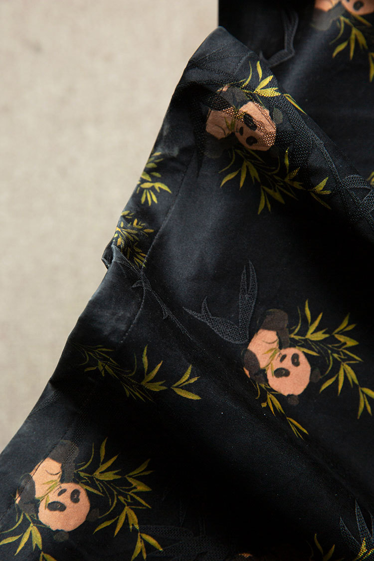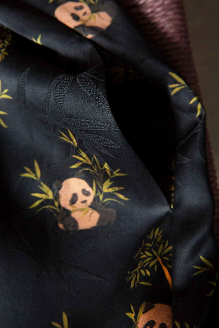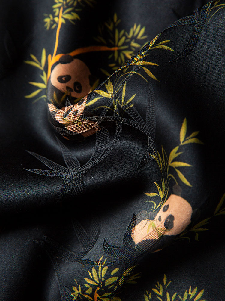 丁摩 真丝缎面绞萝香云纱提花连衣裙长裙 熊猫中式桑蚕丝改良旗袍裙5ZF-078