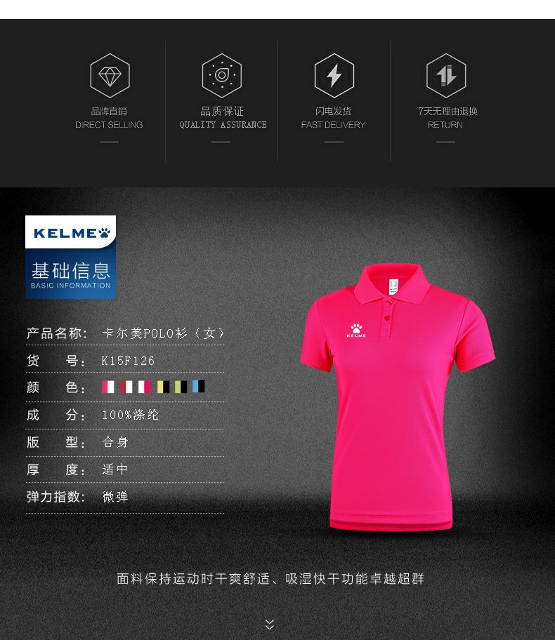 卡尔美 运动短袖t恤女翻领POLO衫吸汗透气吸湿休闲短袖女