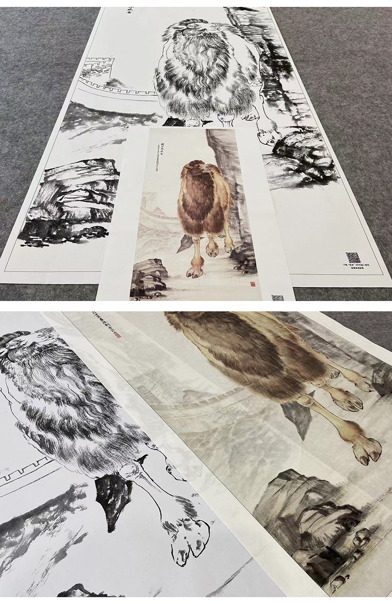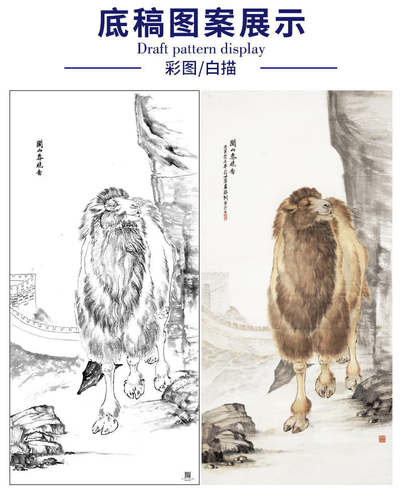 【大彩图】刘奎龄工笔画白描底稿《关山春晓图》骆驼临摹勾线高清打印稿A644