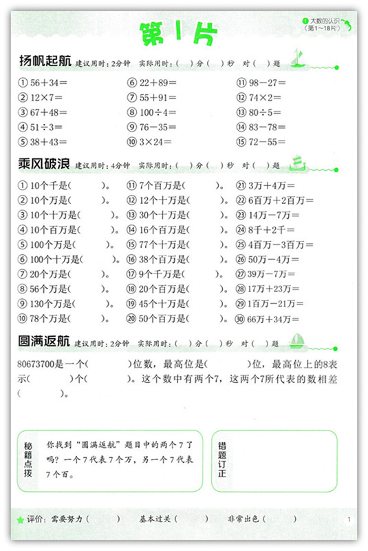 新编口算天天练四年级上(人教版)浙江教育出版社