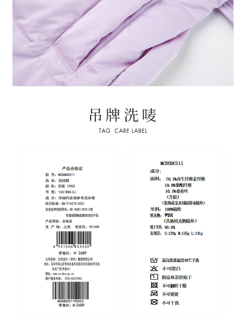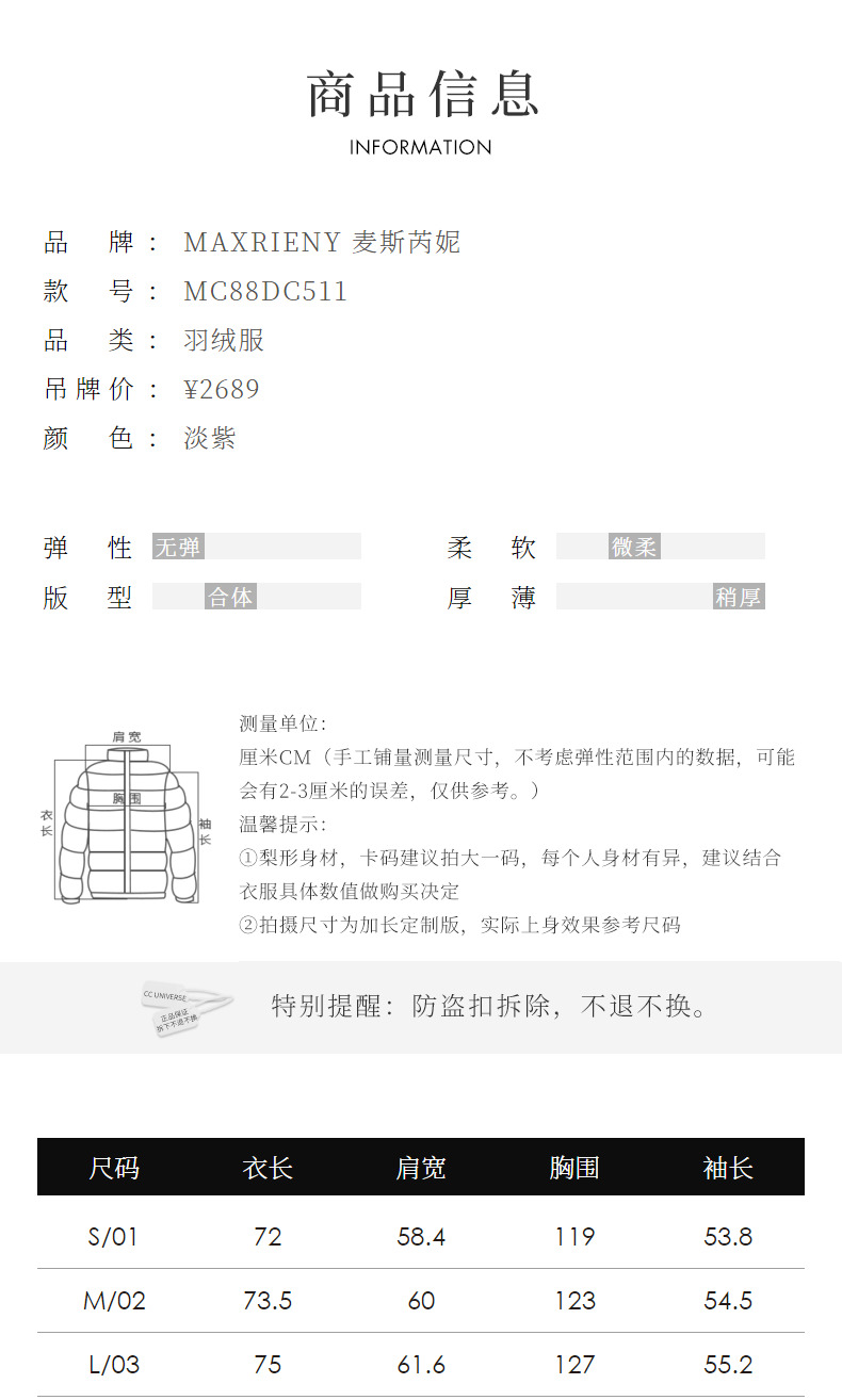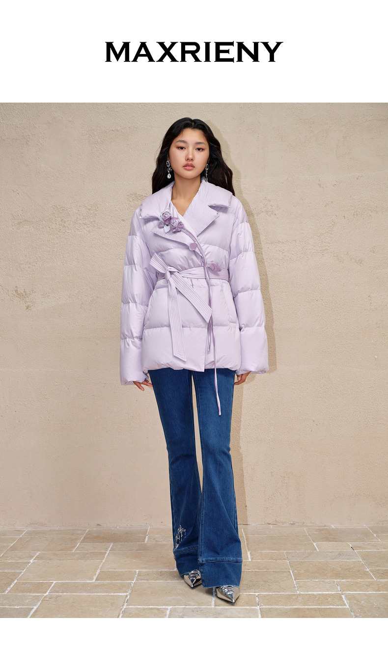 MAXRIENY大翻领收腰鸭绒泡芙羽绒服女保暖外套(货号:MC88DC511)