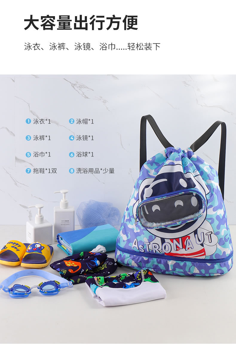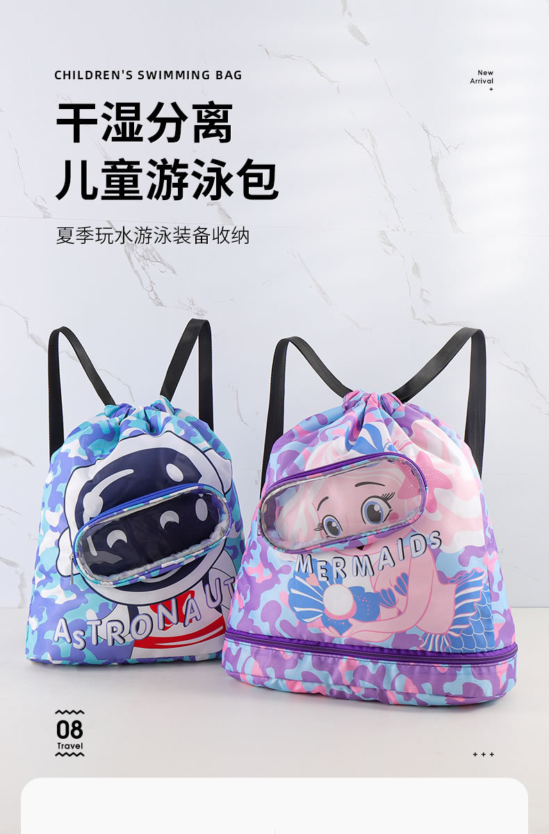 【夏季玩水!游泳装备收纳包】儿童干湿分离防水收纳袋,防刮耐磨防泼水,独立鞋仓干净卫生,干湿分离,男女童运动包,内有PVC防水隔袋,便携可爱卡通沙滩双肩包-QQ