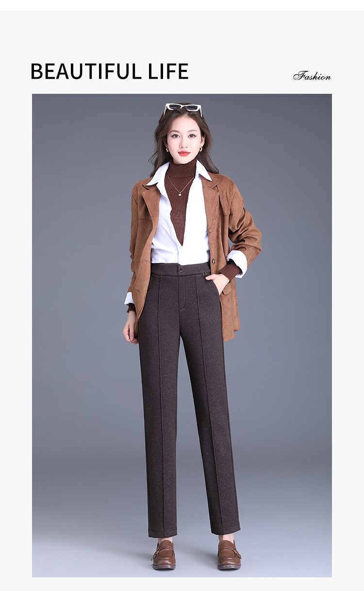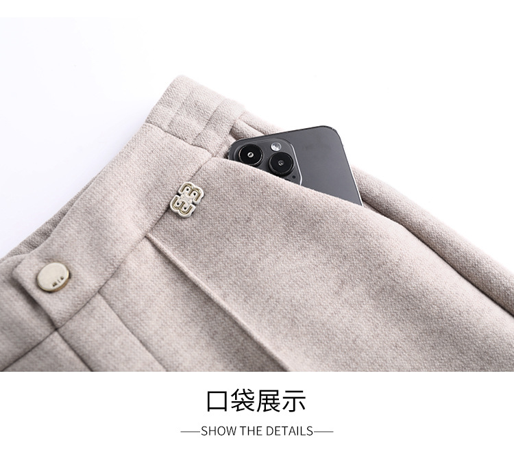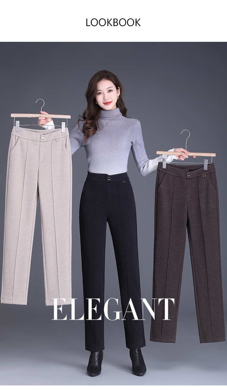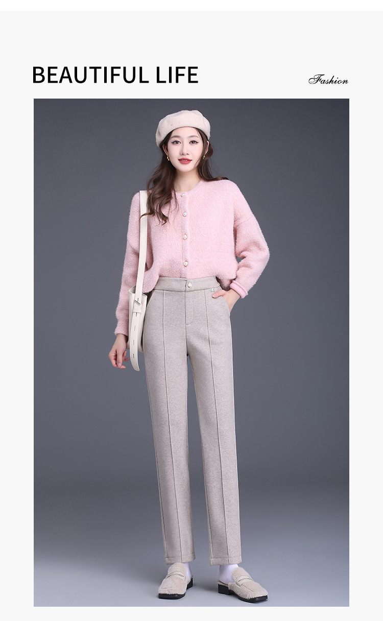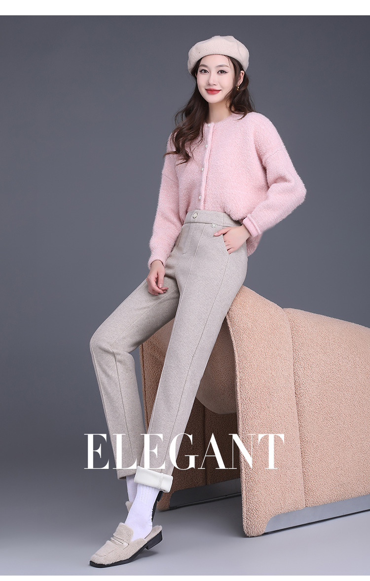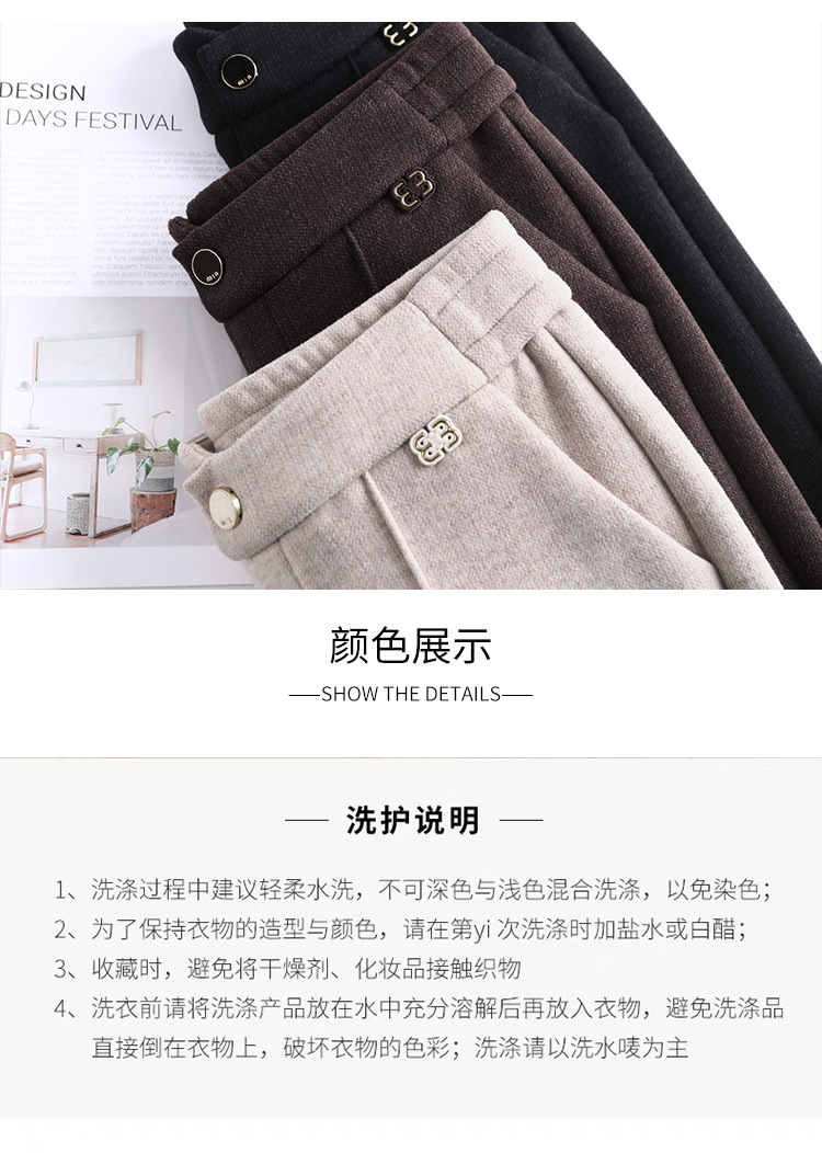 MYX-XBMY-6590-L长款简约宽松休闲毛呢锥形裤2023年冬款后腰松紧修身时尚哈伦裤
