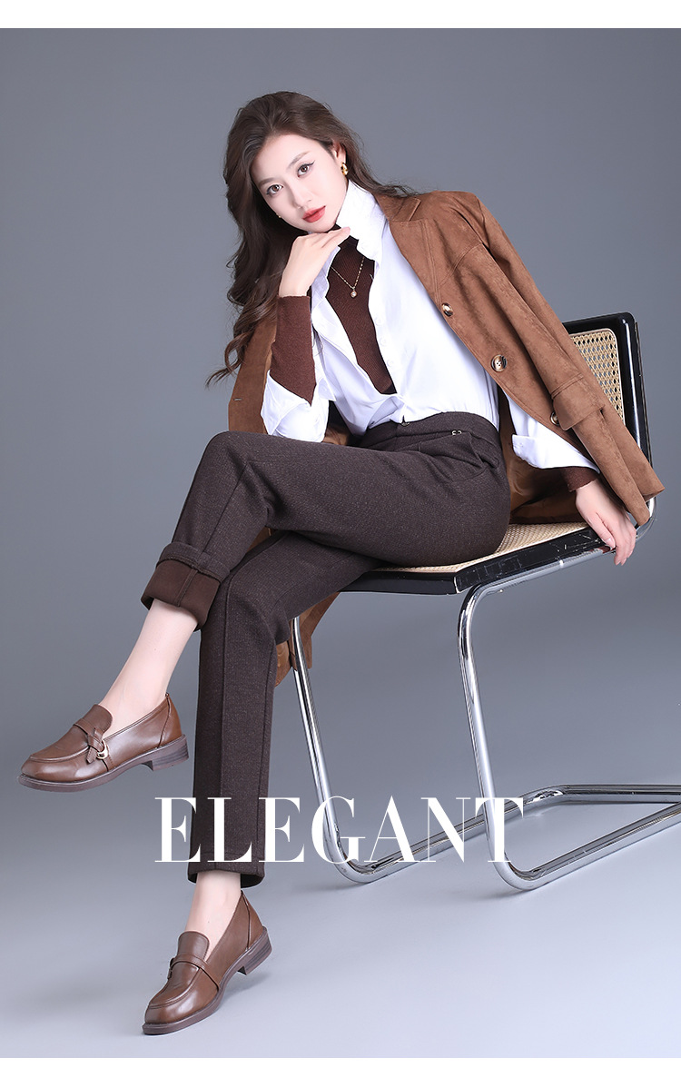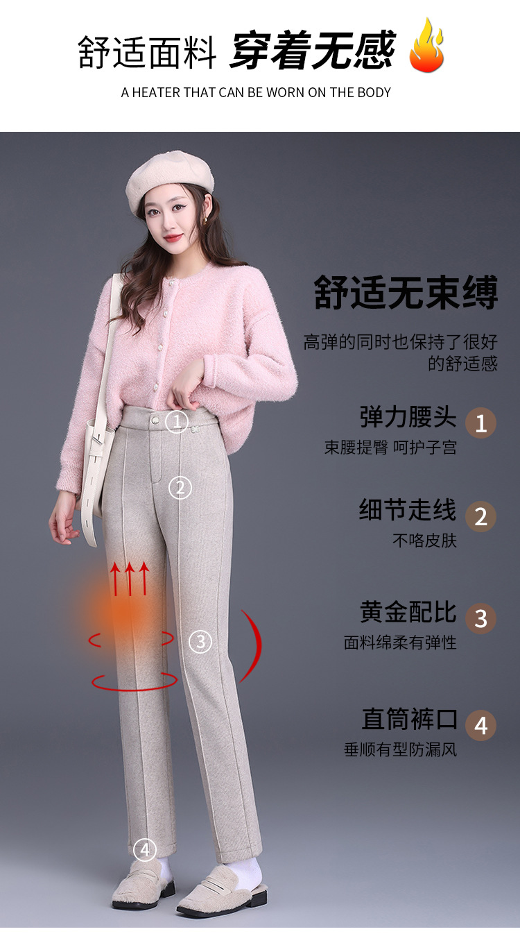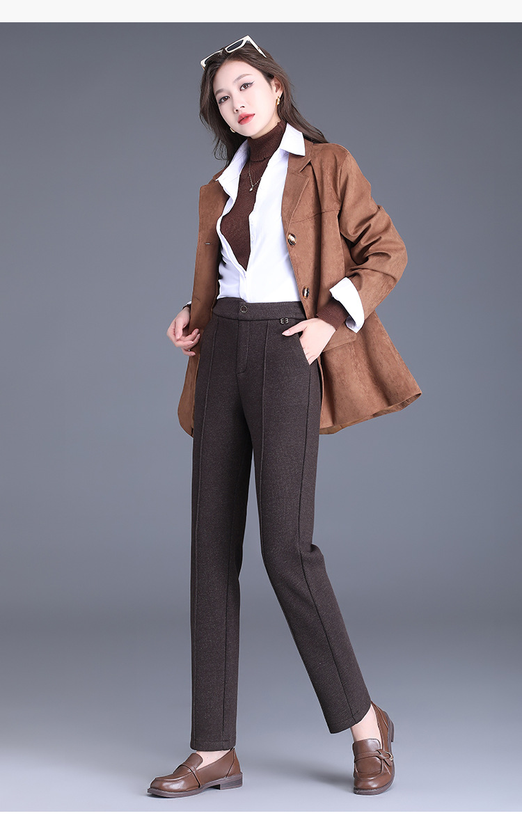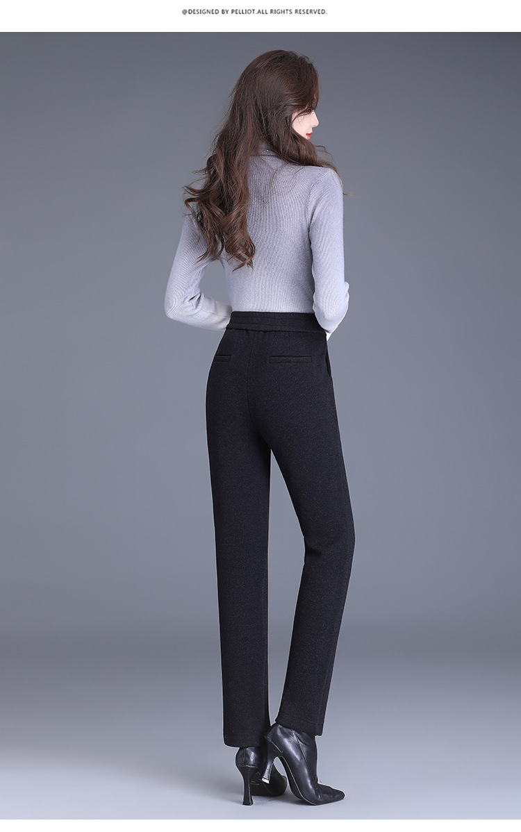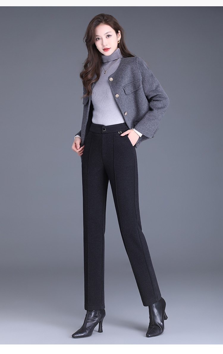 MYX-XBMY-6590-L长款简约宽松休闲毛呢锥形裤2023年冬款后腰松紧修身时尚哈伦裤