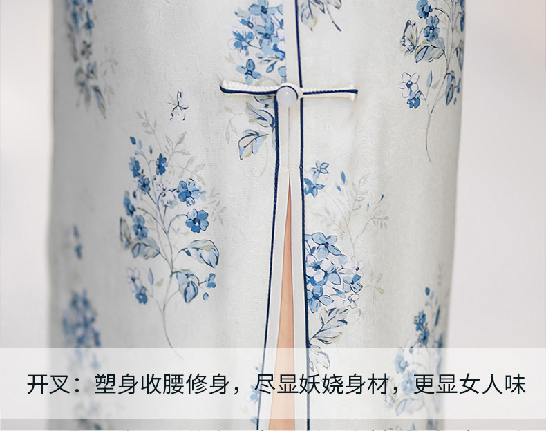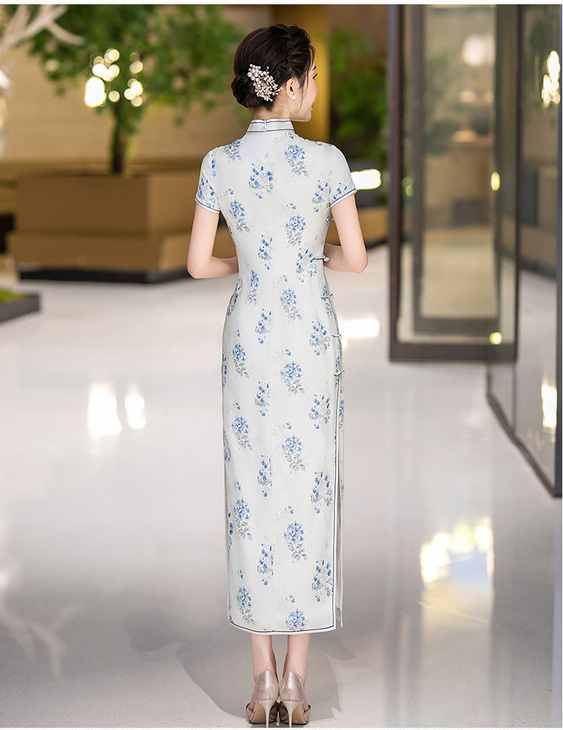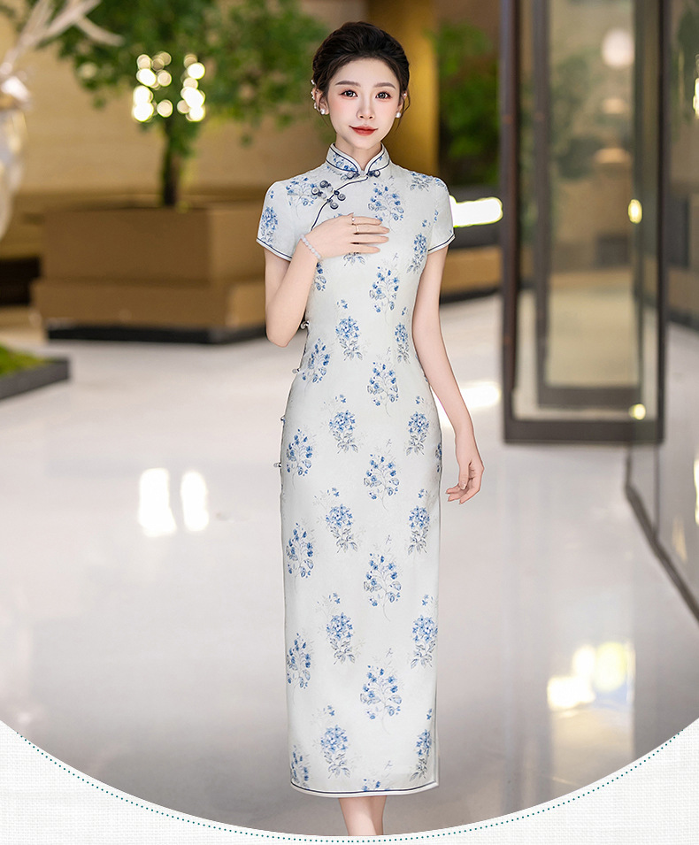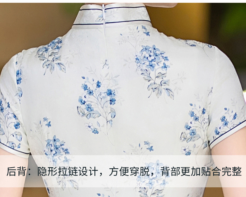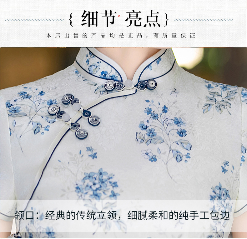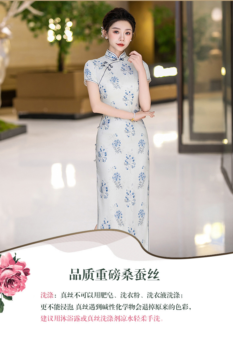 WX-25007春季新款真丝旗袍中式桑蚕丝连衣裙手工缝制送考宴席日常可穿