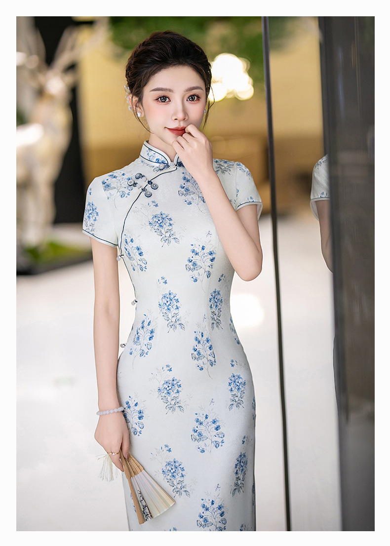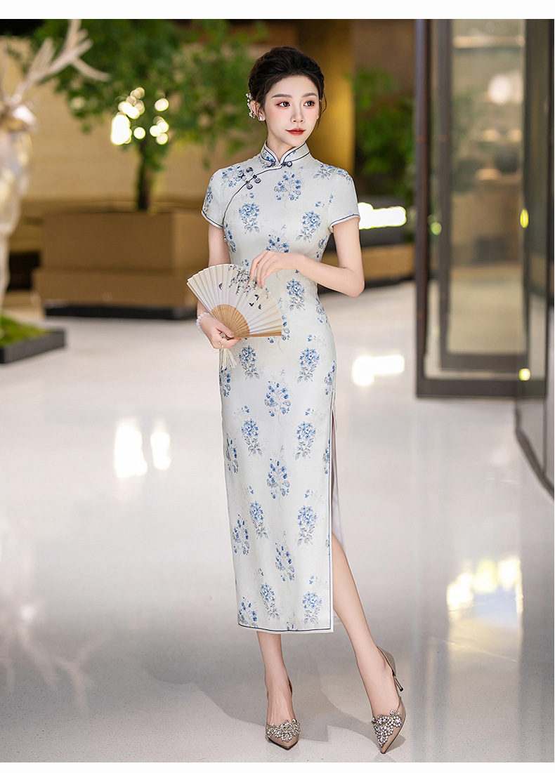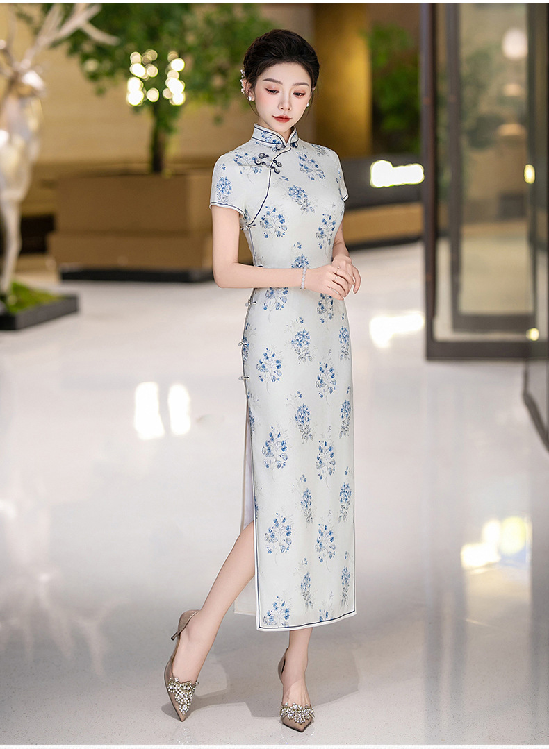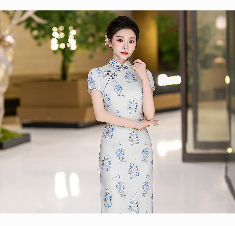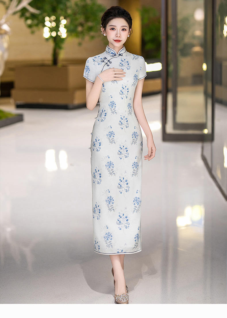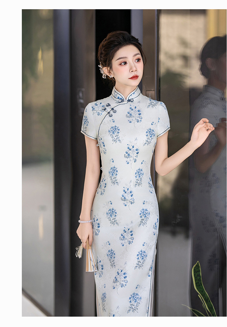 WX-25007春季新款真丝旗袍中式桑蚕丝连衣裙手工缝制送考宴席日常可穿