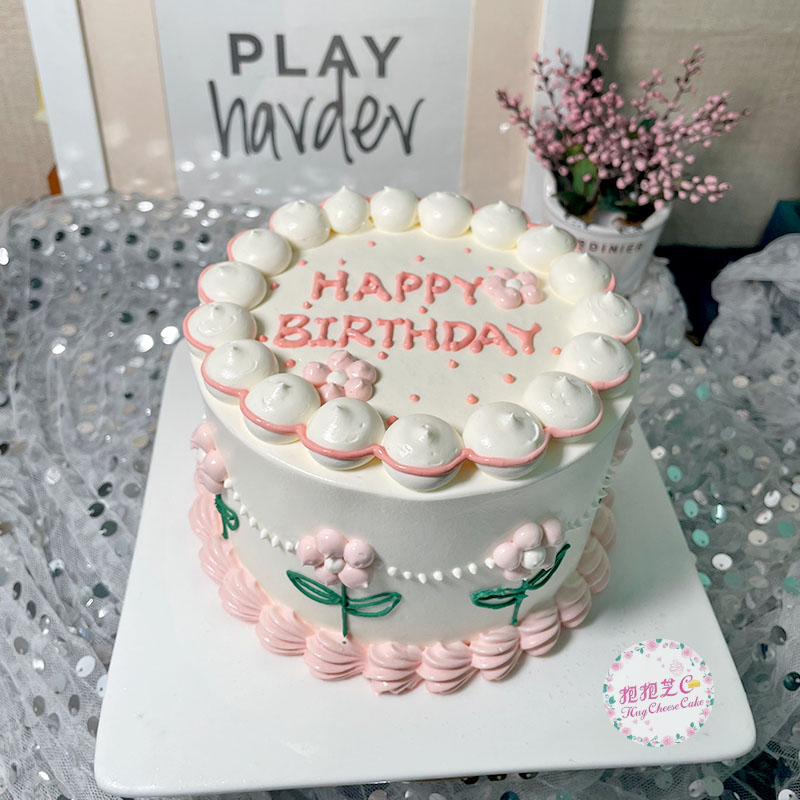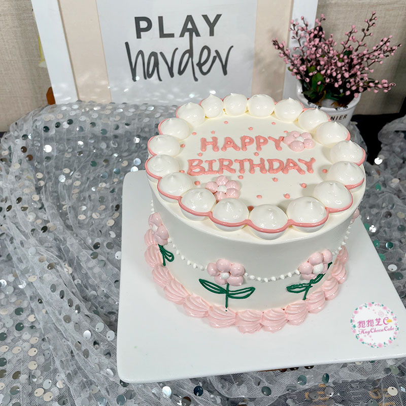 粉色系复古蛋糕,粉色的花朵也太温柔啦