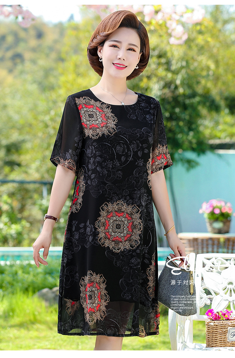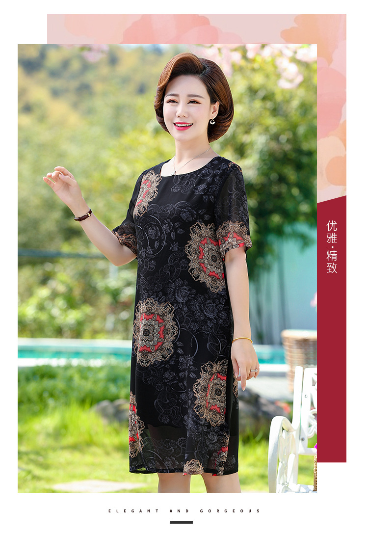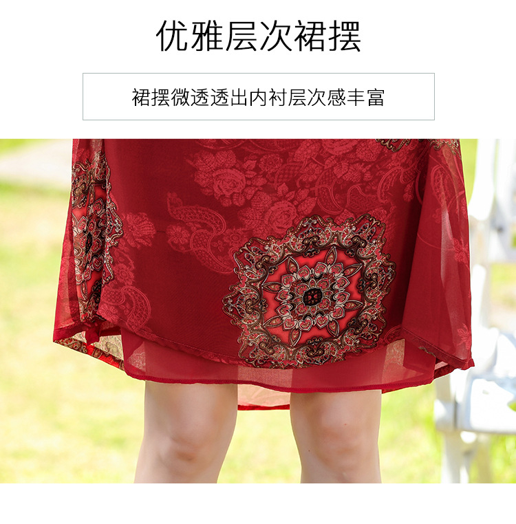 LLJR-Q8QQ931CF夏季复古优雅印花大码雪纺连衣裙