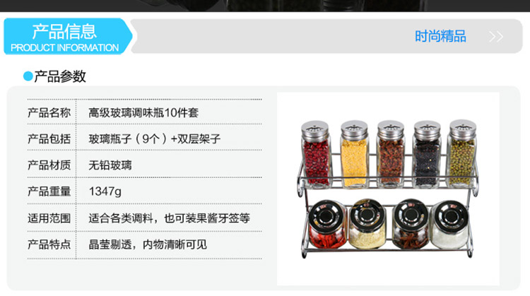 拜杰(Baijie)玻璃调料盒套装调味罐调味盒调料罐