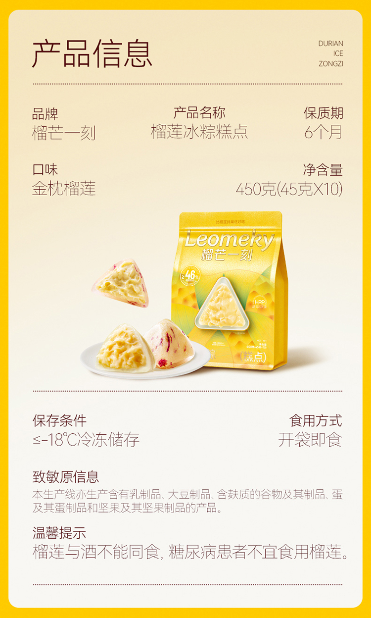 【高性价比】榴芒一刻榴莲冰粽缤纷多口味冰粽45g*10枚袋装端午送礼