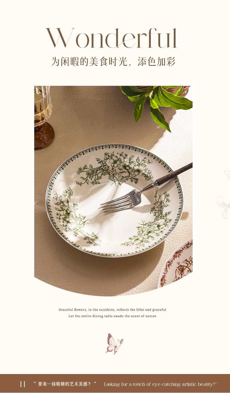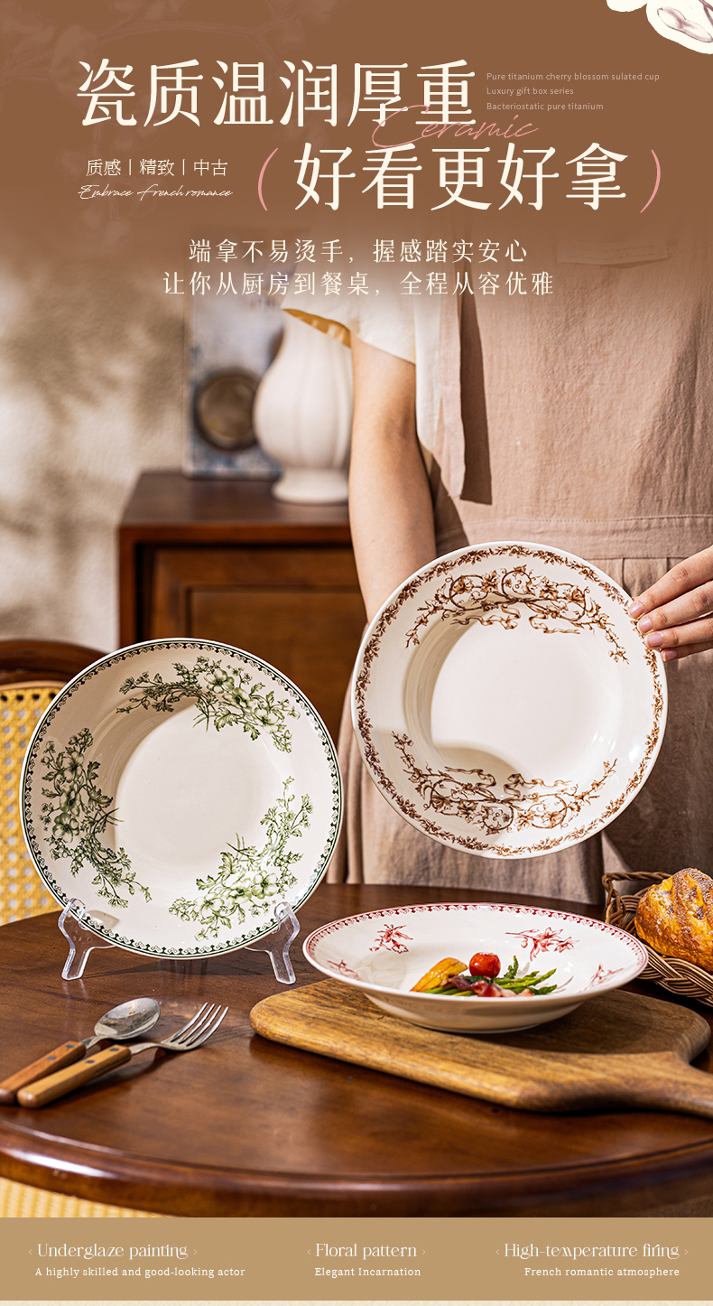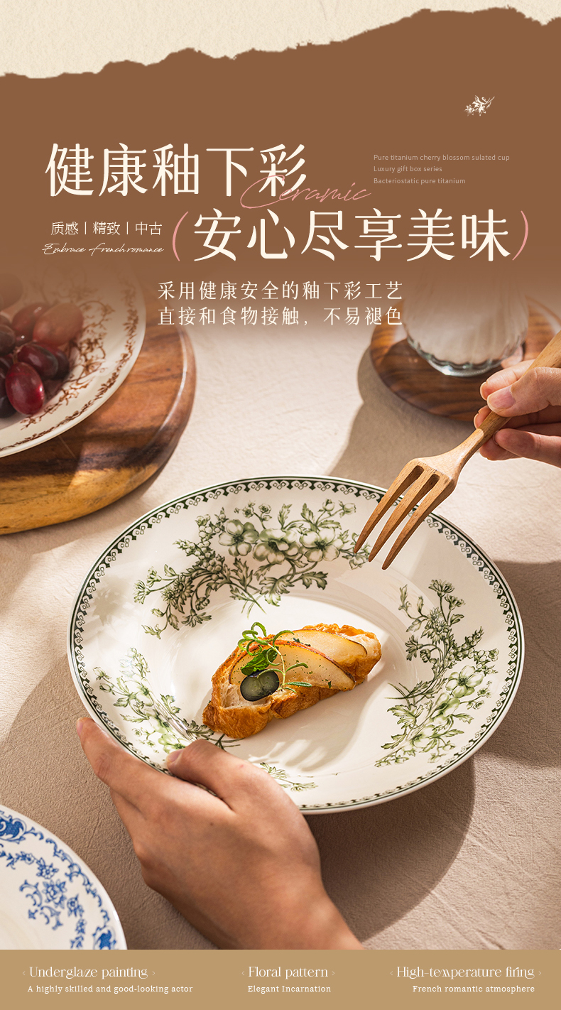 摩登主妇釉下彩盘子家用菜盘碟子高级感漂亮餐具西餐盘甜品早餐盘