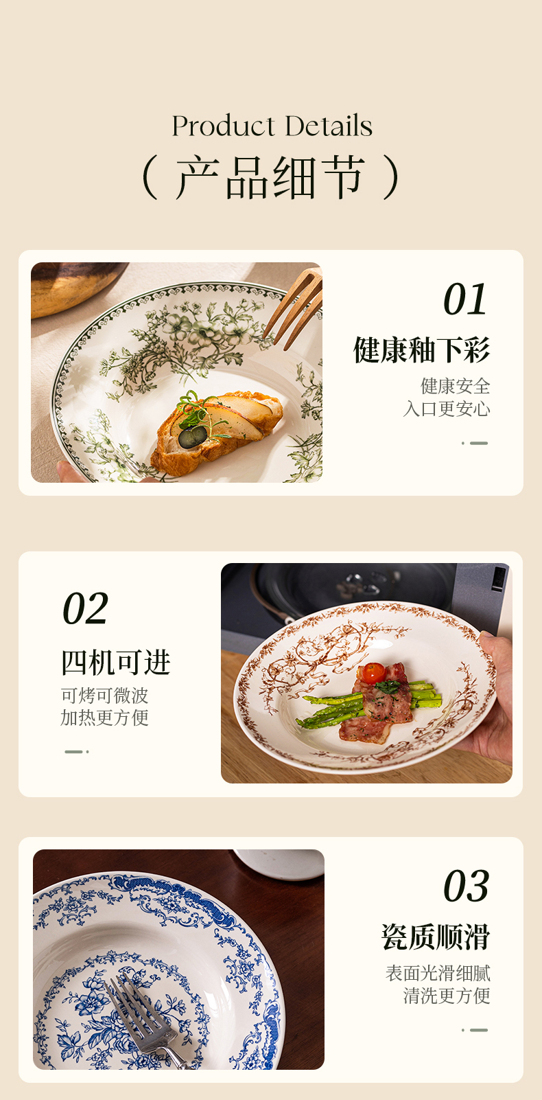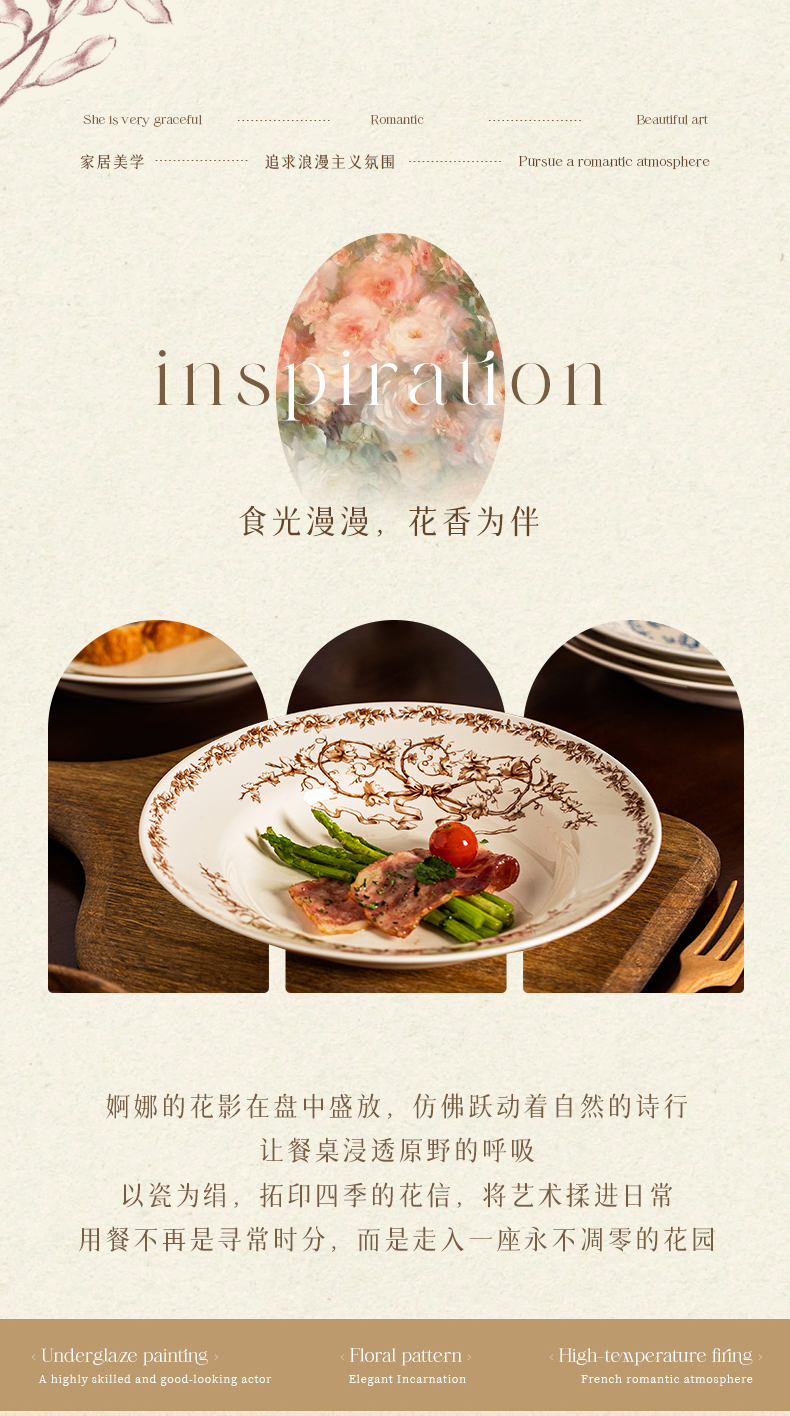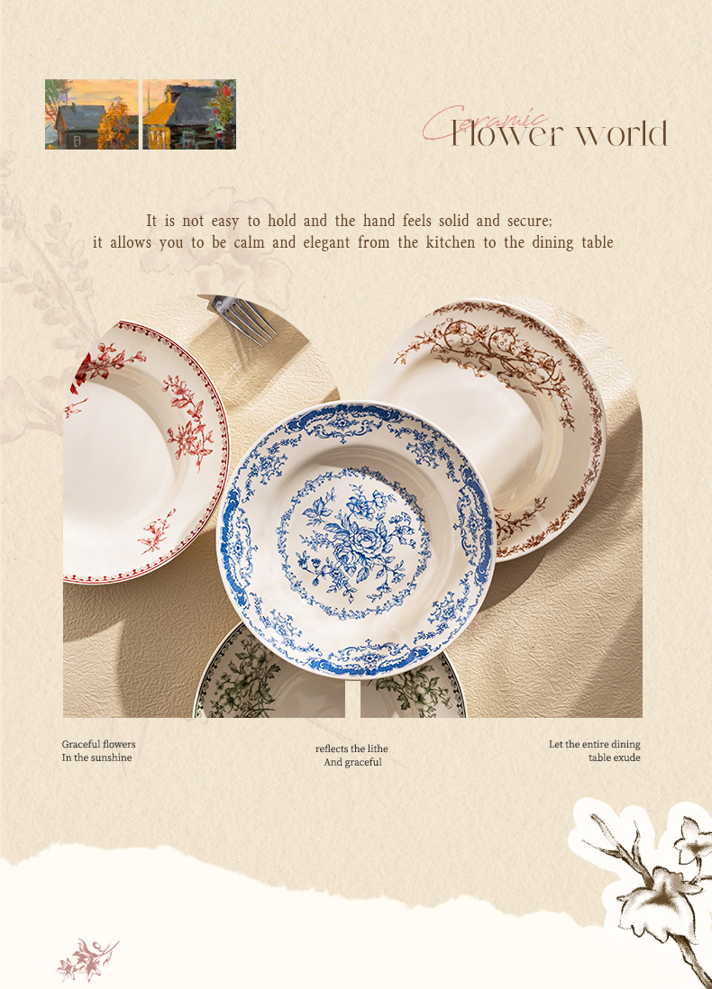 摩登主妇釉下彩盘子家用菜盘碟子高级感漂亮餐具西餐盘甜品早餐盘
