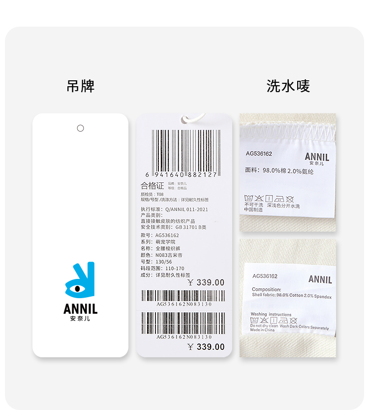 【实体店同款】女童全腰梭织裤秋季新款安奈儿童装AG536162