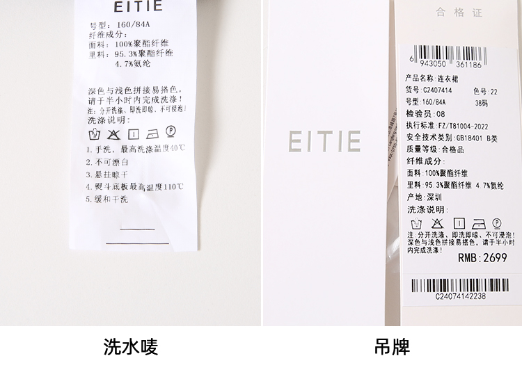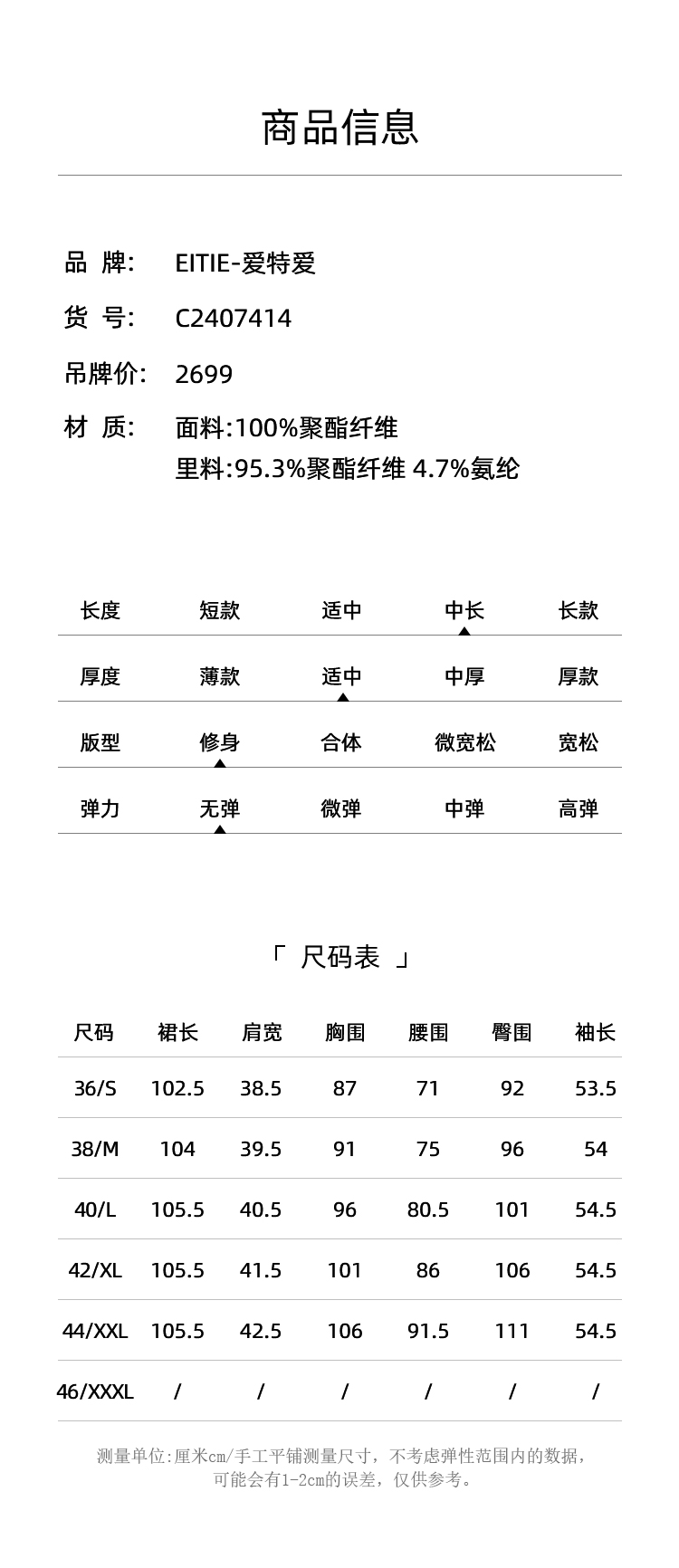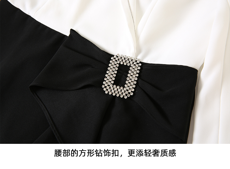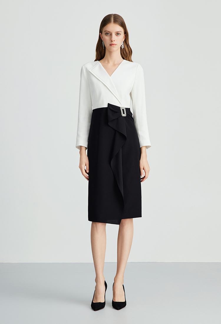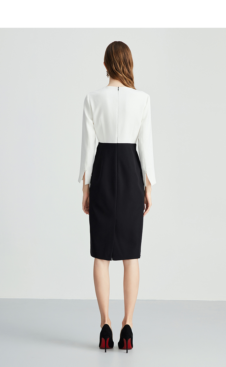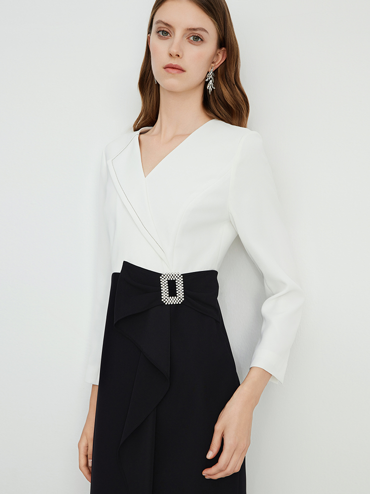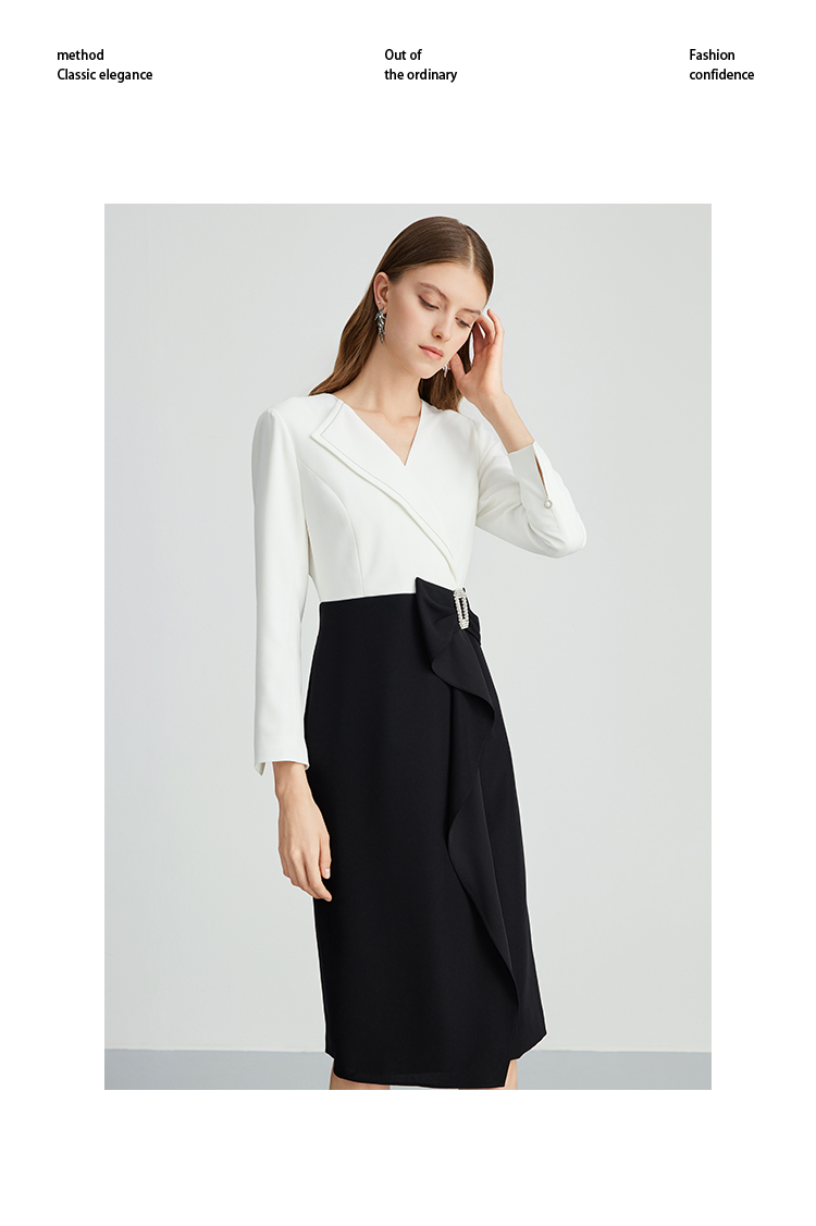EITIE爱特爱不对称设计通勤撞色收腰包臀V领气质连衣裙秋新款C2407414