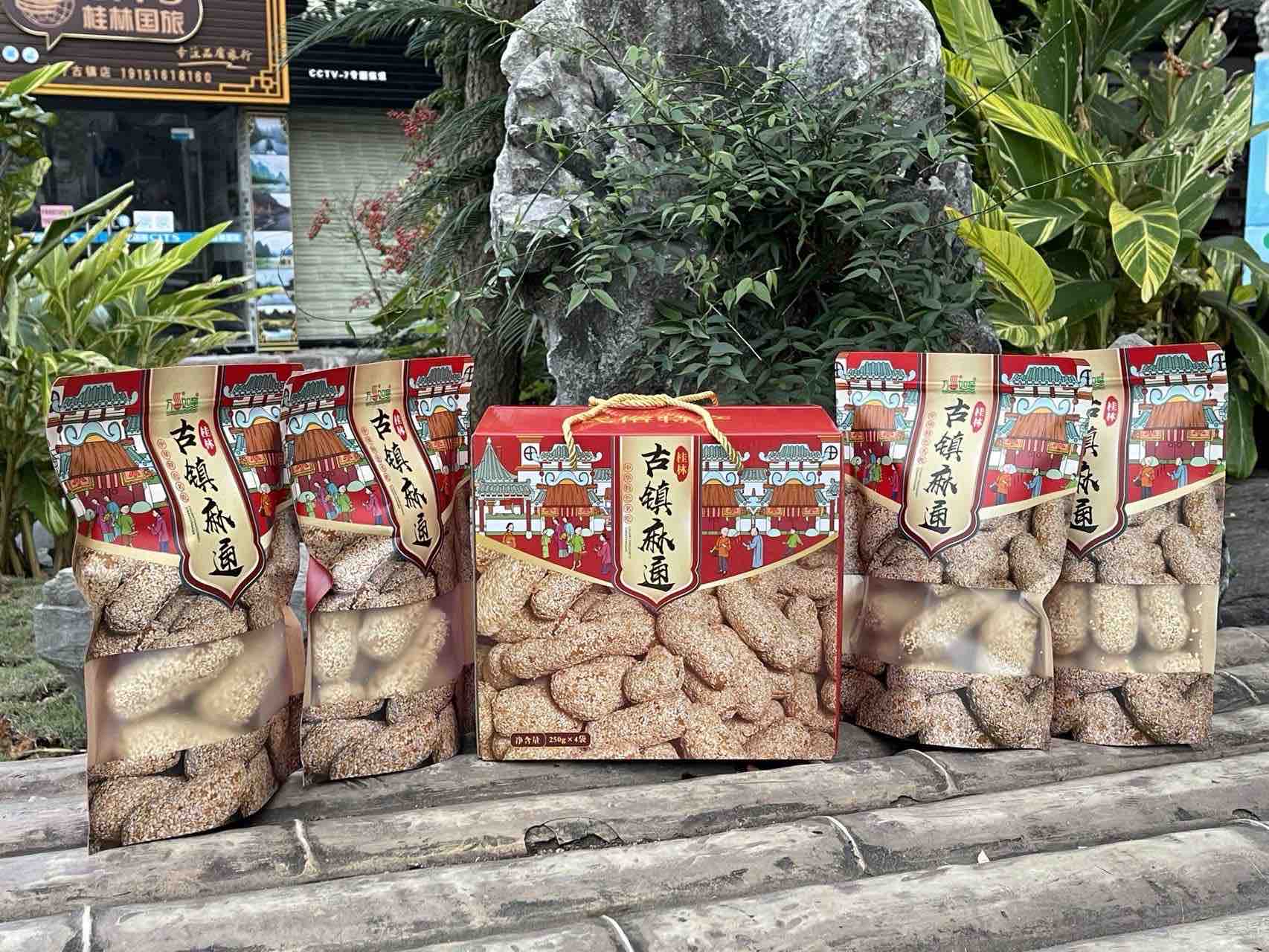 【品名】桂林古镇手工拉丝麻通 【规格】 、喜庆装230g*2袋试吃装(芝麻、花生各1袋) 、喜庆装230g*4袋礼盒装(芝麻/花生/双拼可任选) 、喜庆装230g*10袋家庭装(芝麻/花生/双拼可任选) 上架按照以下规格设置SKU : 试吃装: 喜庆装:芝麻味1+花生味1(试吃装) 喜庆装:白芝麻*2袋(试吃装) 喜庆装:花生味*2袋(试吃装) 礼盒装: 喜庆装:芝麻味2+花生味2 喜庆装:白芝麻*4袋 喜庆装:花生味*4袋 【包装】2袋试吃装+物流彩箱,4袋装+礼盒+物流箱,10袋家庭装+物流彩箱 【发货时效】72小时内 【发货地】广西桂林 【质保期】60天 【存储方法】阴凉干燥密封保存,开袋后请尽快食用 【配料】糯米粉,玉米淀粉,白砂糖,麦芽糖,芝麻/花生,食用植物油 【口味】(芝麻/花生/双拼可任选,上架链接做3个选项) 【食用方法】开封即食 【快递名称】 顺丰快递