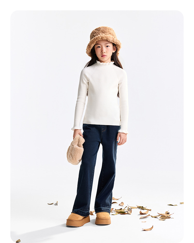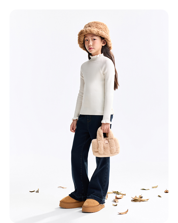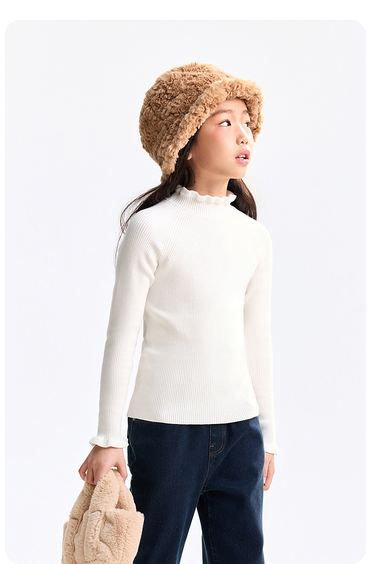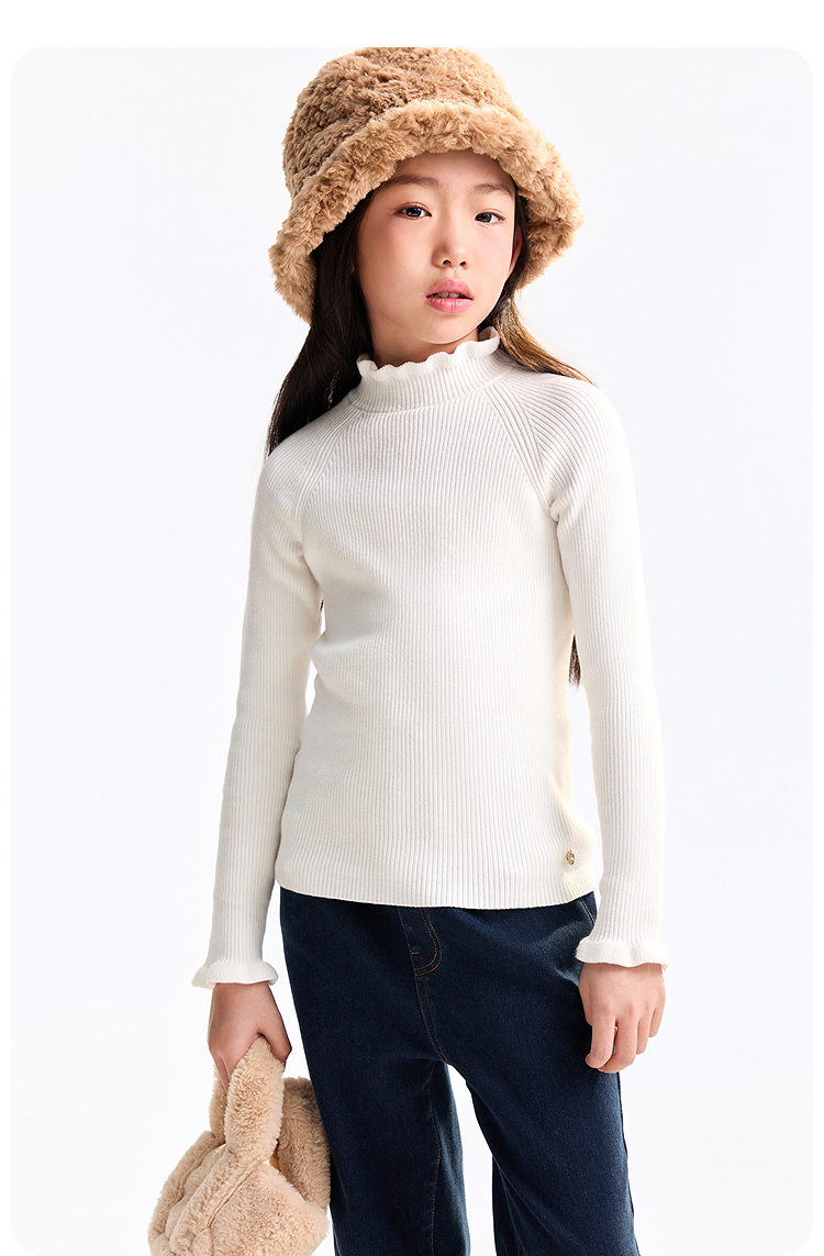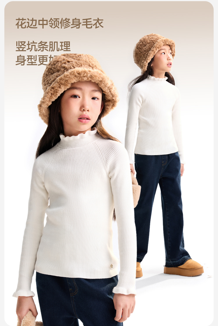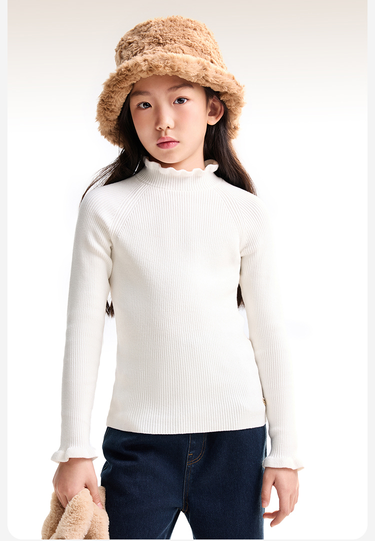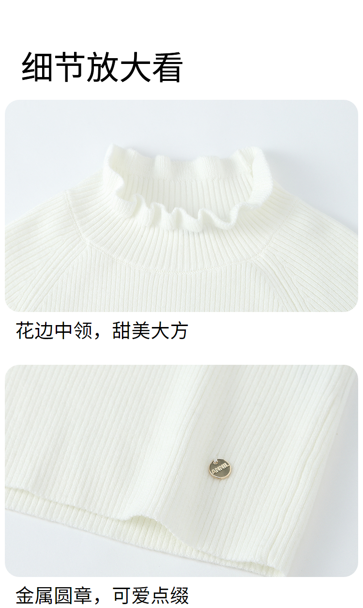 【含蚕丝/羊毛】女童中领长袖针织衫冬季新款安奈儿童装EG544562
