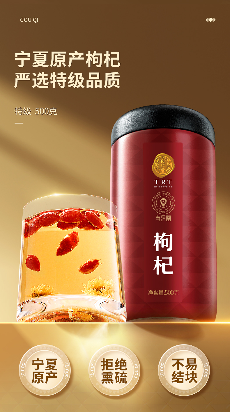 【正宗同仁堂品牌】北京同仁堂 青源堂 枸杞-特级-500克/瓶 宁夏原产地 果香浓郁 SY