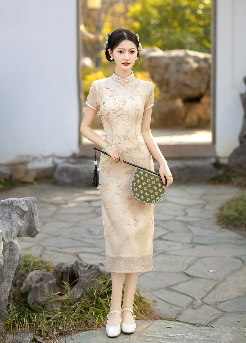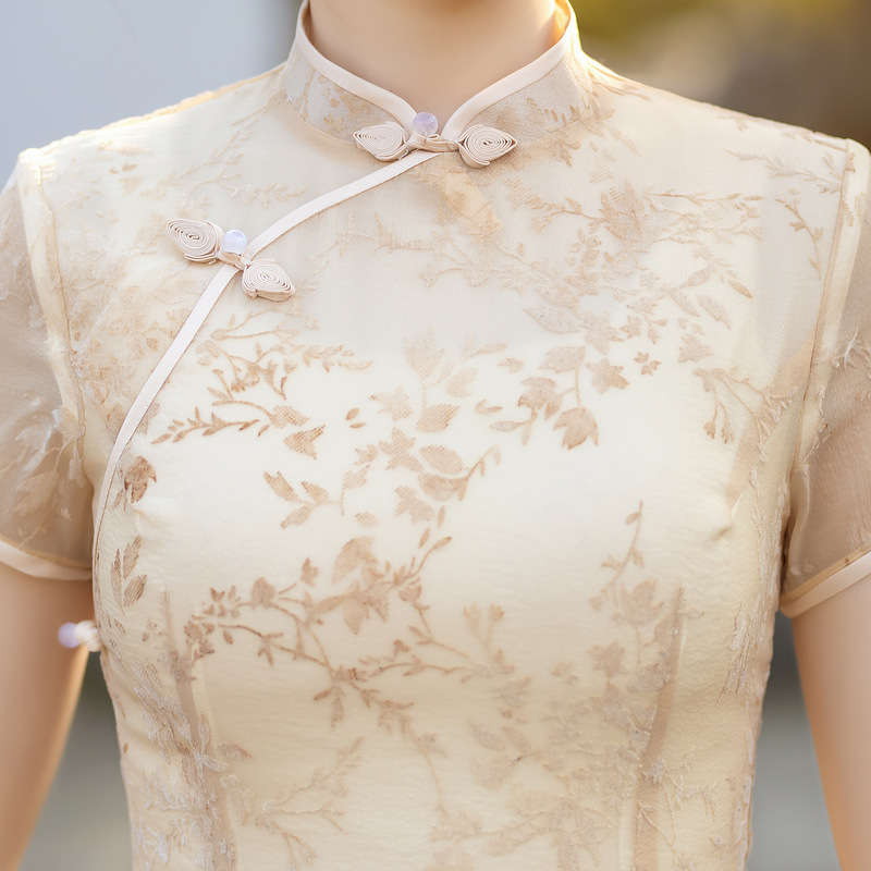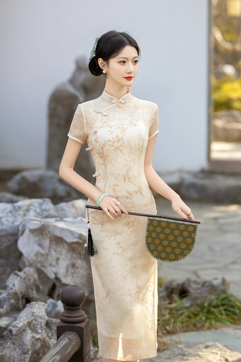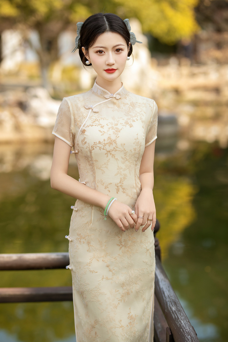 植绒旗袍春款改良年轻旗袍日常修身少女时尚旗袍ZA-5221