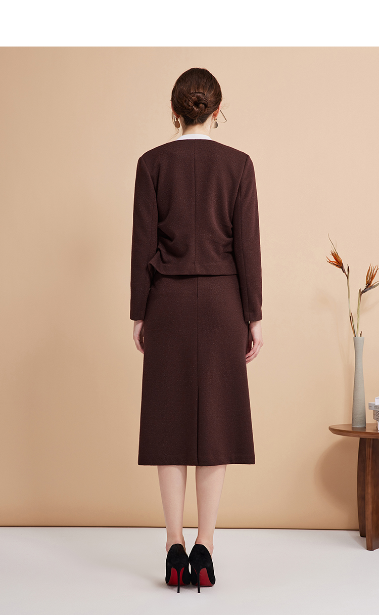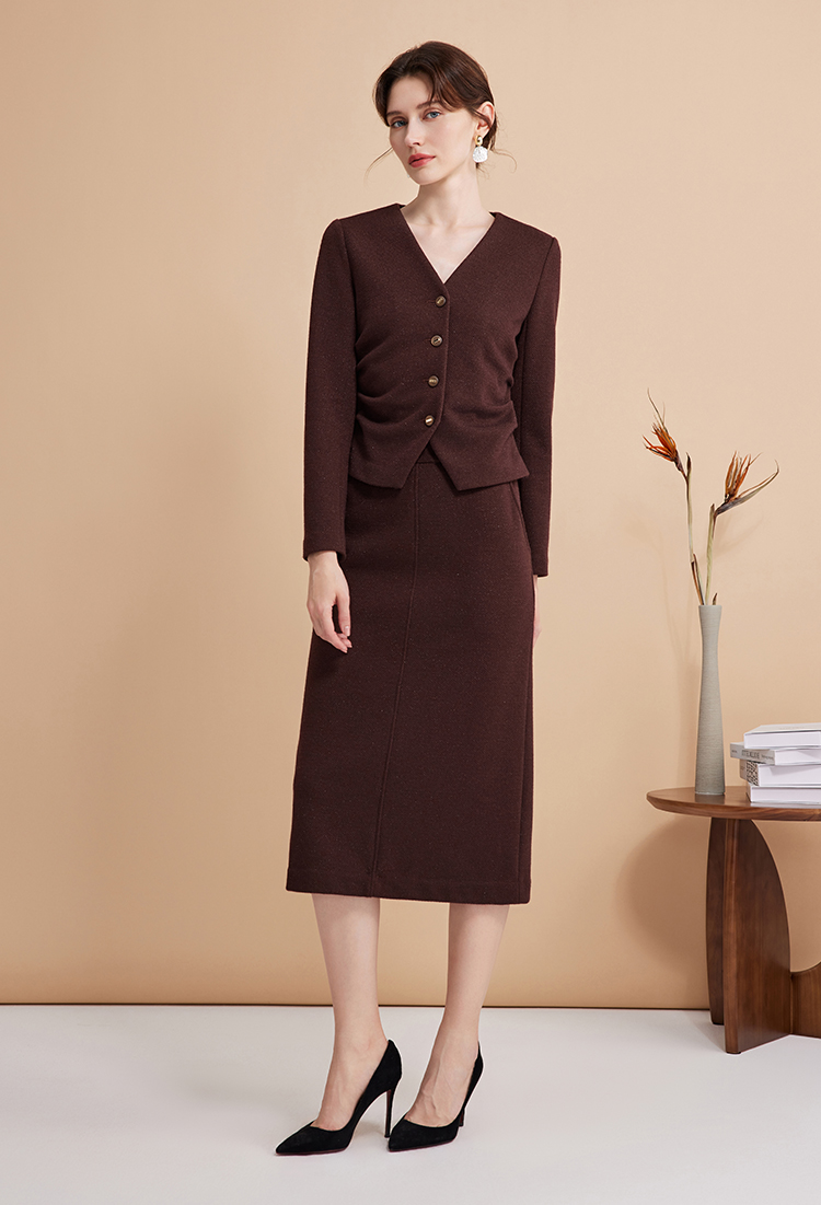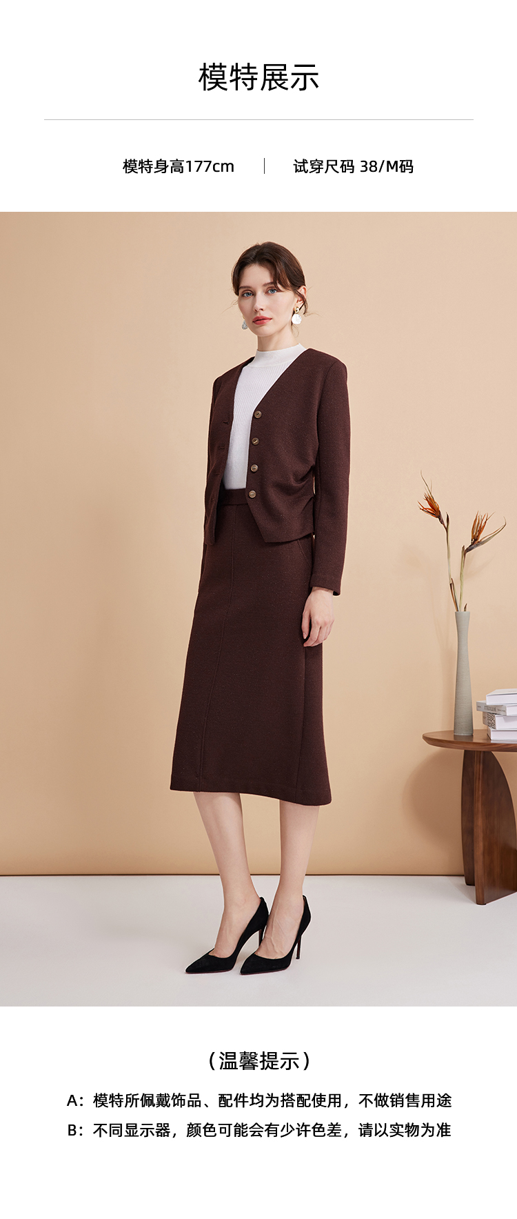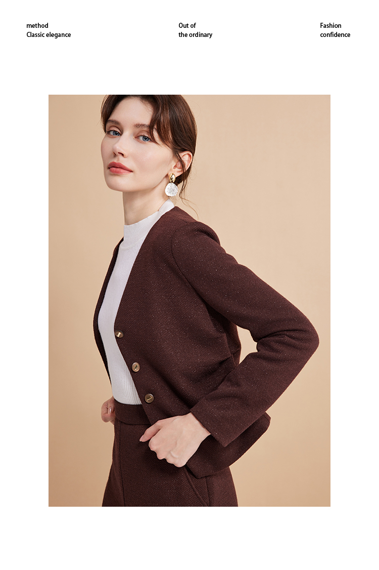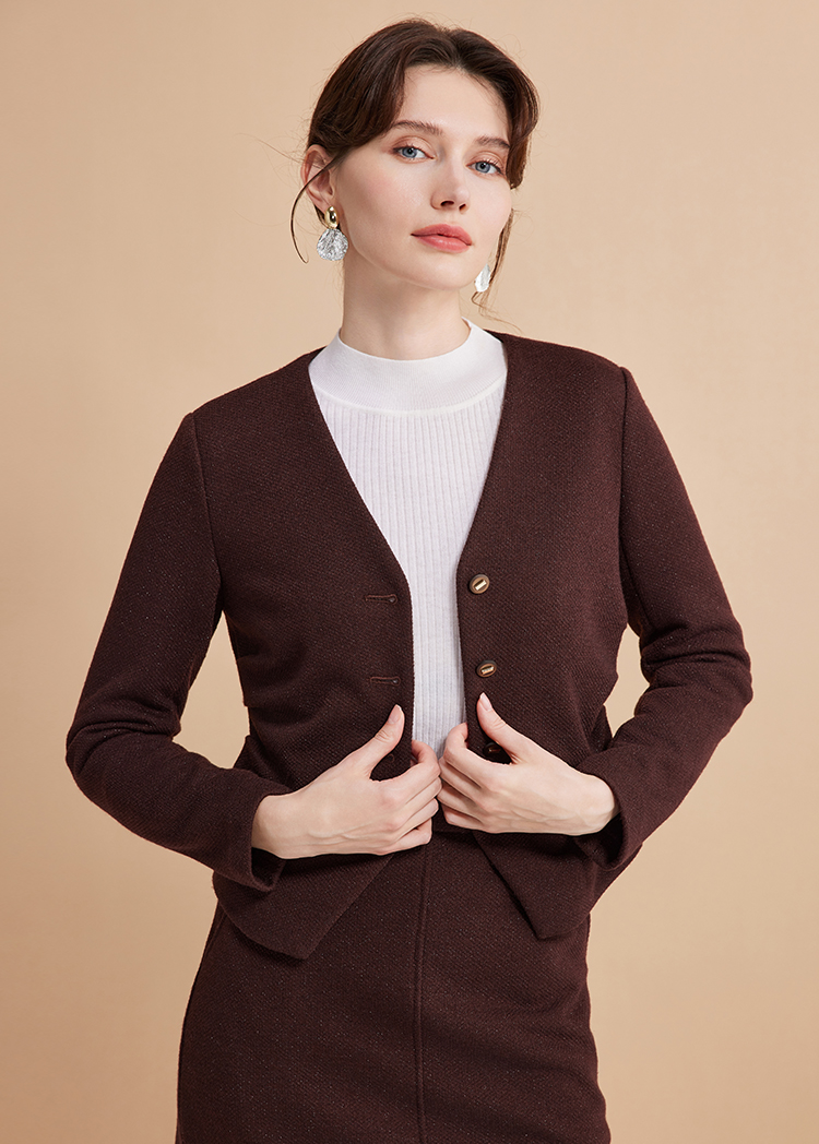 EITIE爱特爱气质V领高级感咖色褶皱收腰短款显瘦外套秋季新款D2403413