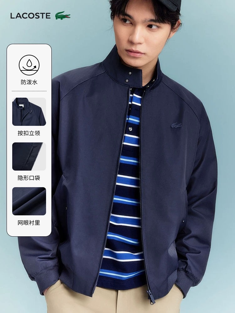 小立领➕按扣设计,特别显年轻有活力!最新的大身同色系3D硅胶质感鳄鱼logo刺绣点缀!两侧哈林顿风格翻盖插袋,老钱风复古有型!下摆和袖口都是高密螺纹加持,耐穿好穿!后背设有微开褶设计,增加视觉立体感!