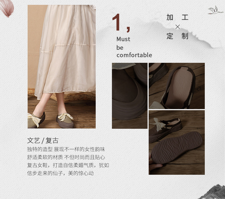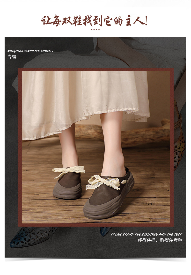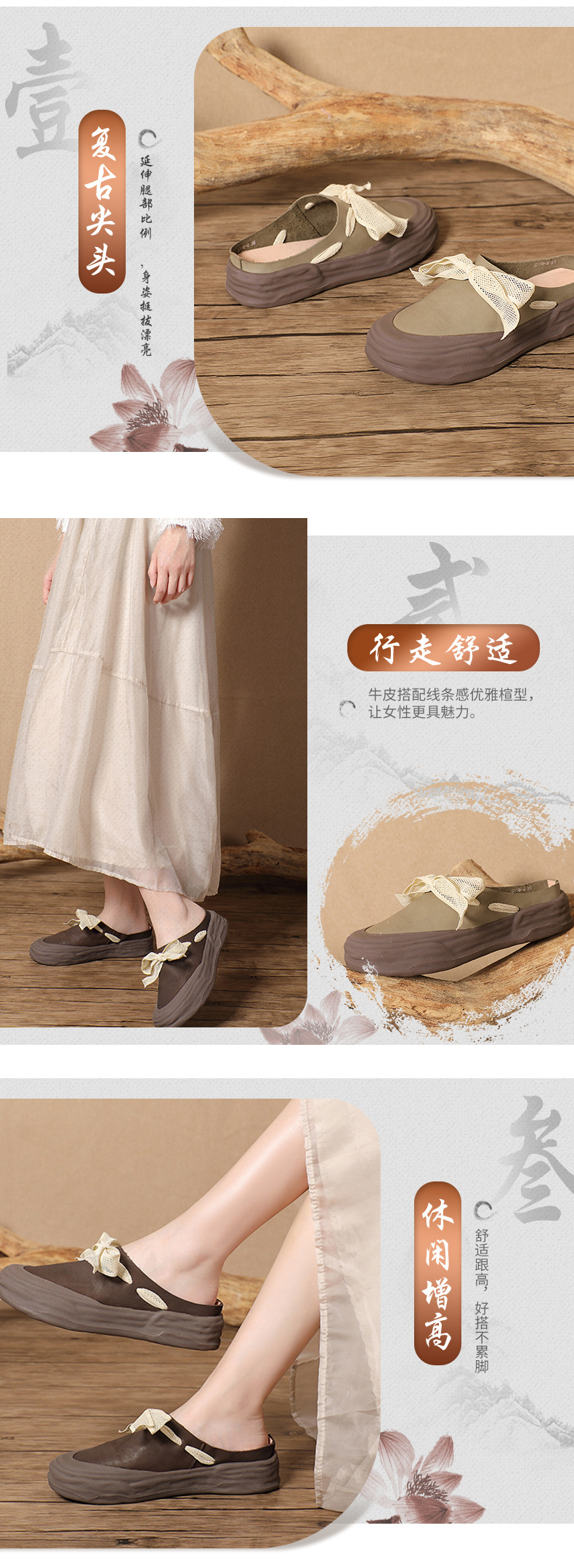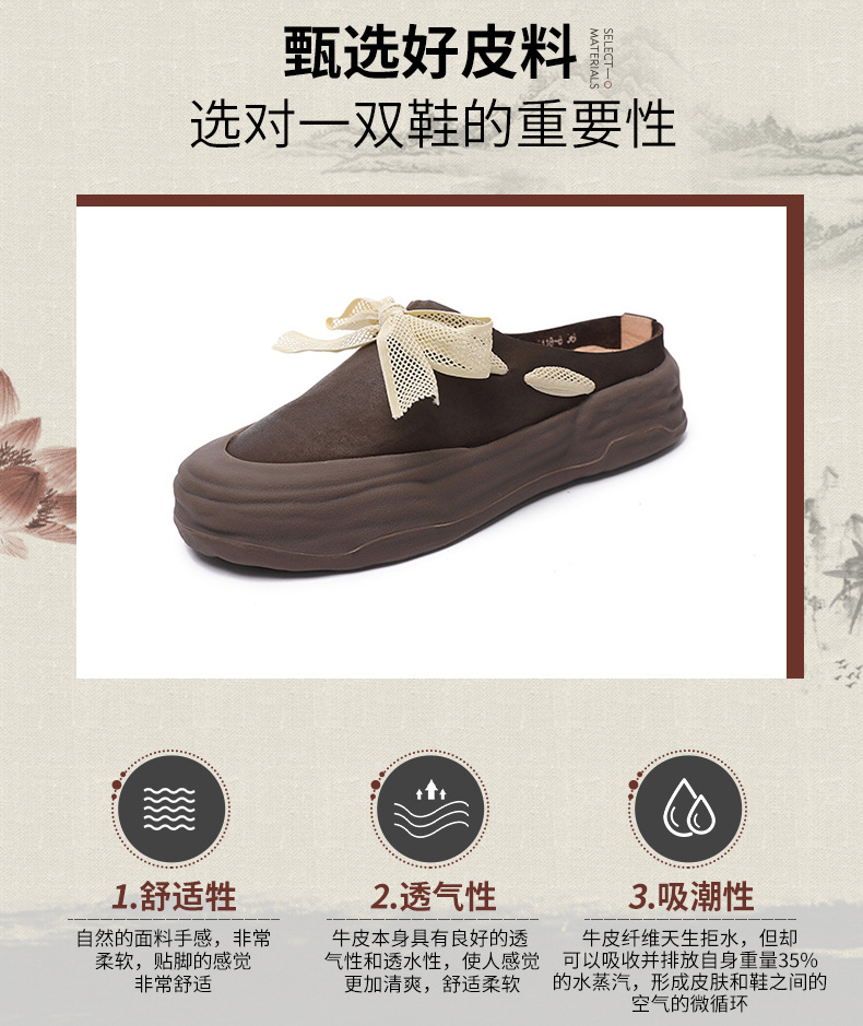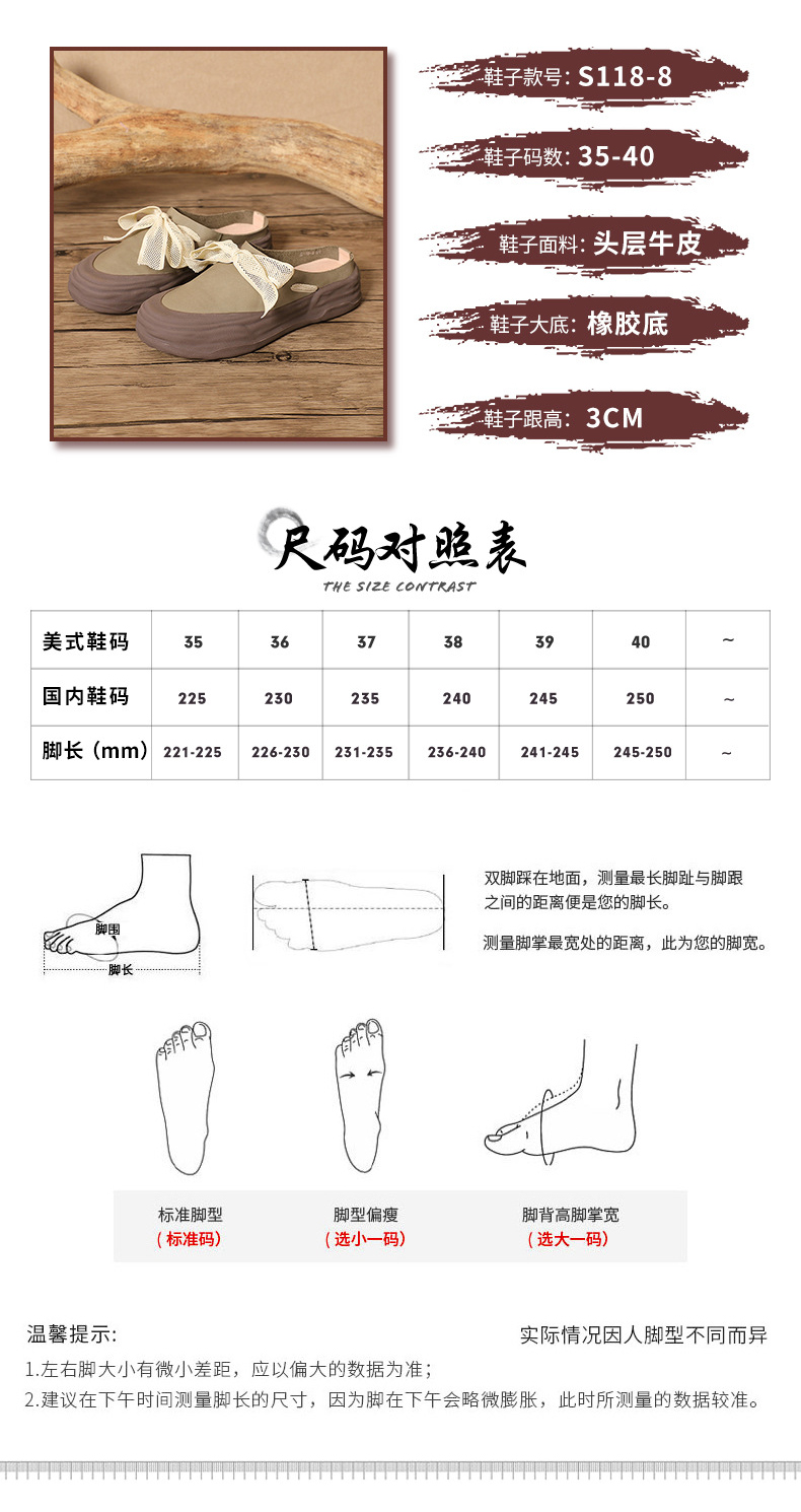 真皮休闲包头拖鞋,春夏季新款文艺森女系厚底女式板鞋后空拖鞋BC-118-8