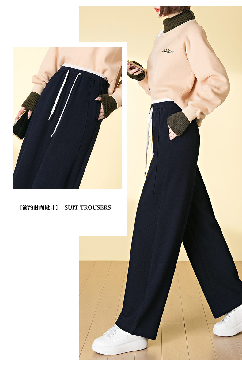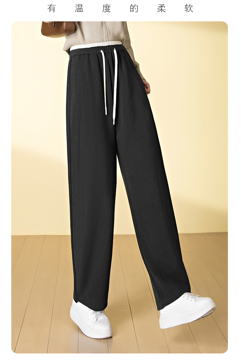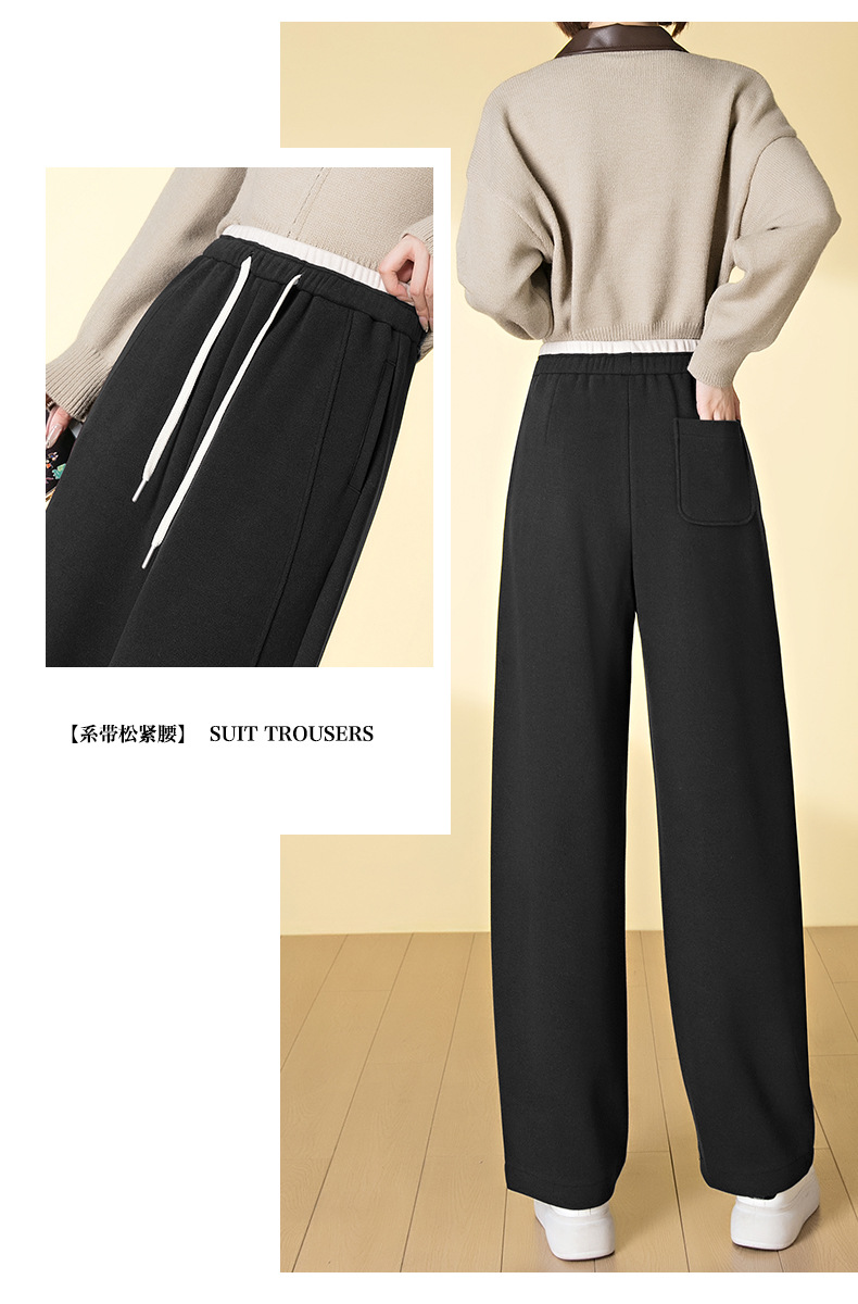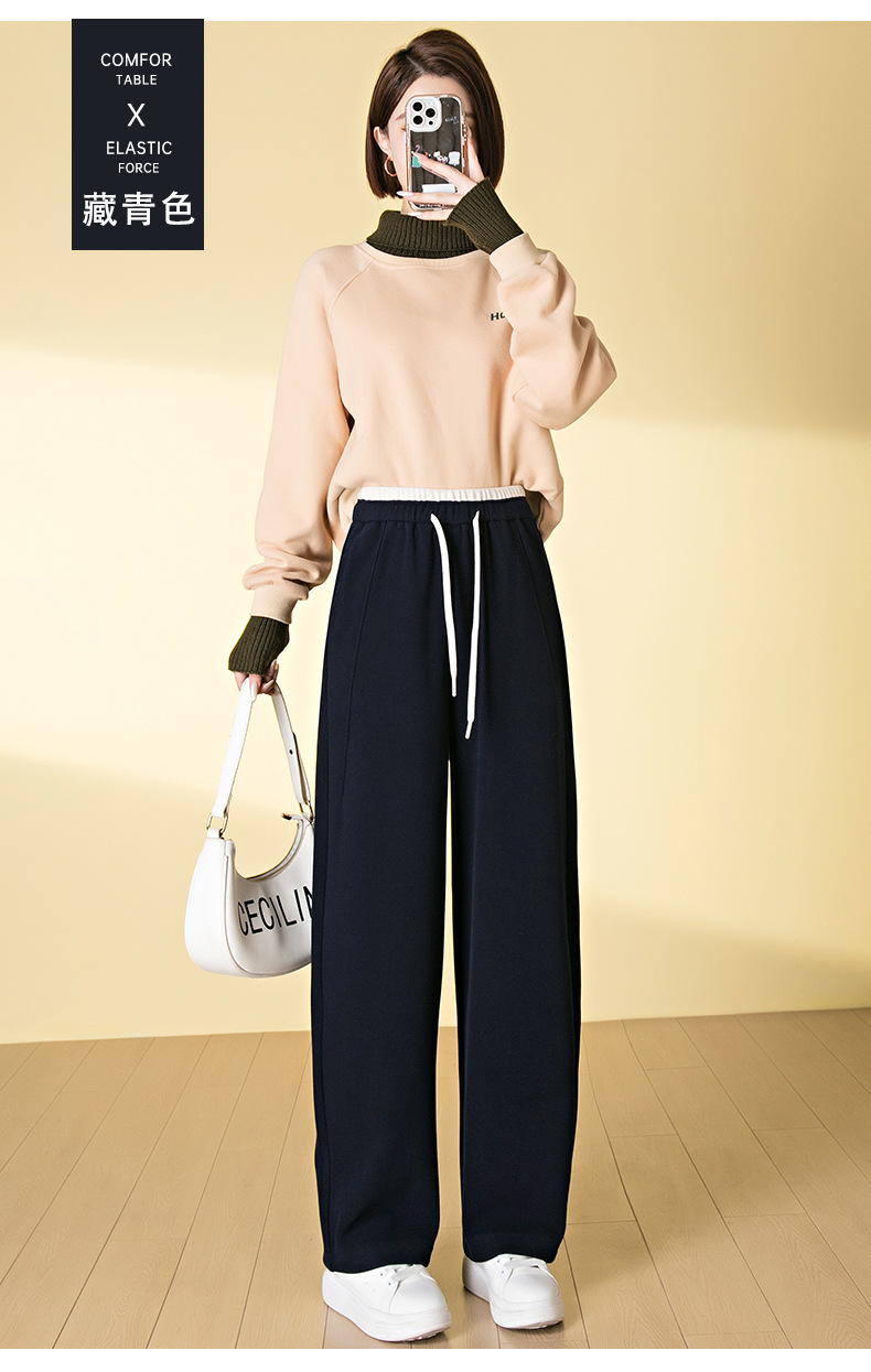 HSS 3068弯刀裤系带松紧腰休闲拼色软糯毛呢阔腿裤
