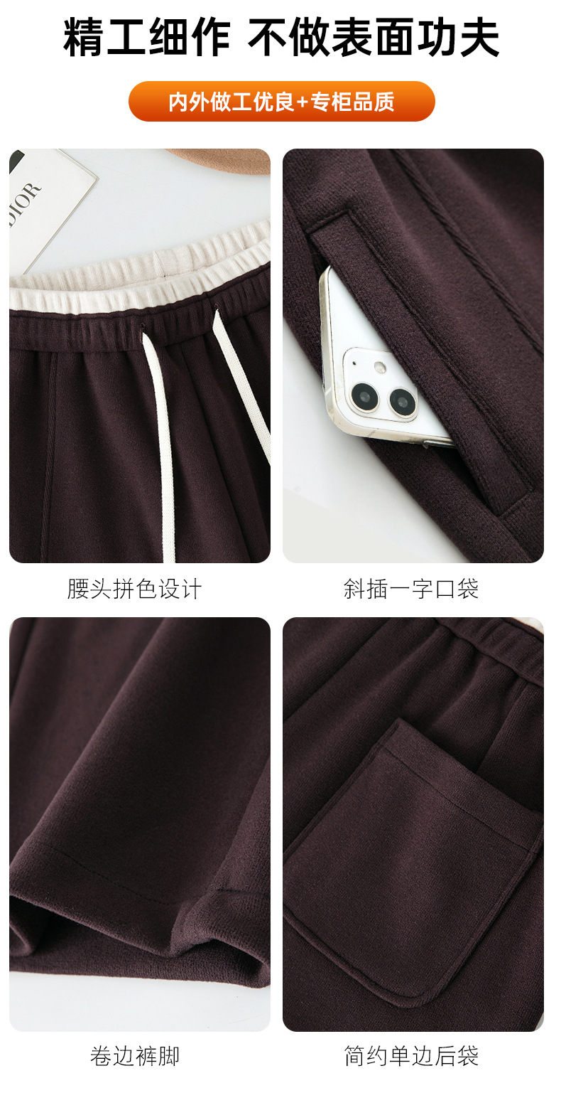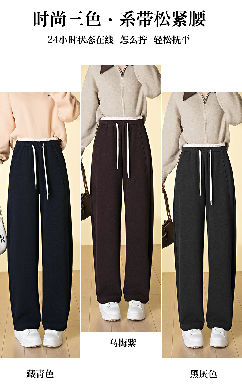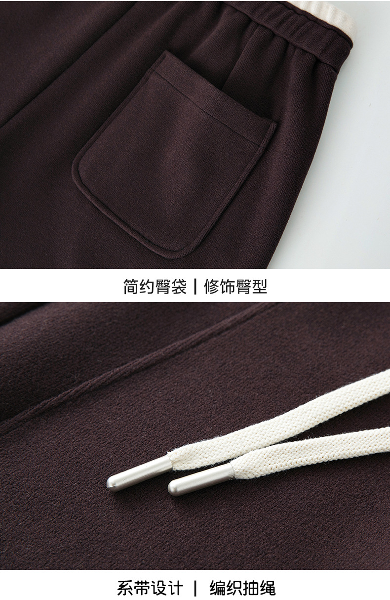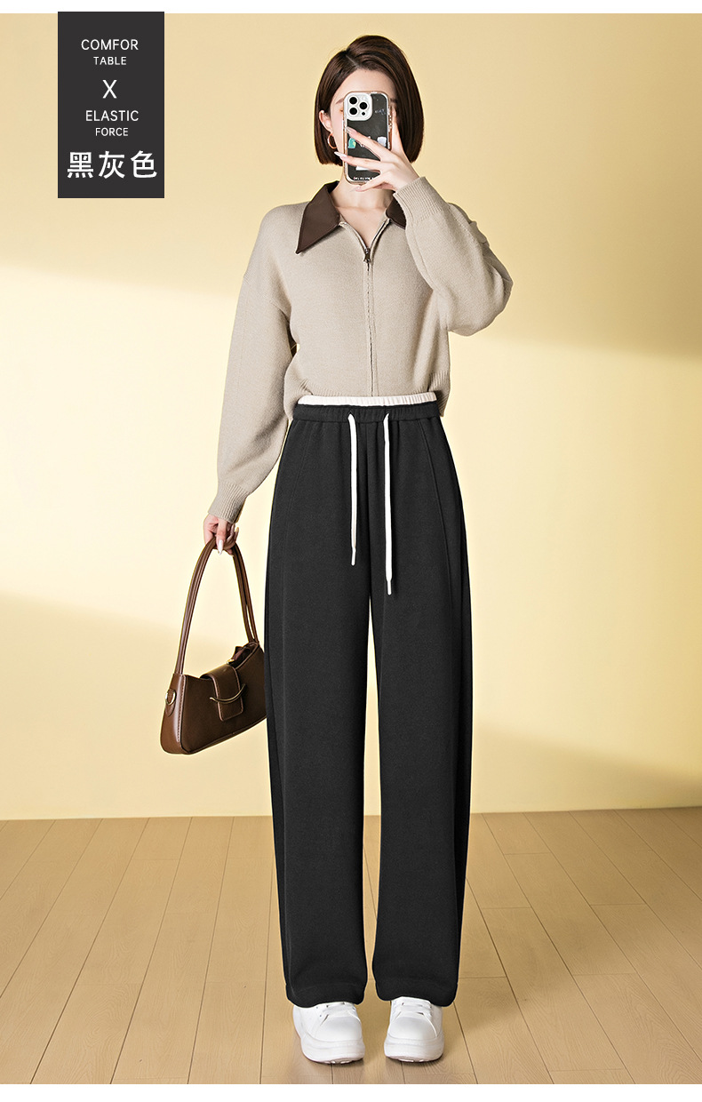 HSS 3068弯刀裤系带松紧腰休闲拼色软糯毛呢阔腿裤