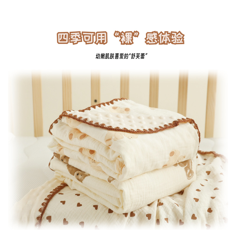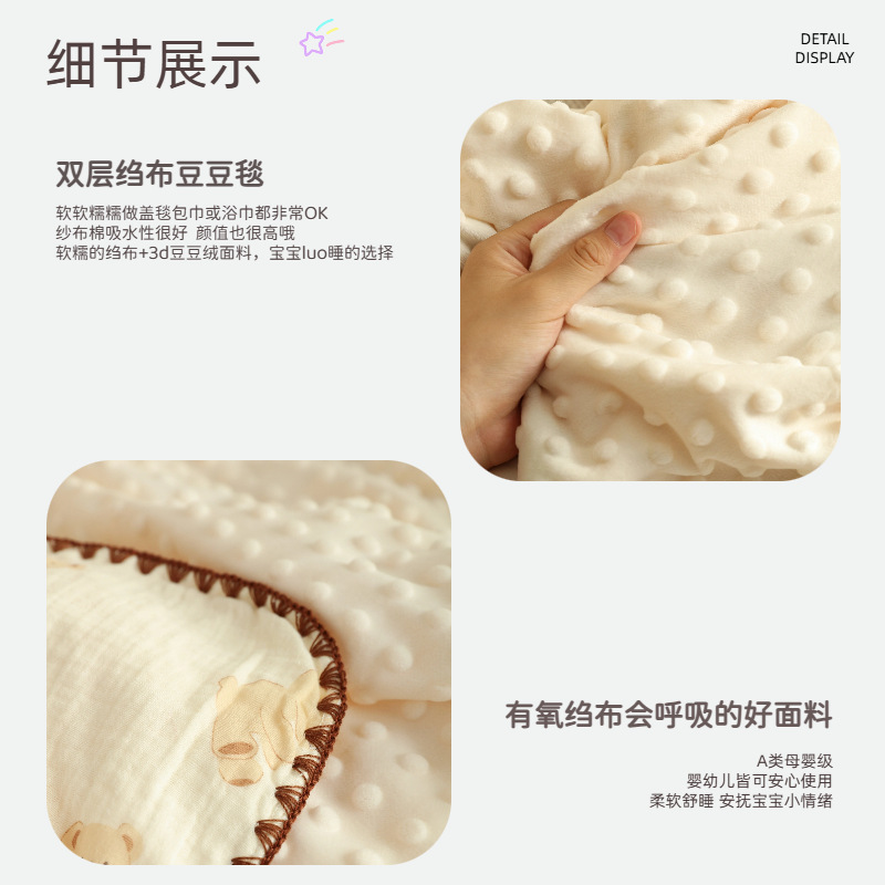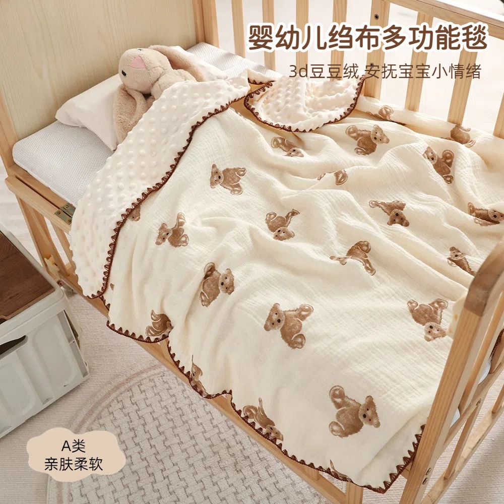 【一被多用!A类婴幼儿绉布多功能毯】豆豆毯婴儿四季宝宝盖毯纯棉纱布被子空调被春秋薄被幼儿园盖毯被。rb