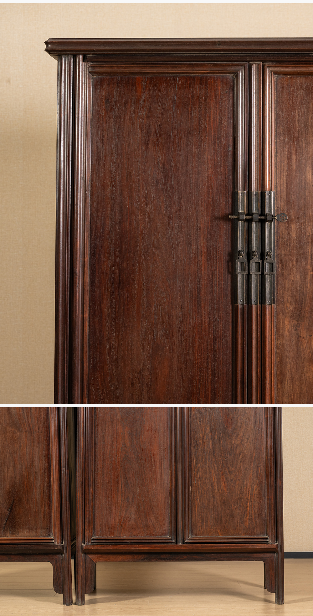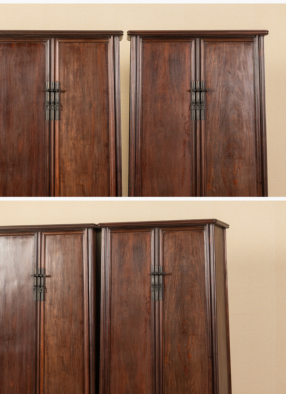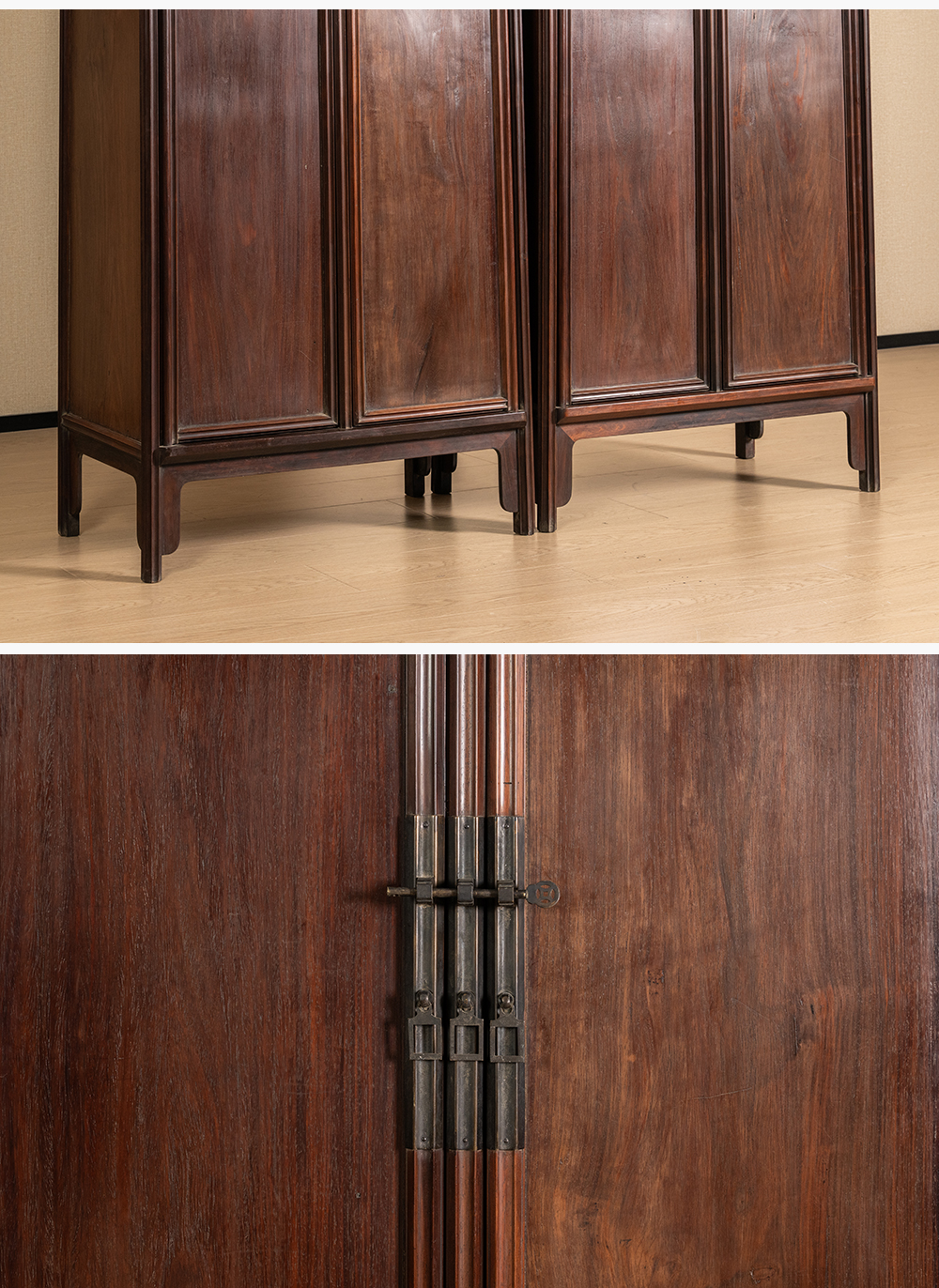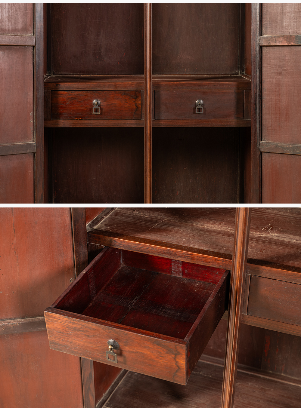 二十世纪 红木螭龙纹带围栏三层架格(一对)