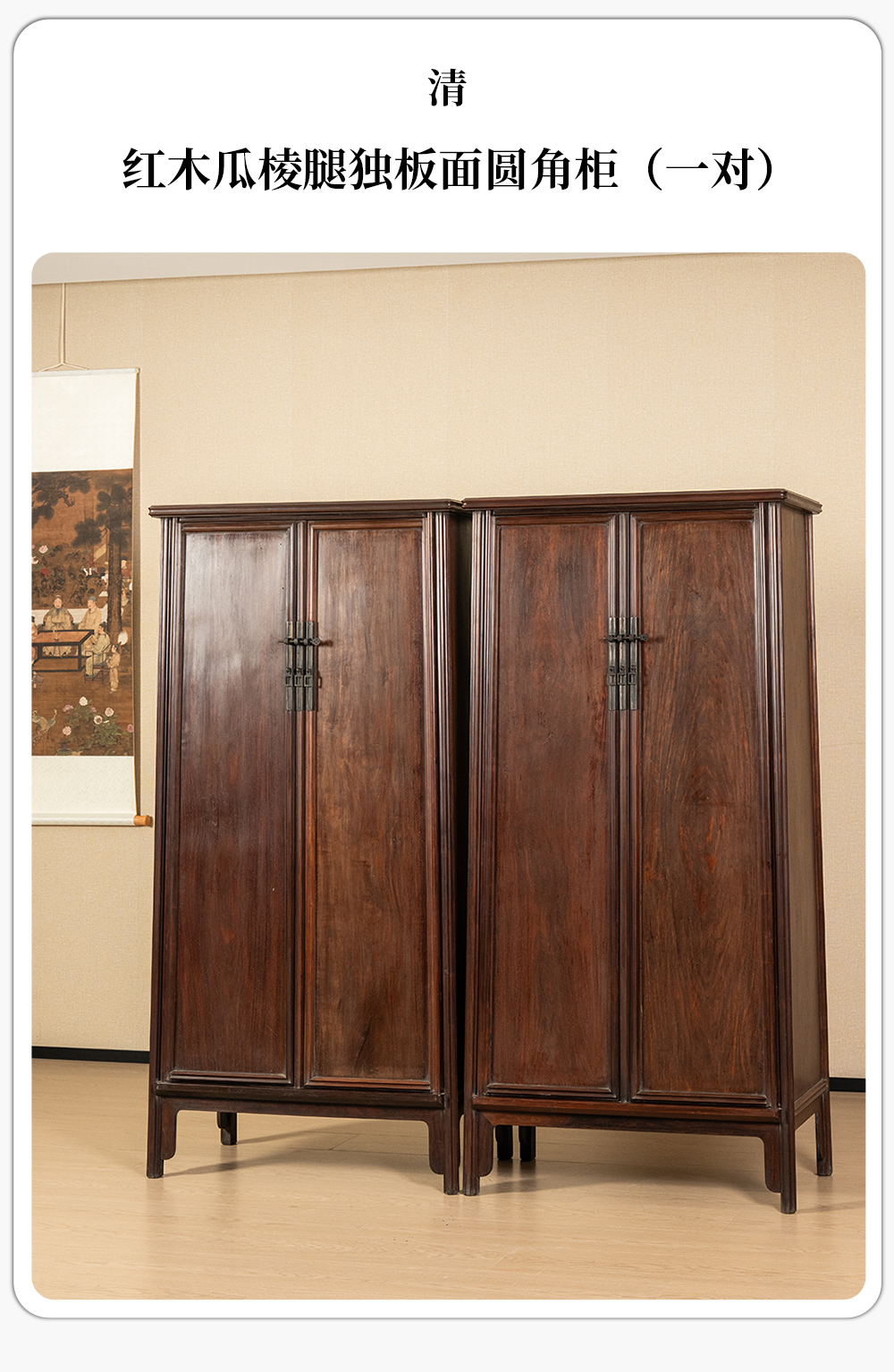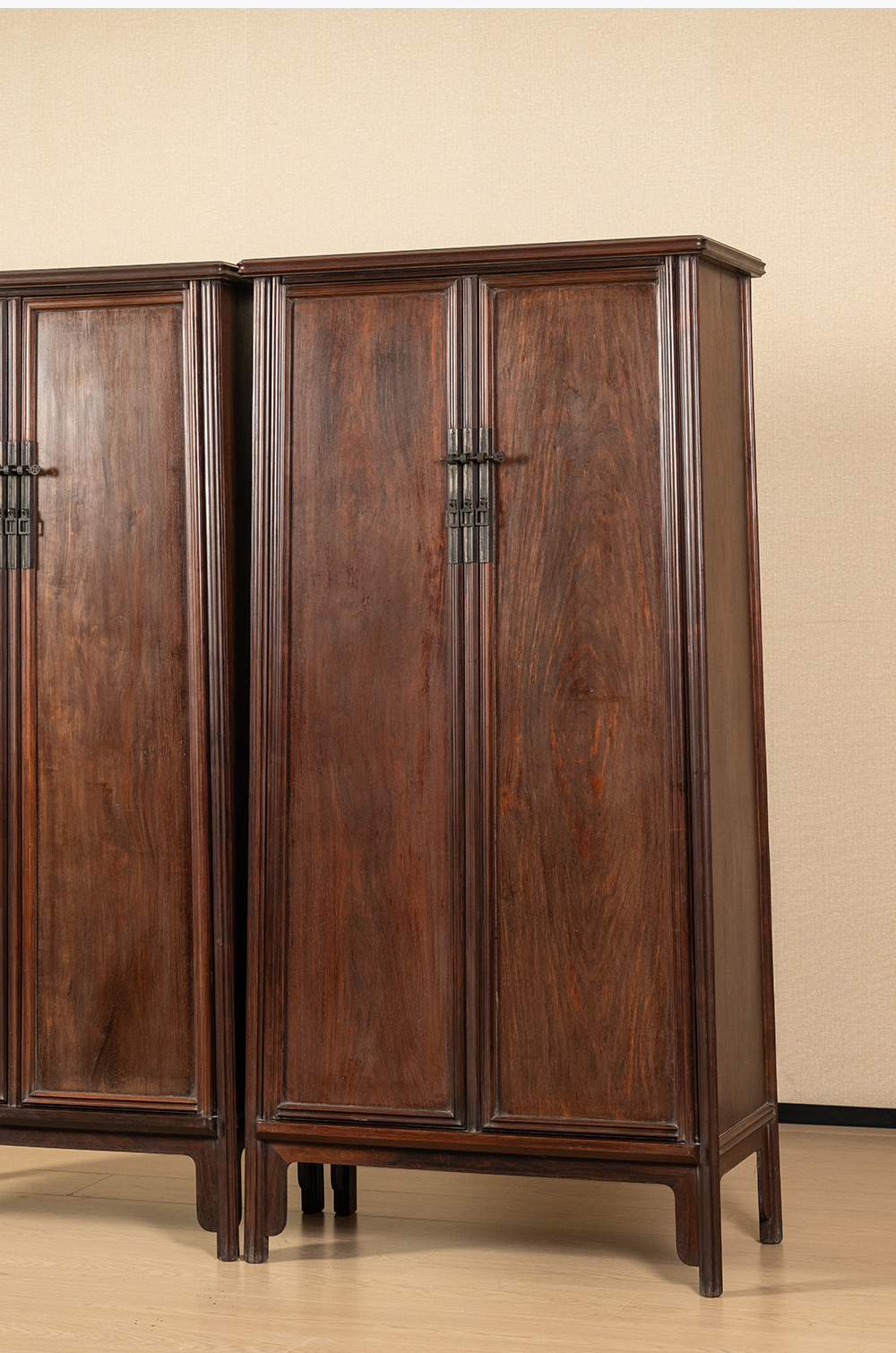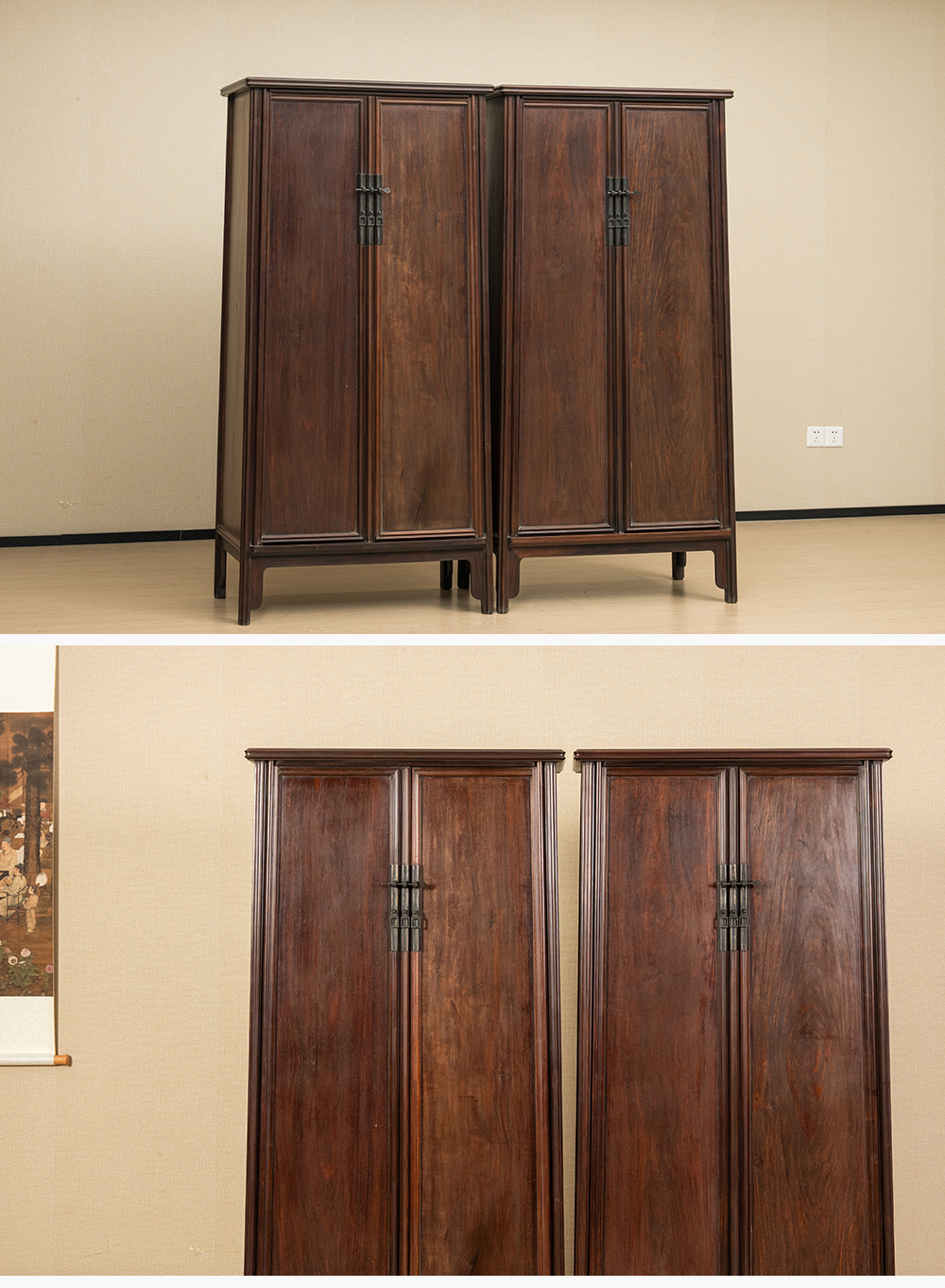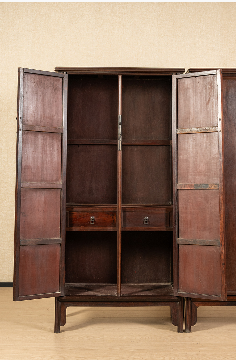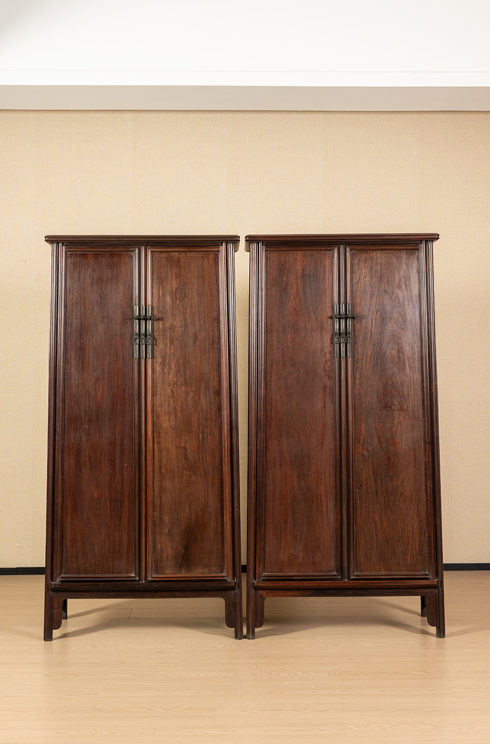 二十世纪 红木螭龙纹带围栏三层架格(一对)