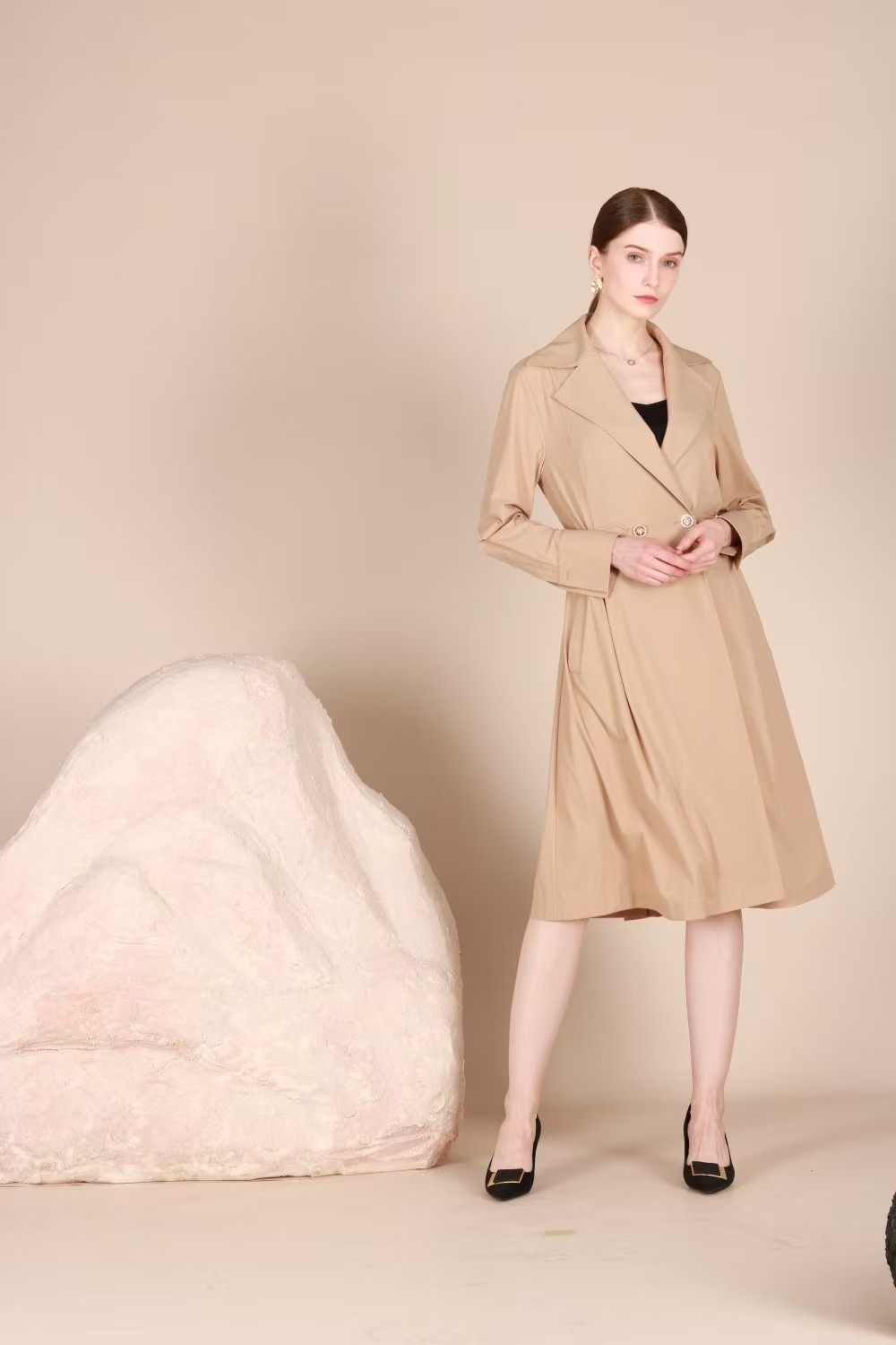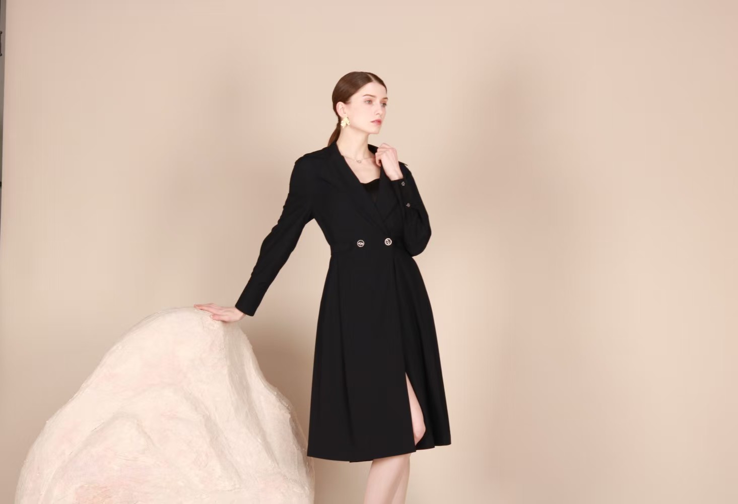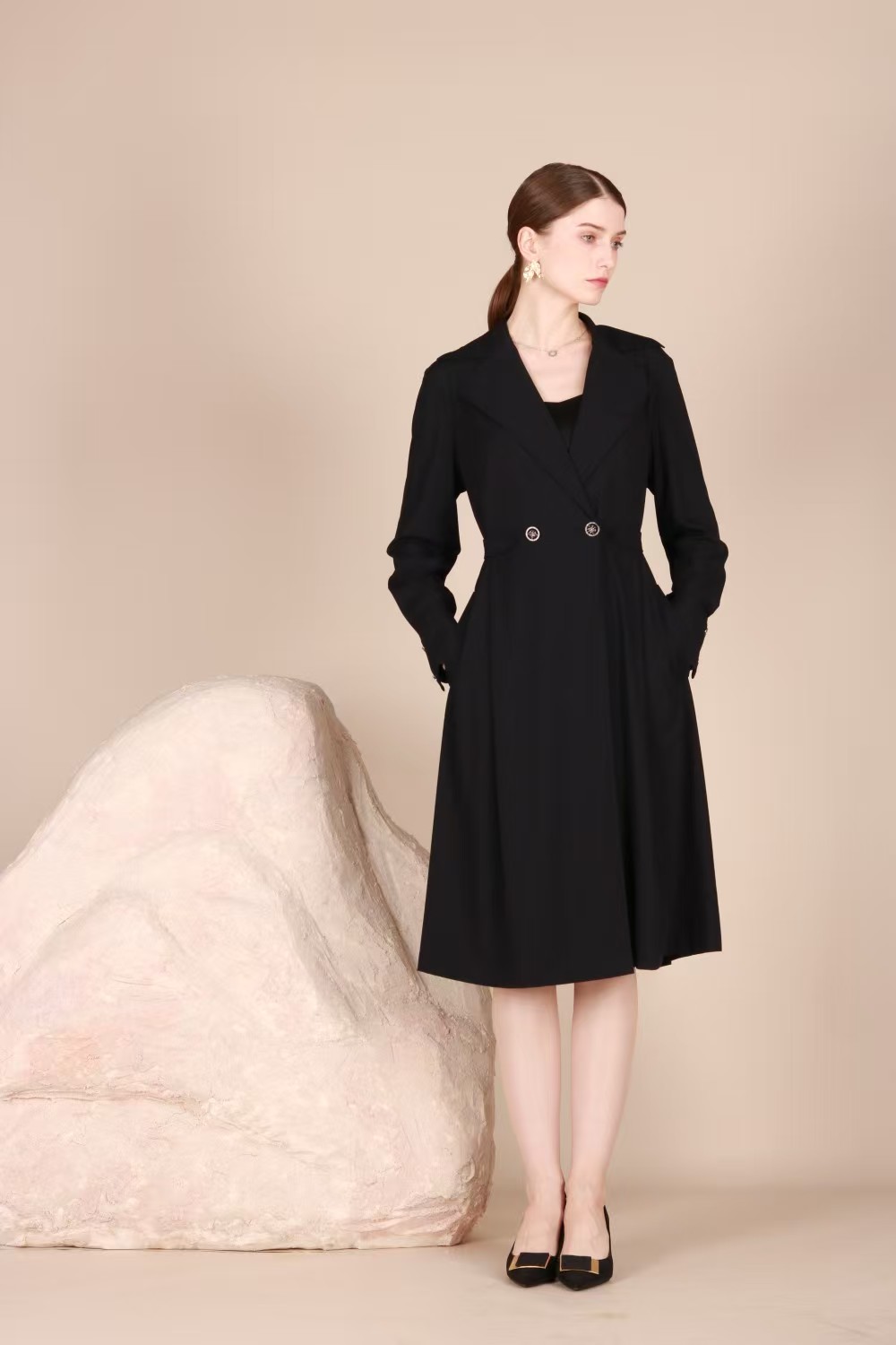 顺丰包邮41757洛诗琳法式超舒适四面弹风衣连衣裙3S80250