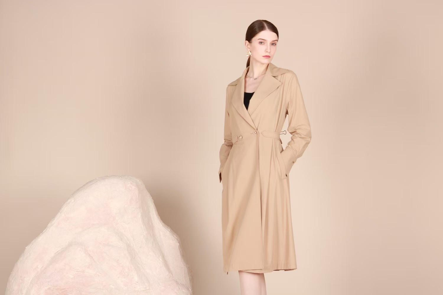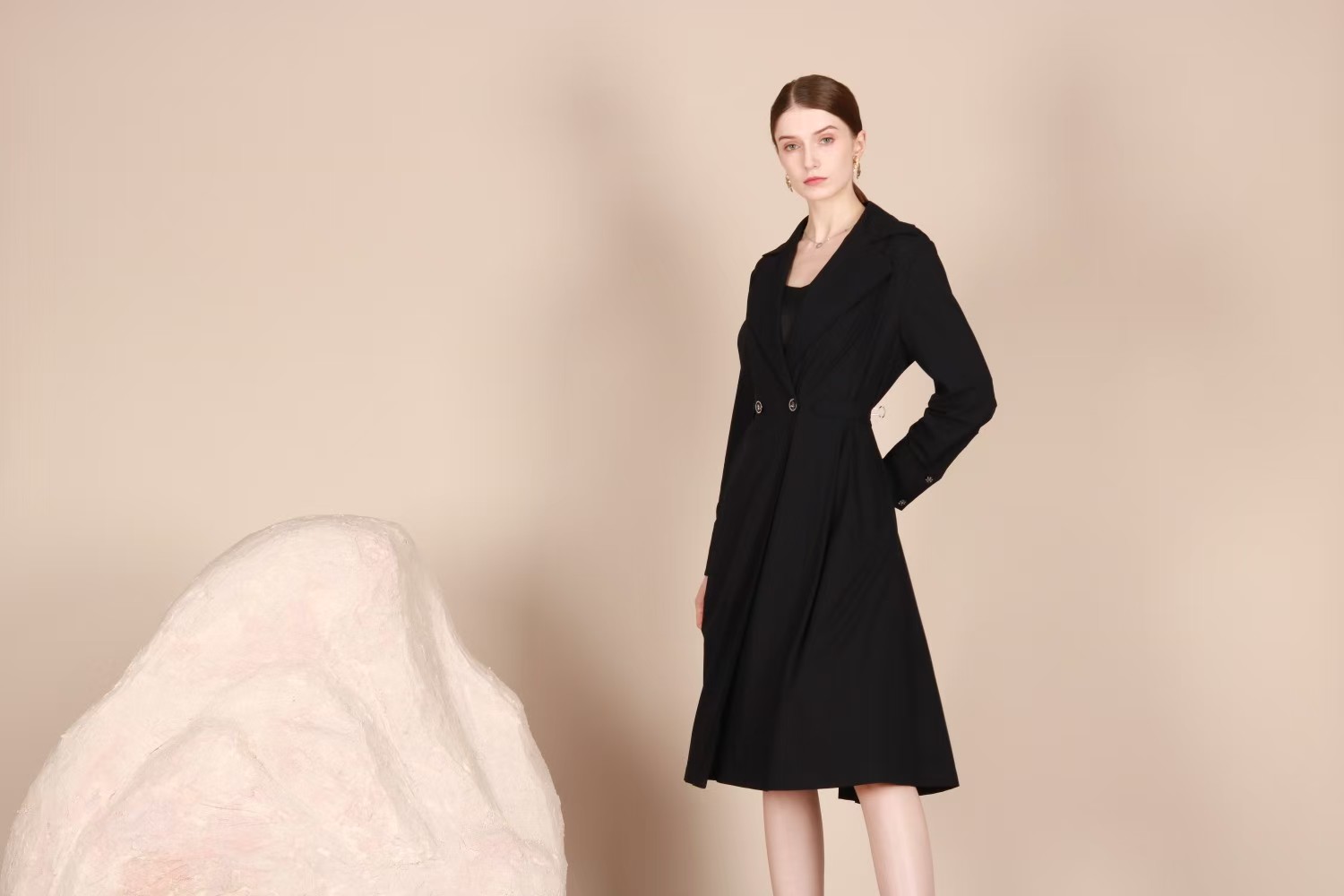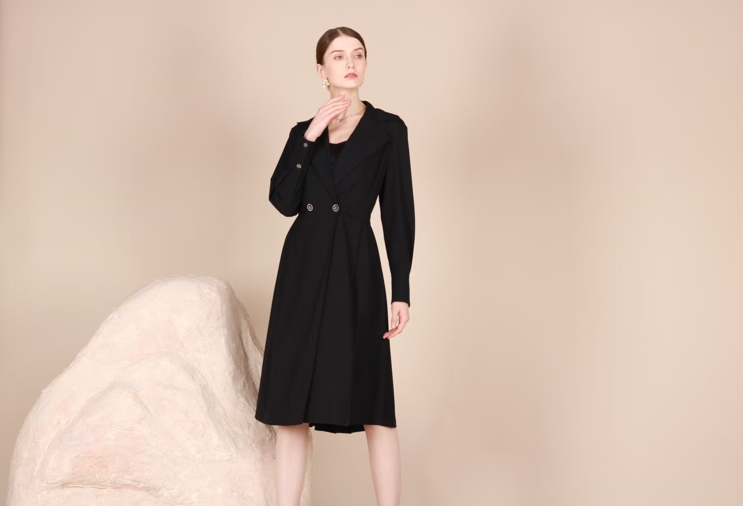 顺丰包邮41757洛诗琳法式超舒适四面弹风衣连衣裙3S80250