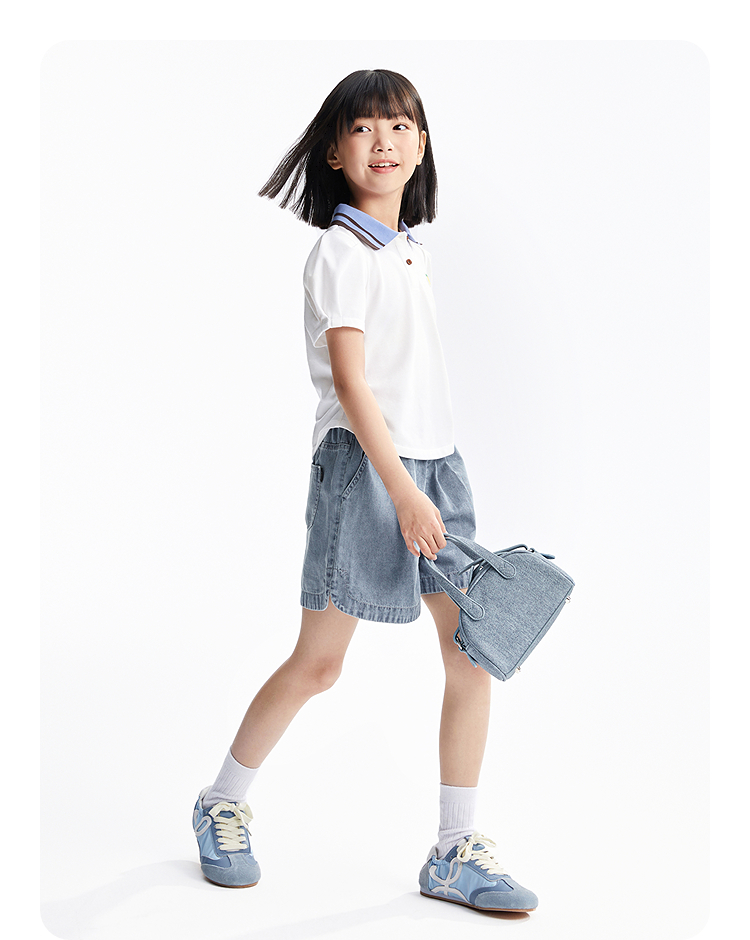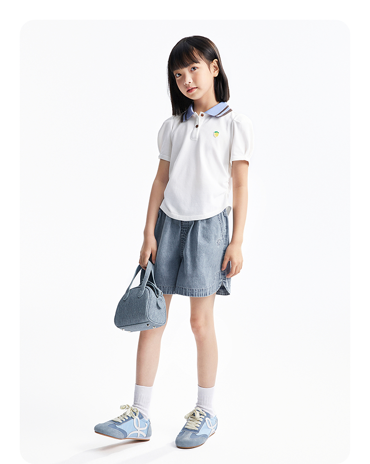 女童翻领短袖针织衫夏季新款安奈儿童装EG521104